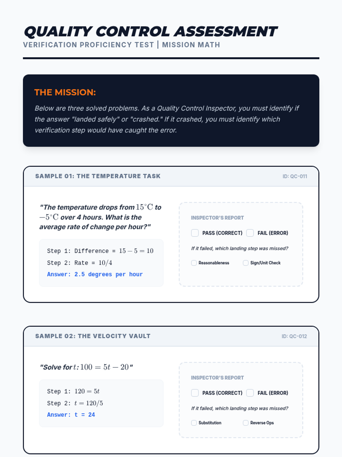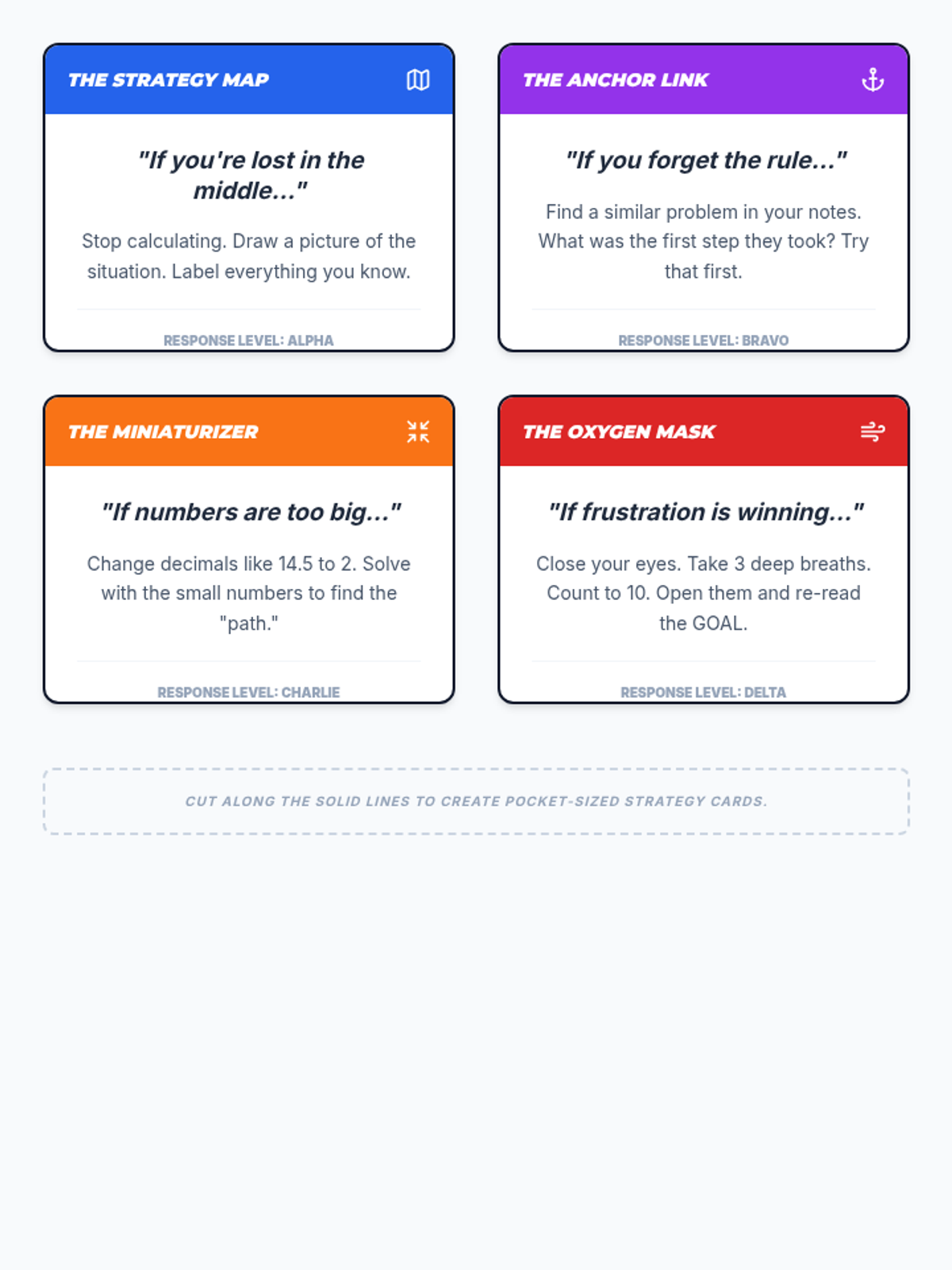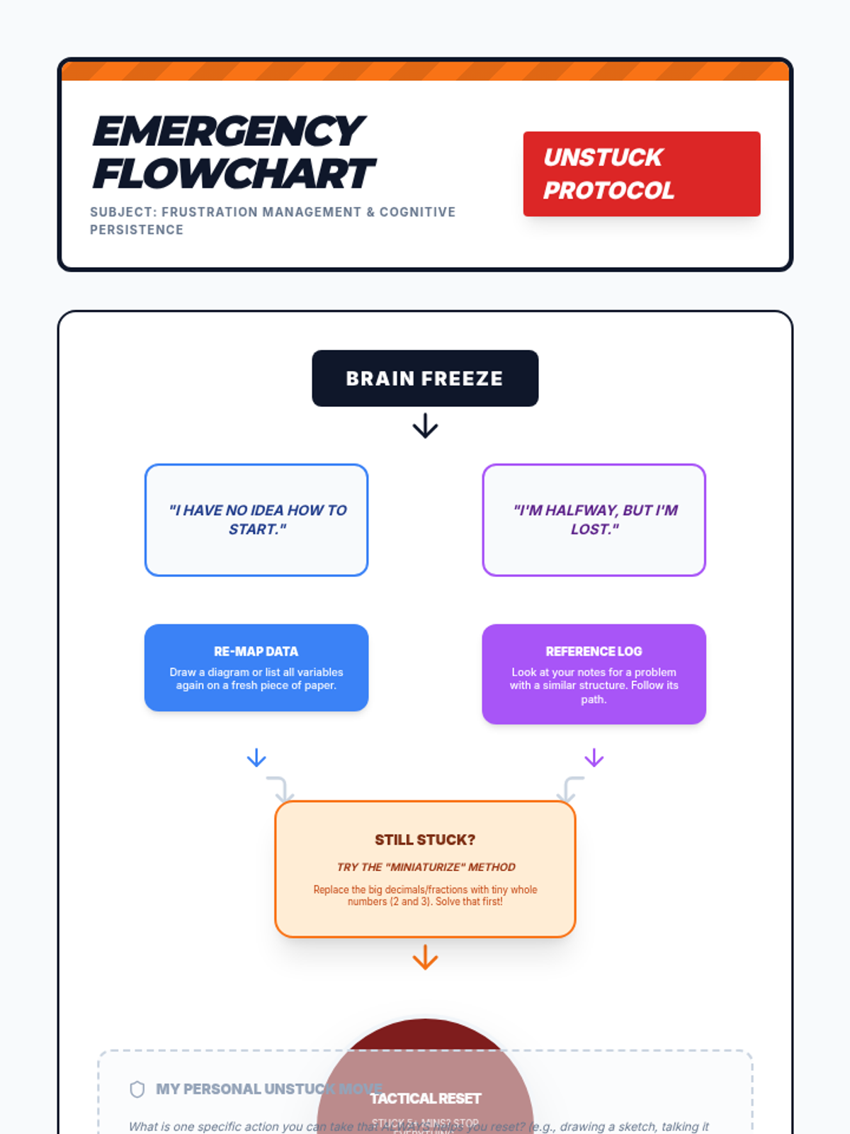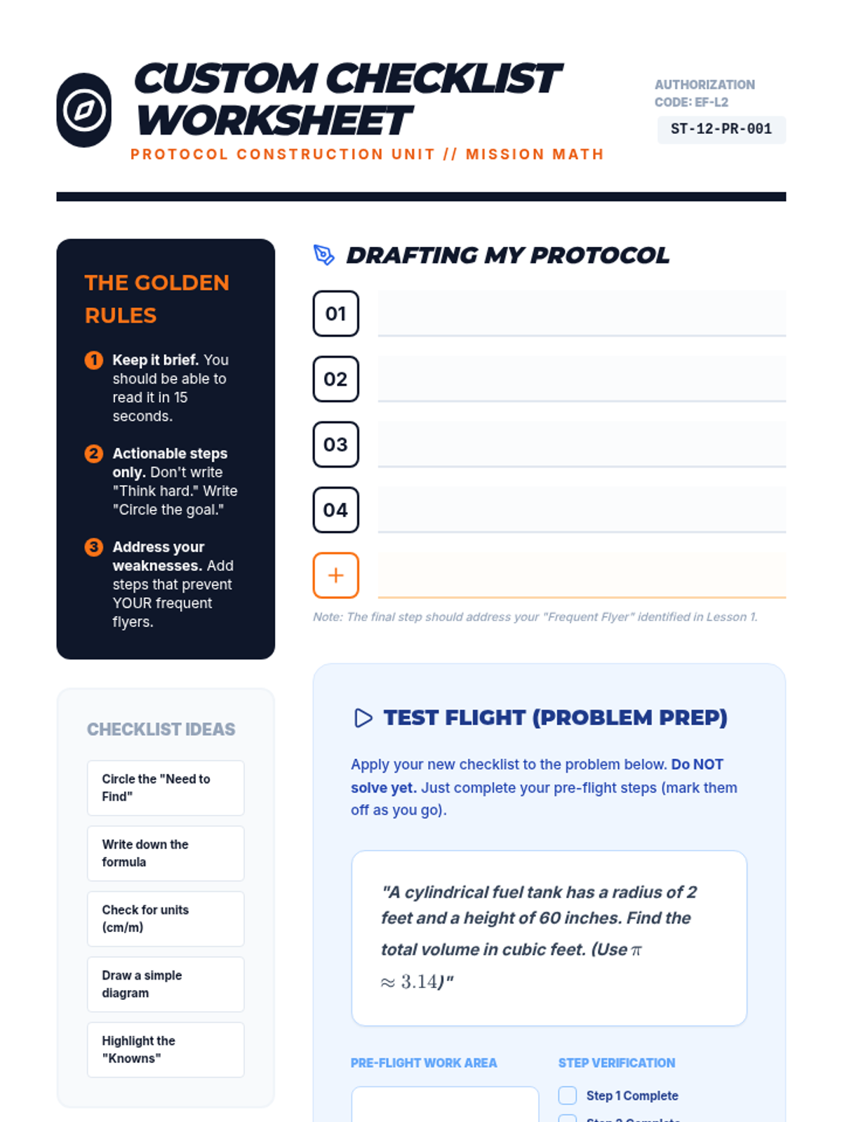 A specialized 12th-grade sequence focused on building executive function skills through math problem-solving. Students move from identifying personal error patterns to creating and internalizing 'Pre-Flight' and 'Landing' checklists to improve accuracy and independence in complex math tasks.