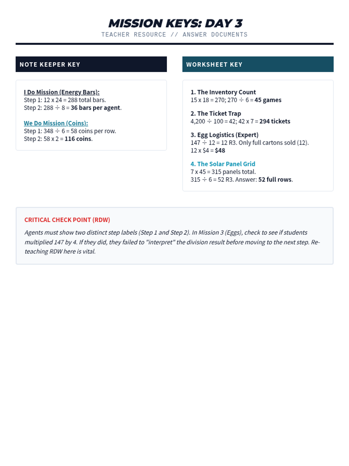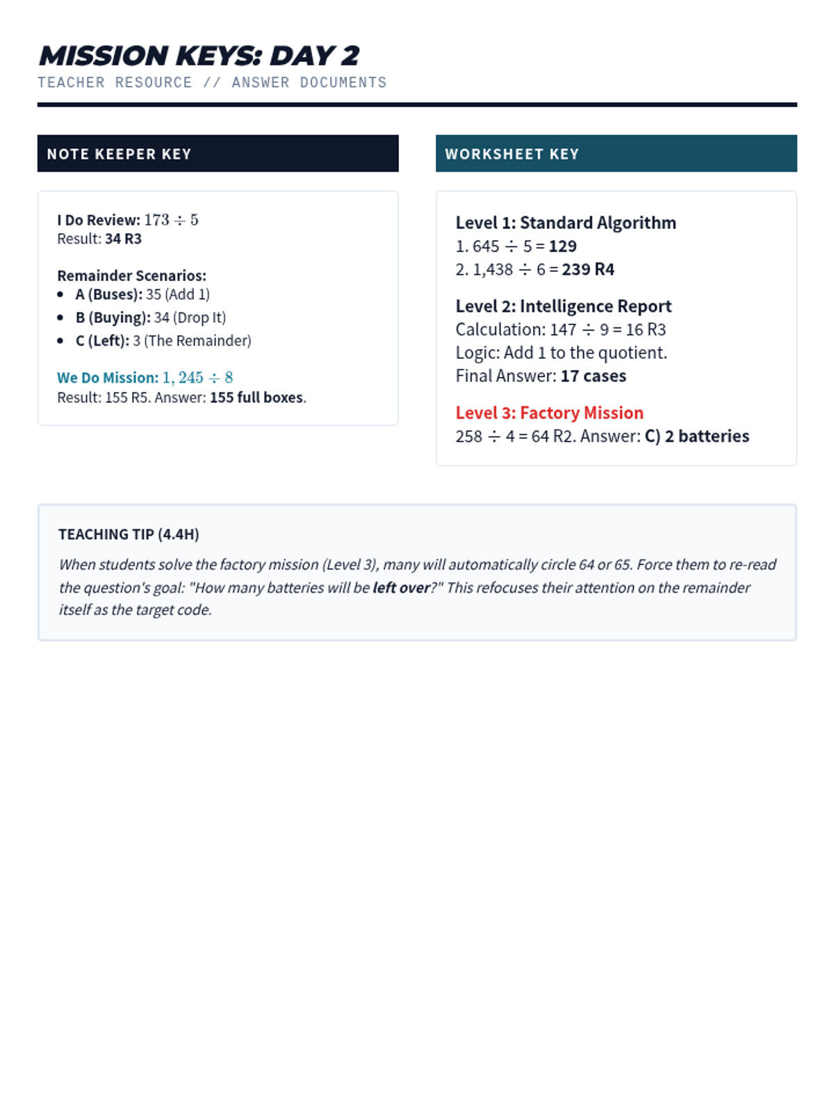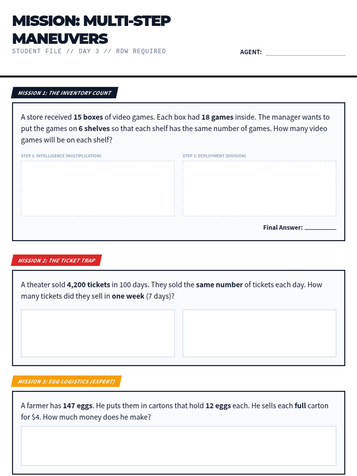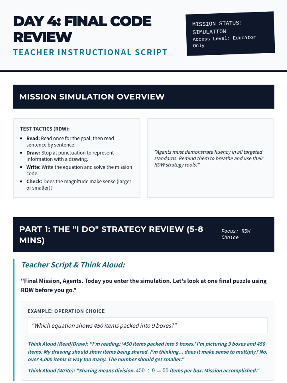 A 4-day intensive STAAR math review focused on multiplication and division standards for 4th grade. The unit uses a 'Math Mission' theme to engage students while covering complex multi-step problems and standard algorithms.