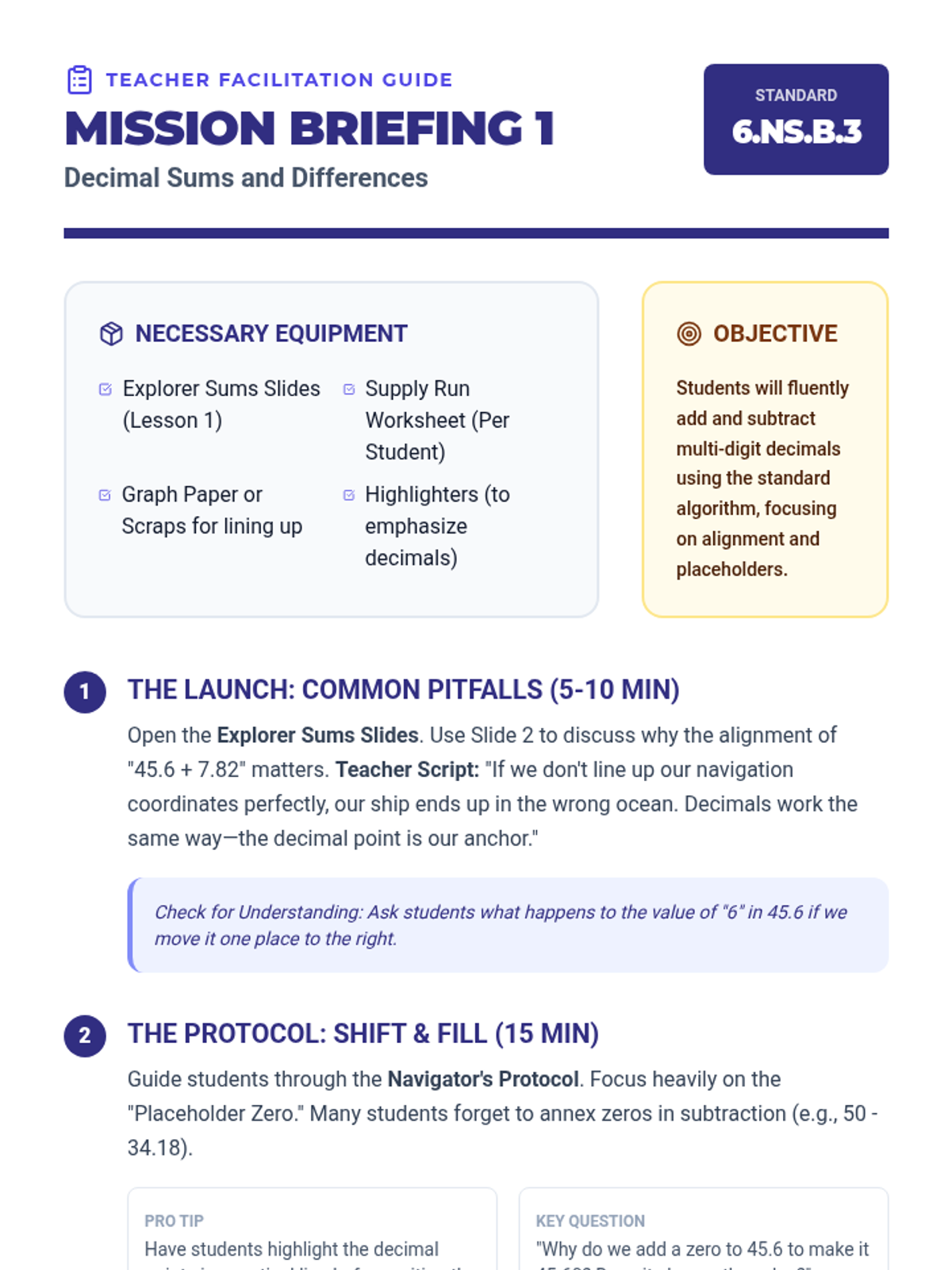 A 6-lesson intervention sequence for 6th-grade students focusing on multi-digit decimal operations and rational number concepts on the number line and coordinate plane. Designed for small-group instruction using High Leverage Concepts.