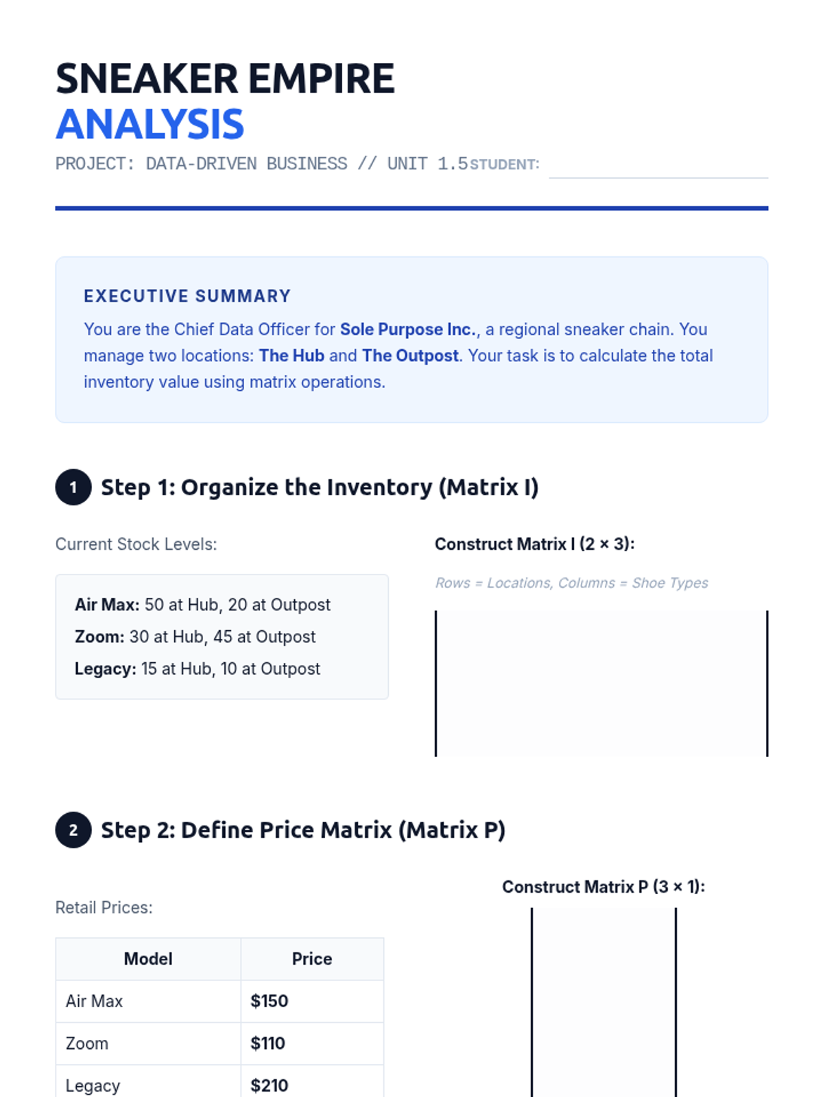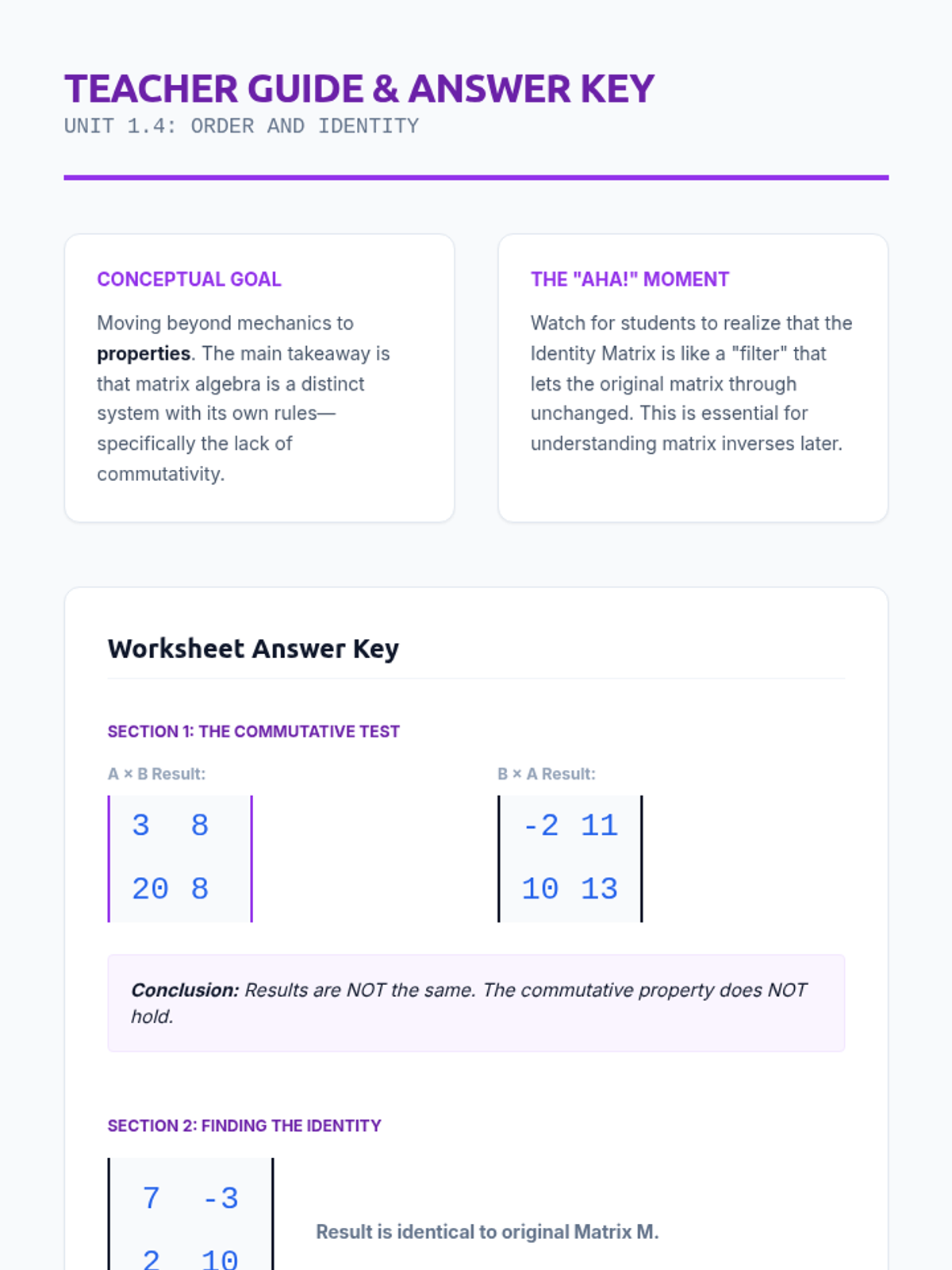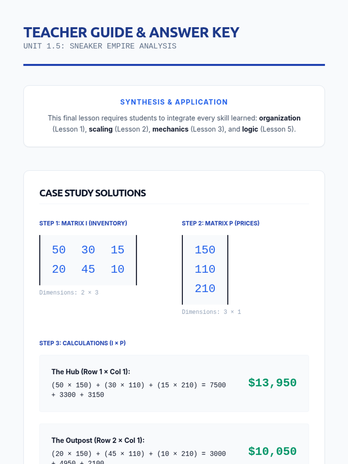 A comprehensive unit for 10th-grade students exploring matrix operations, from basic dimensions and notation to complex multiplication and real-world applications in inventory management.