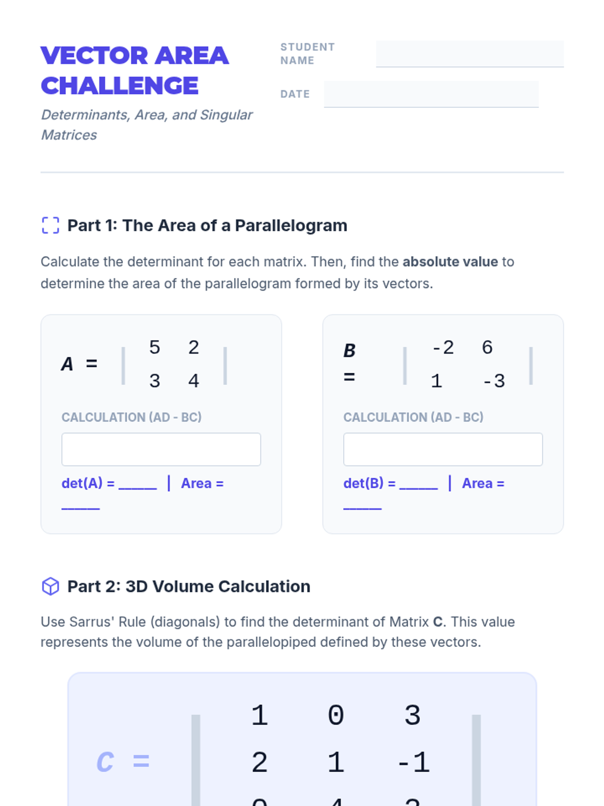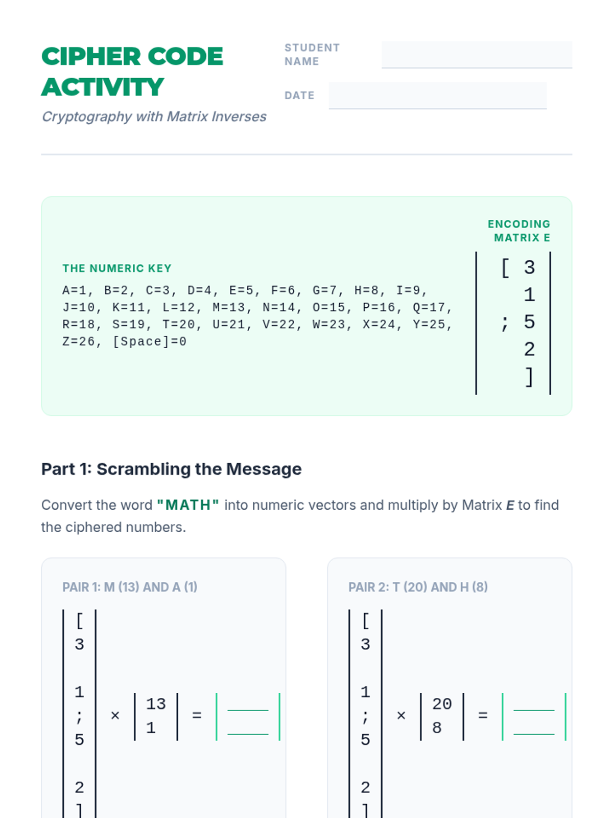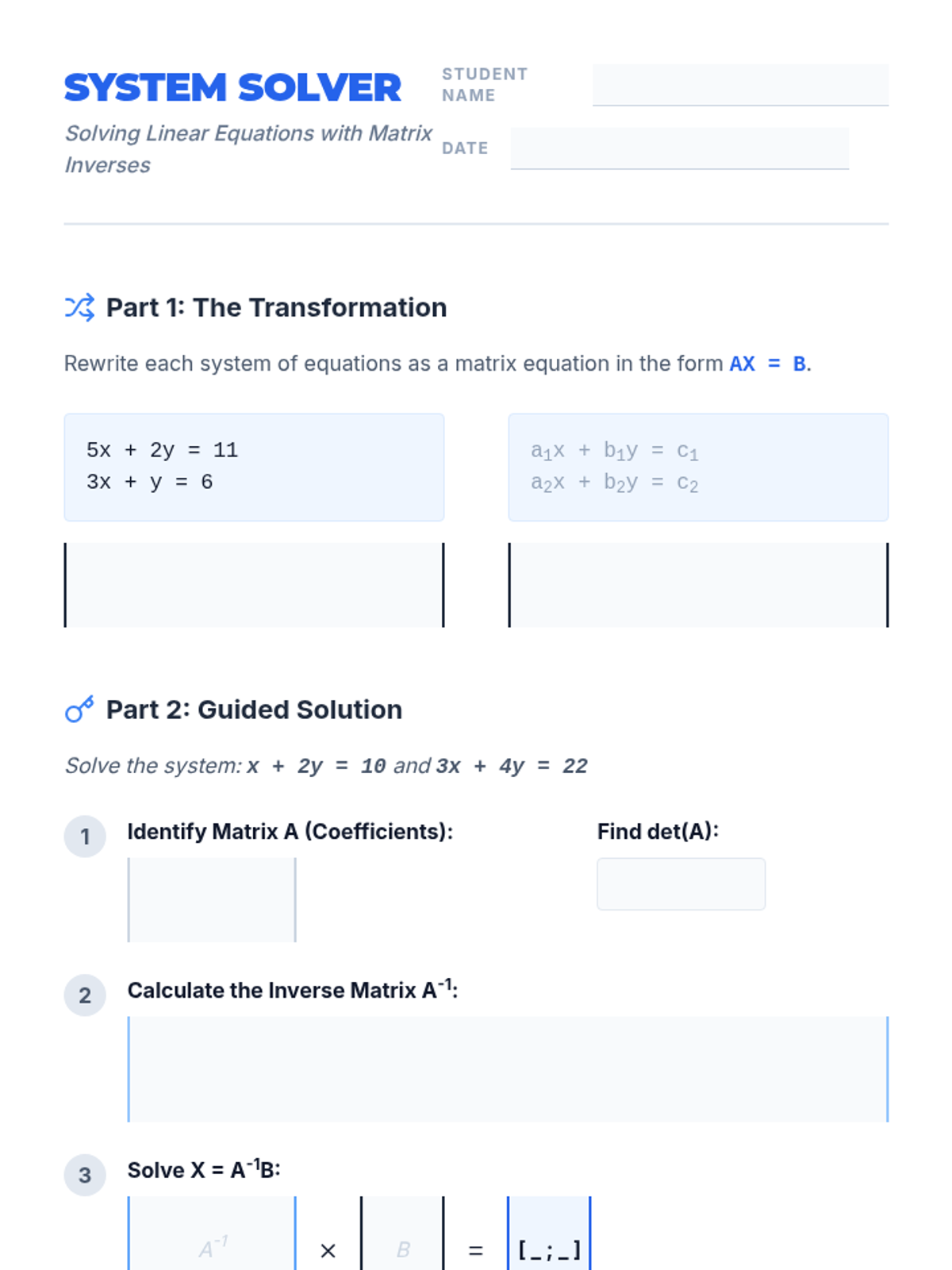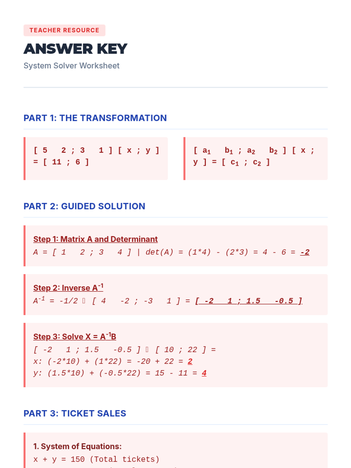 This sequence explores matrix algebra as a tool for data organization and system solving. Students progress from basic arithmetic to complex operations like multiplication, determinants, and inverses, ultimately applying these skills to solve systems of linear equations.