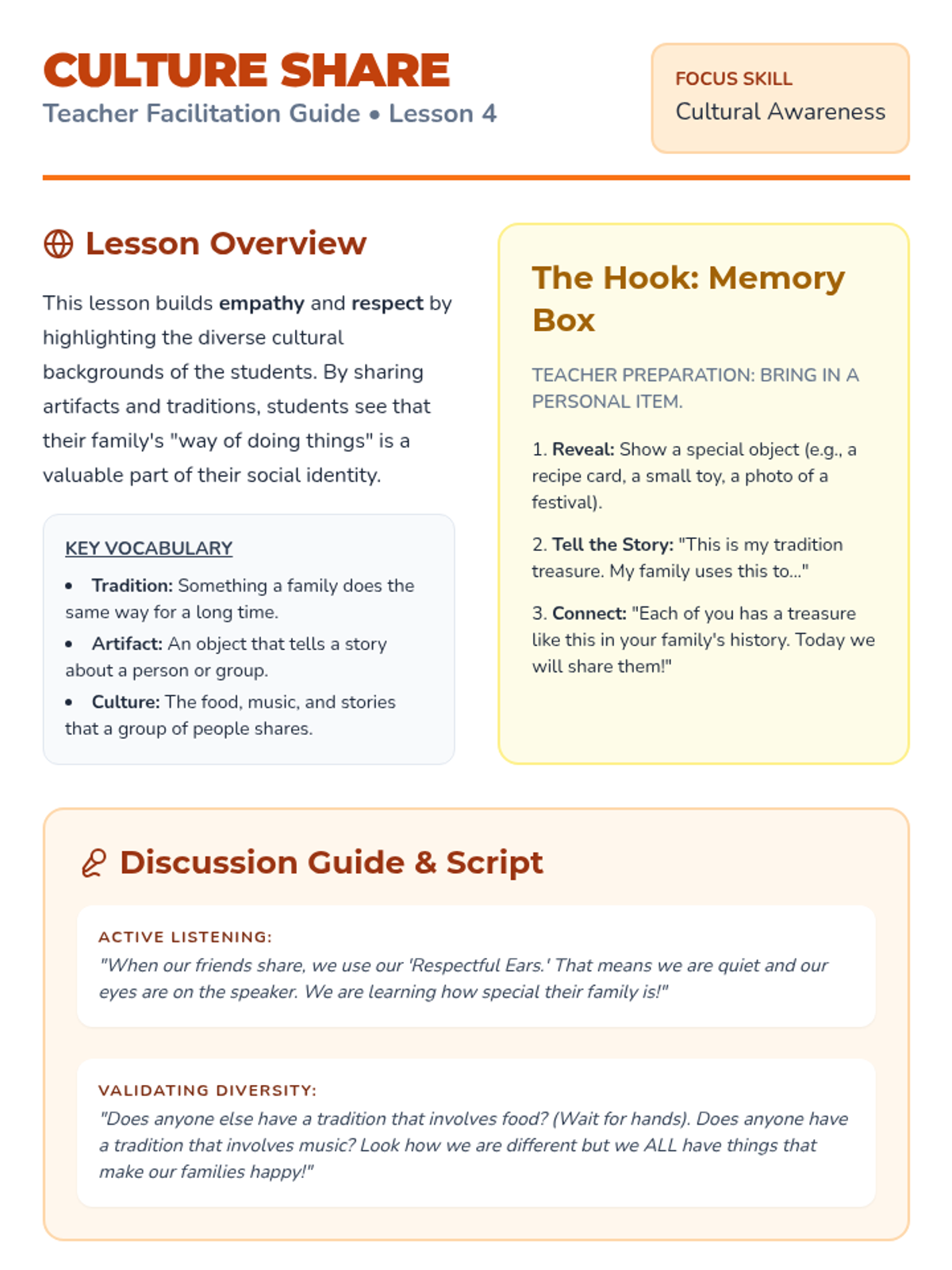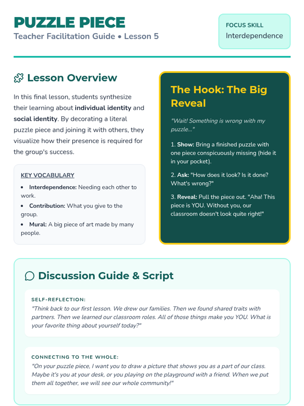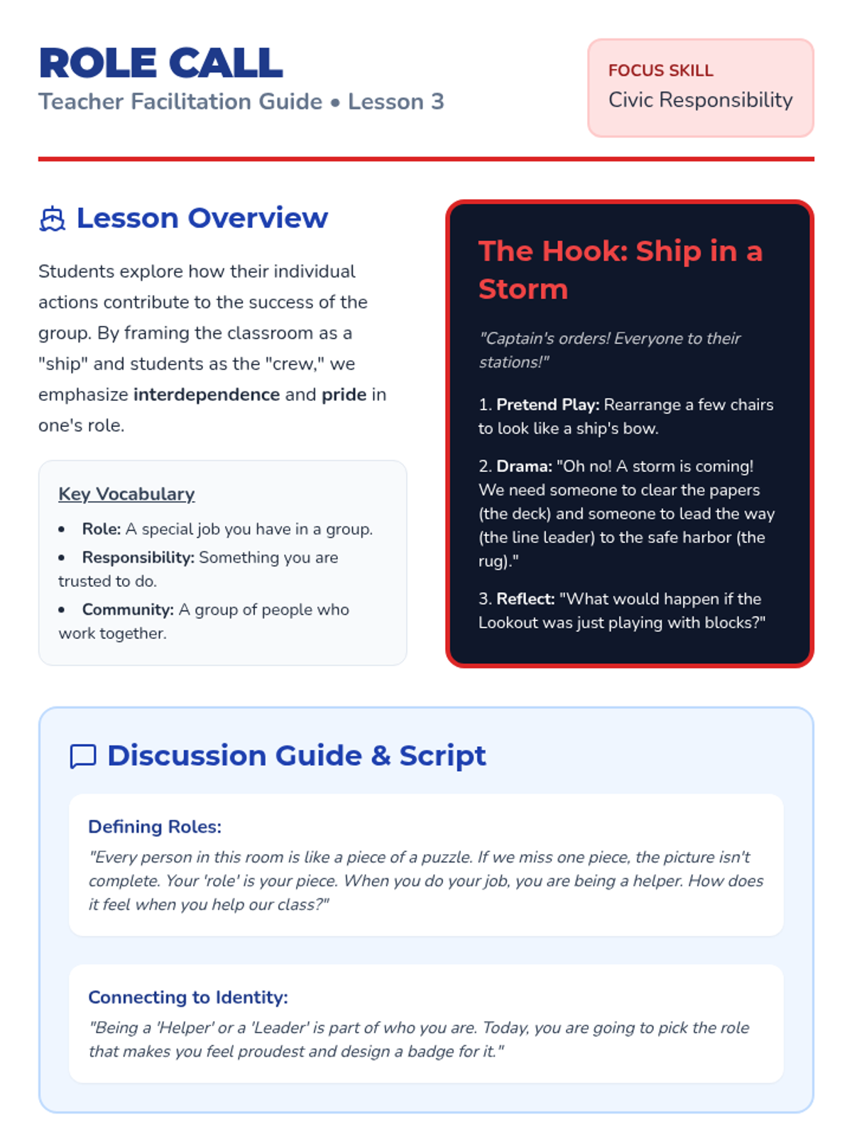 This inquiry-based sequence for Kindergarten students explores the concept of self-identity within the context of larger social groups like families, friendships, and the classroom. Students learn to appreciate their unique traits while identifying the commonalities that bind them to their community.