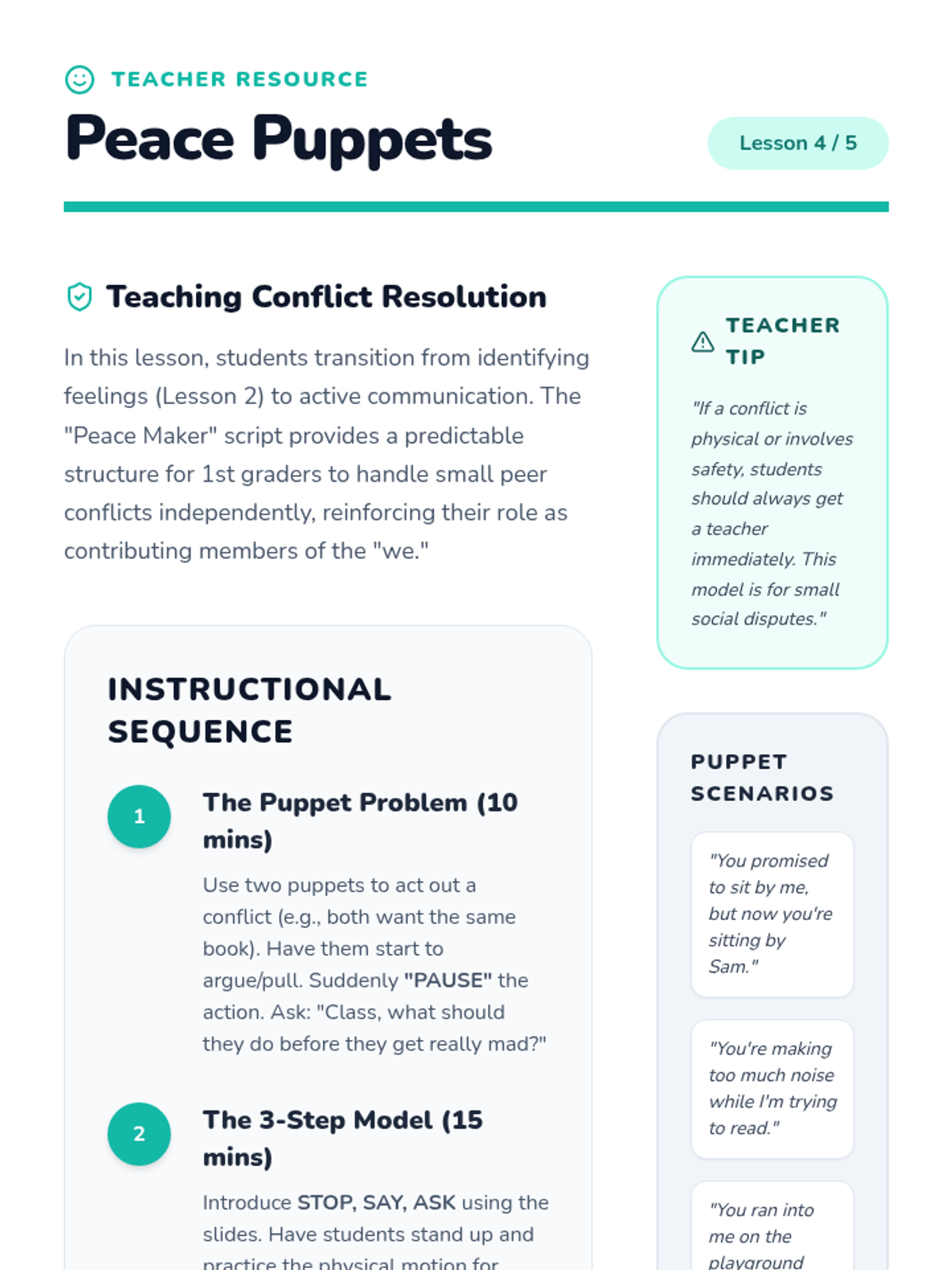 A series of supplementary social-emotional learning lessons for grades K-4, based on the Open Circle Curriculum. These lessons focus on community building, self-awareness, and interpersonal skills.