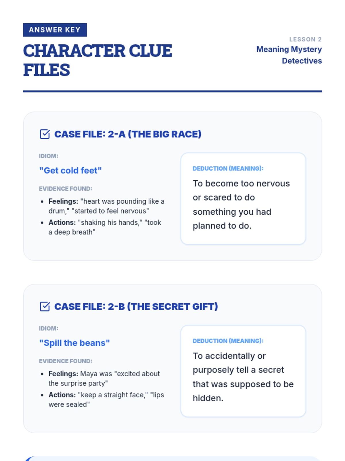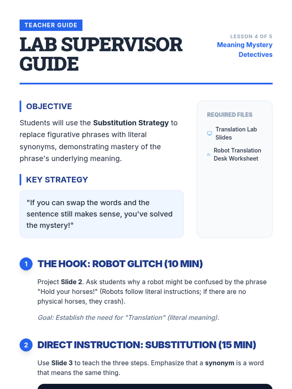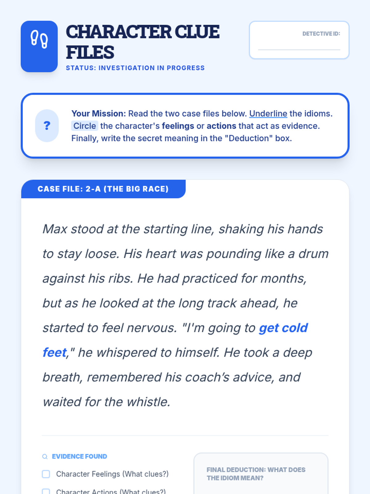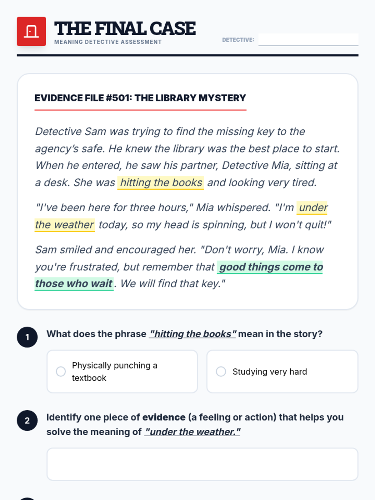 A 3rd-grade ELA sequence where students become 'Meaning Detectives' to decode idioms and adages using context clues. Through detective-themed activities, they move from identifying confusion points to applying wisdom from adages in real-world scenarios.