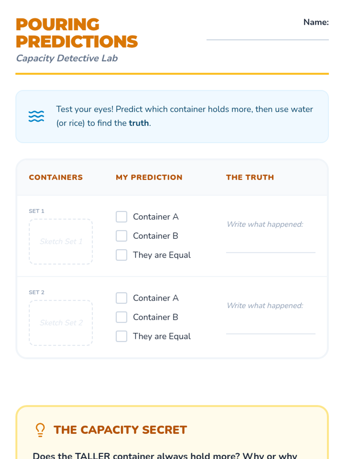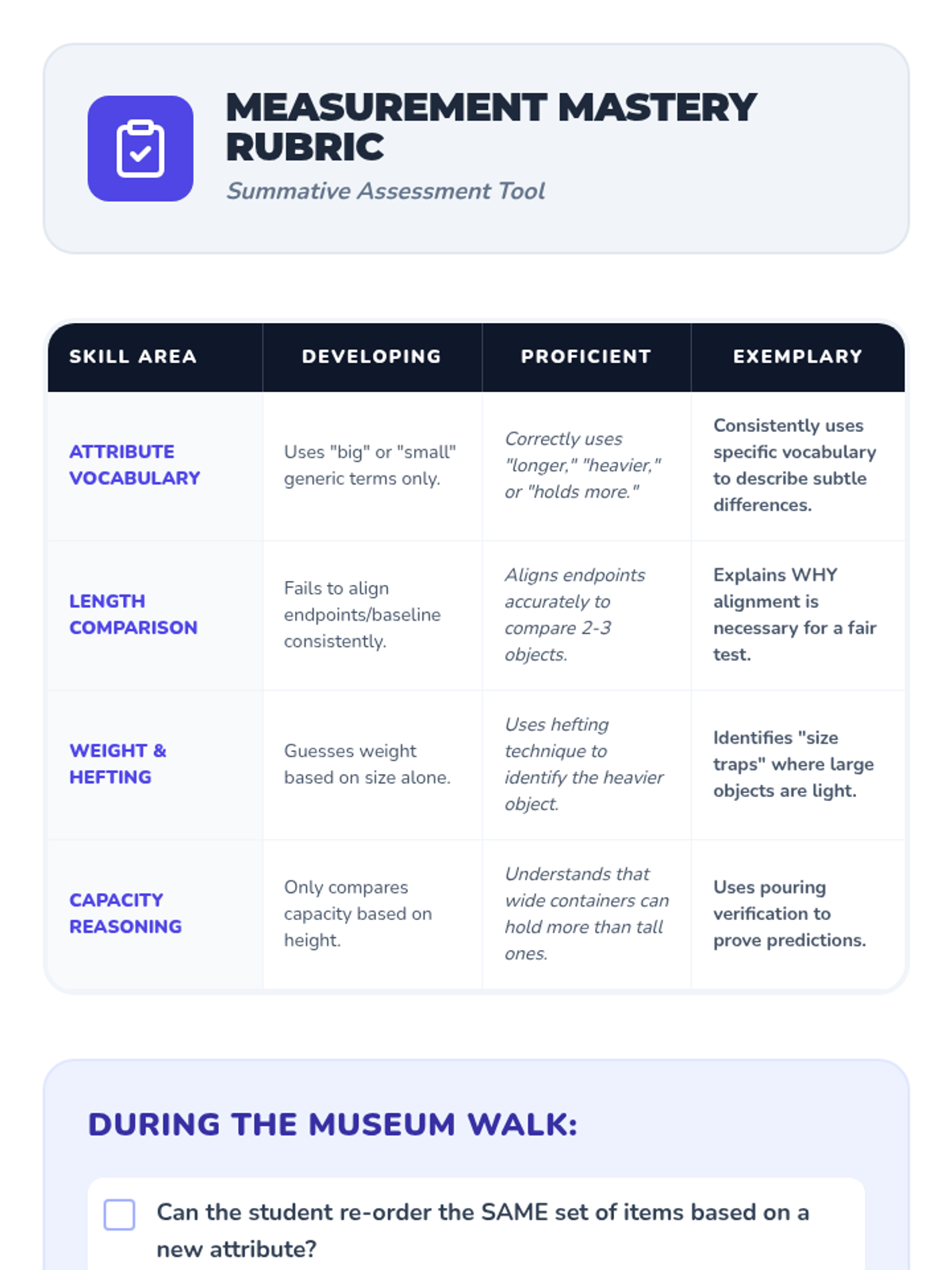 Students embark on a sensory exploration of physical properties, learning to distinguish between and compare length, weight, and capacity without standard units. Through hands-on stations and direct comparison techniques, they build core vocabulary and practice ordering objects based on specific attributes.
