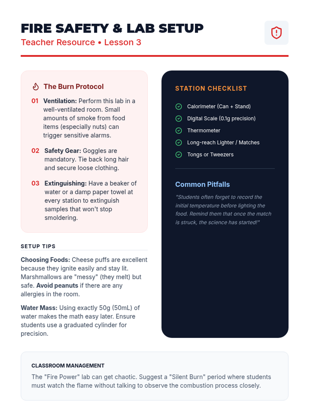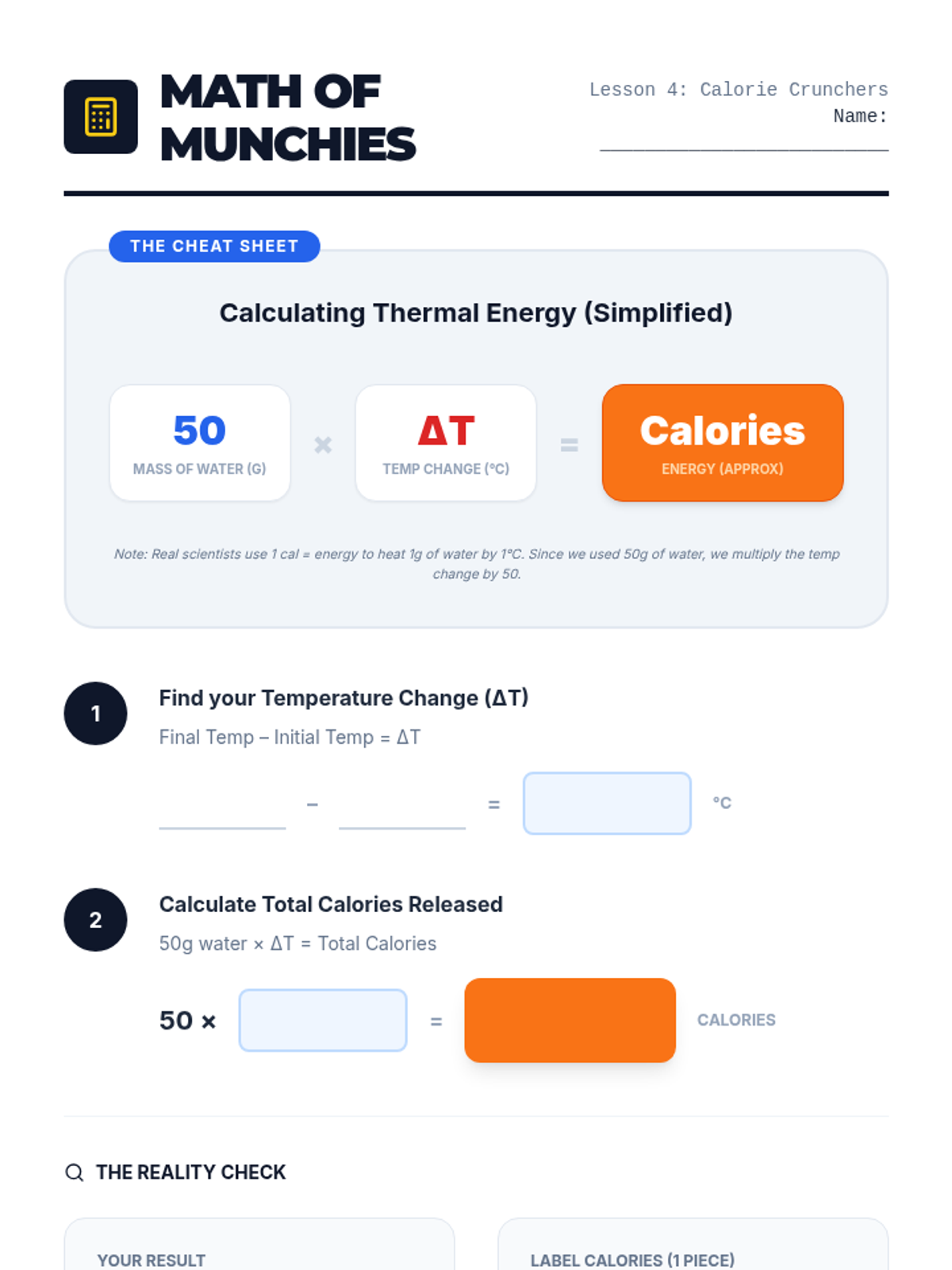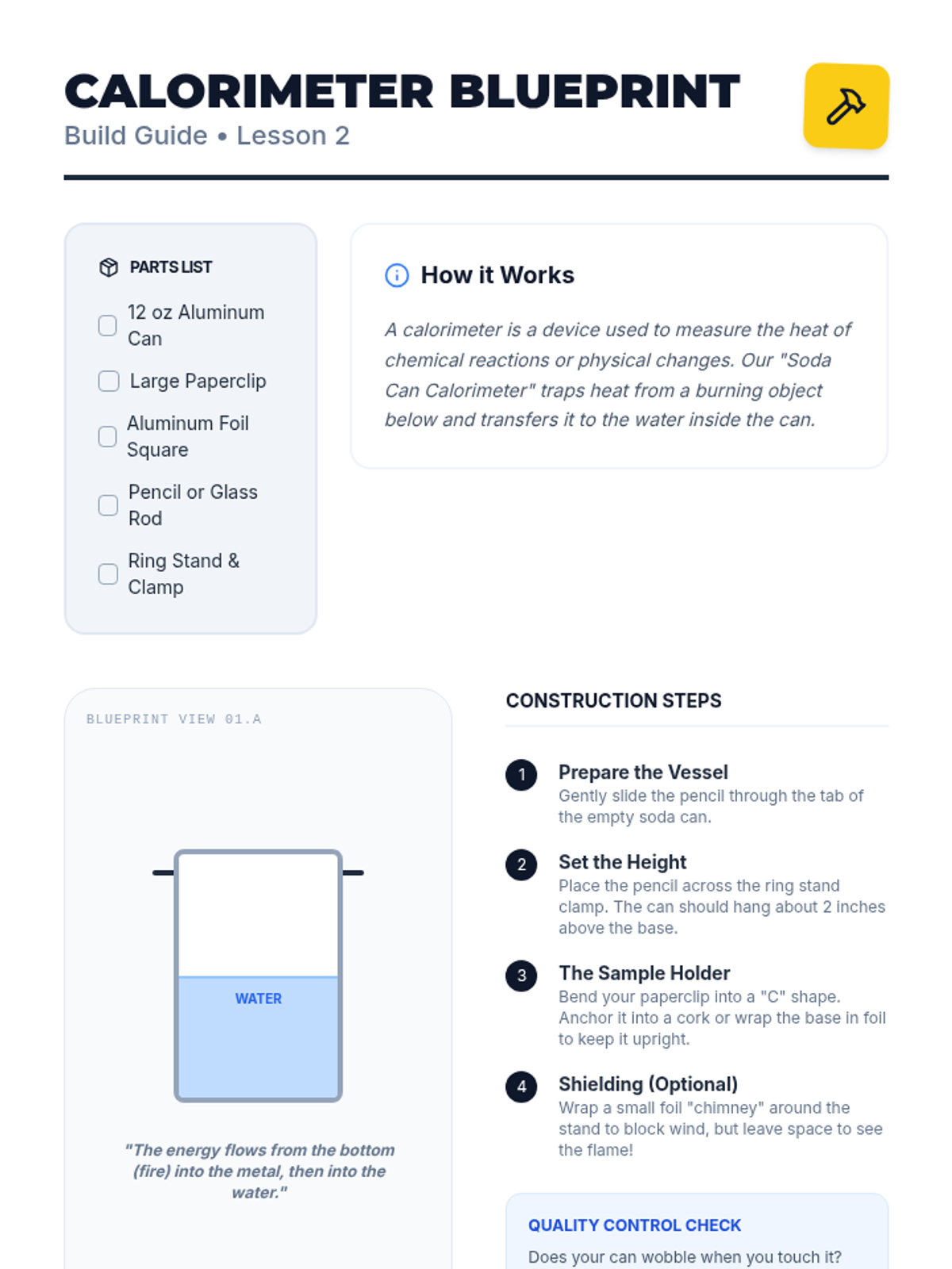 A 6th-grade chemistry sequence exploring the measurement of thermal energy through calorimetry. Students differentiate between heat and temperature, build lab equipment, and calculate the energy density of various foods and fuels.
