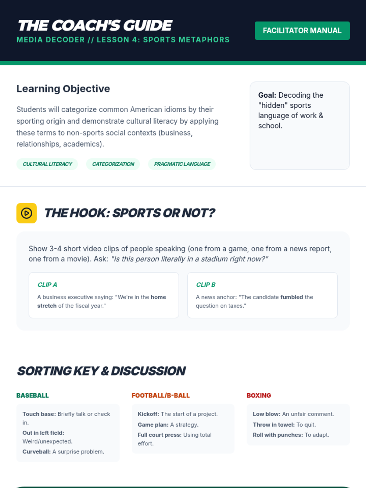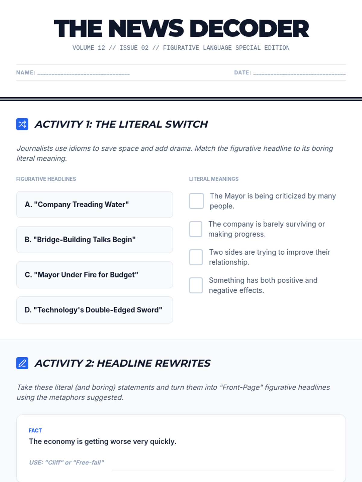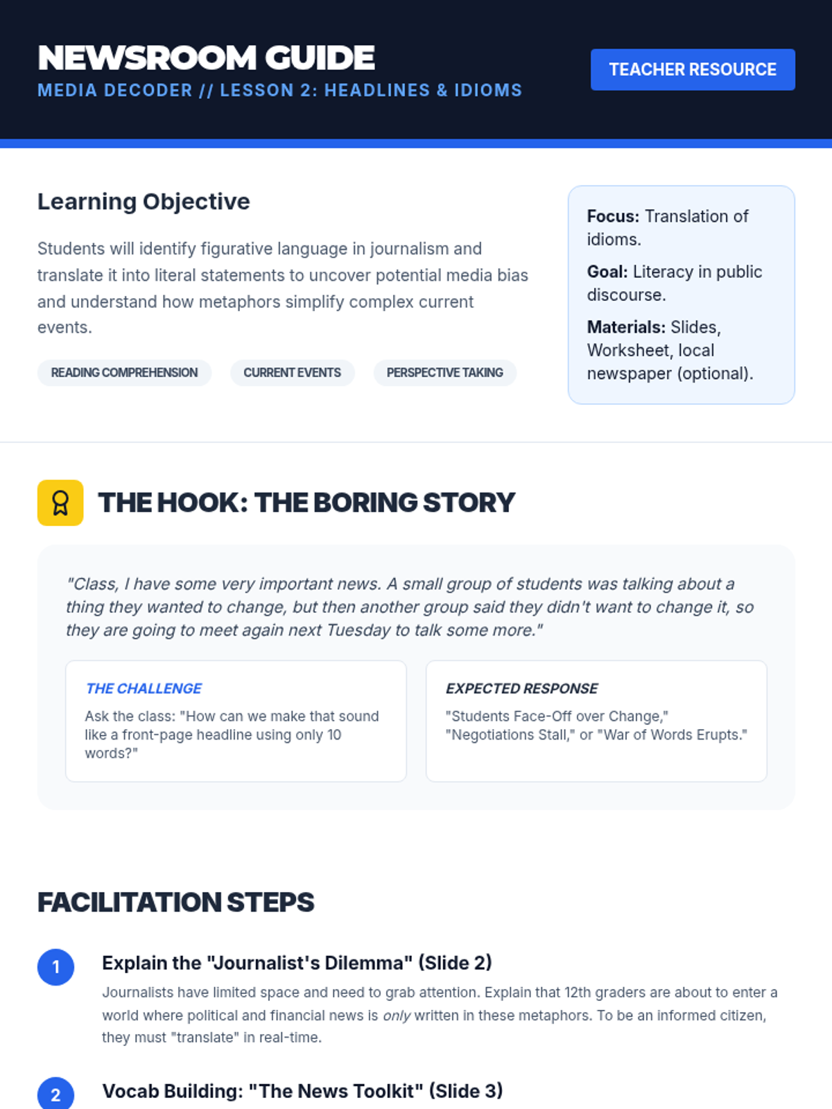 A 12th-grade Social Communication sequence focused on deconstructing metaphors, analogies, and idioms in media, politics, and news to enhance media literacy and communication skills.