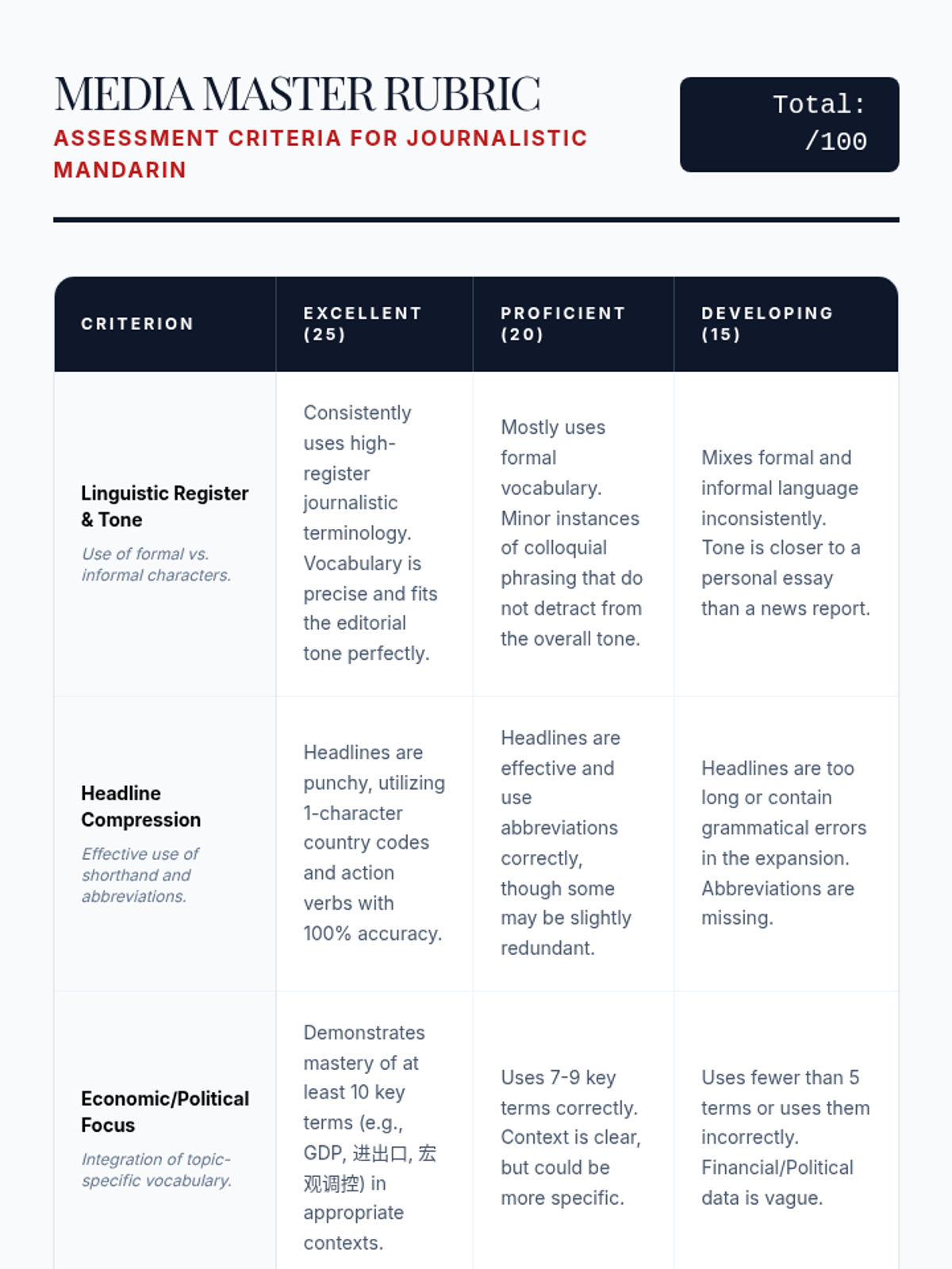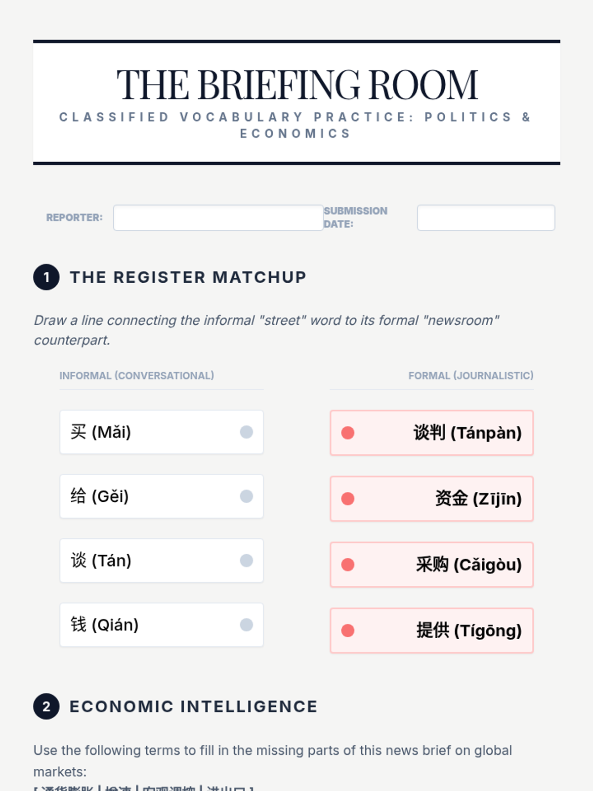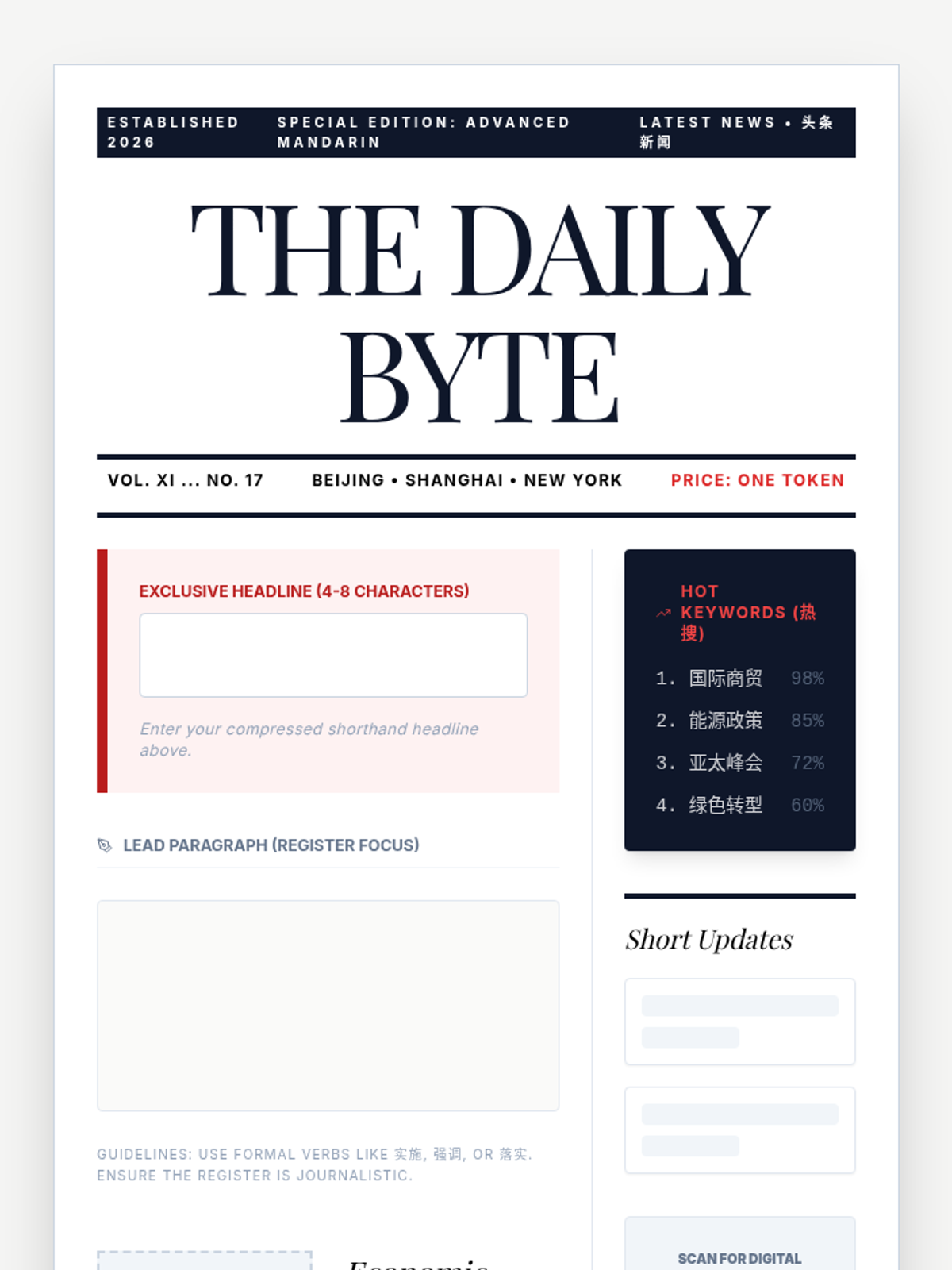 This advanced Mandarin Chinese sequence for 11th graders explores the specialized language of Chinese news media. Students master character abbreviations for countries and organizations, distinguish between formal and informal vocabulary in political and economic contexts, and analyze how word choice influences bias and tone in journalism.