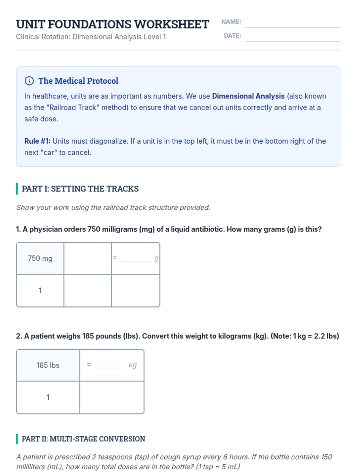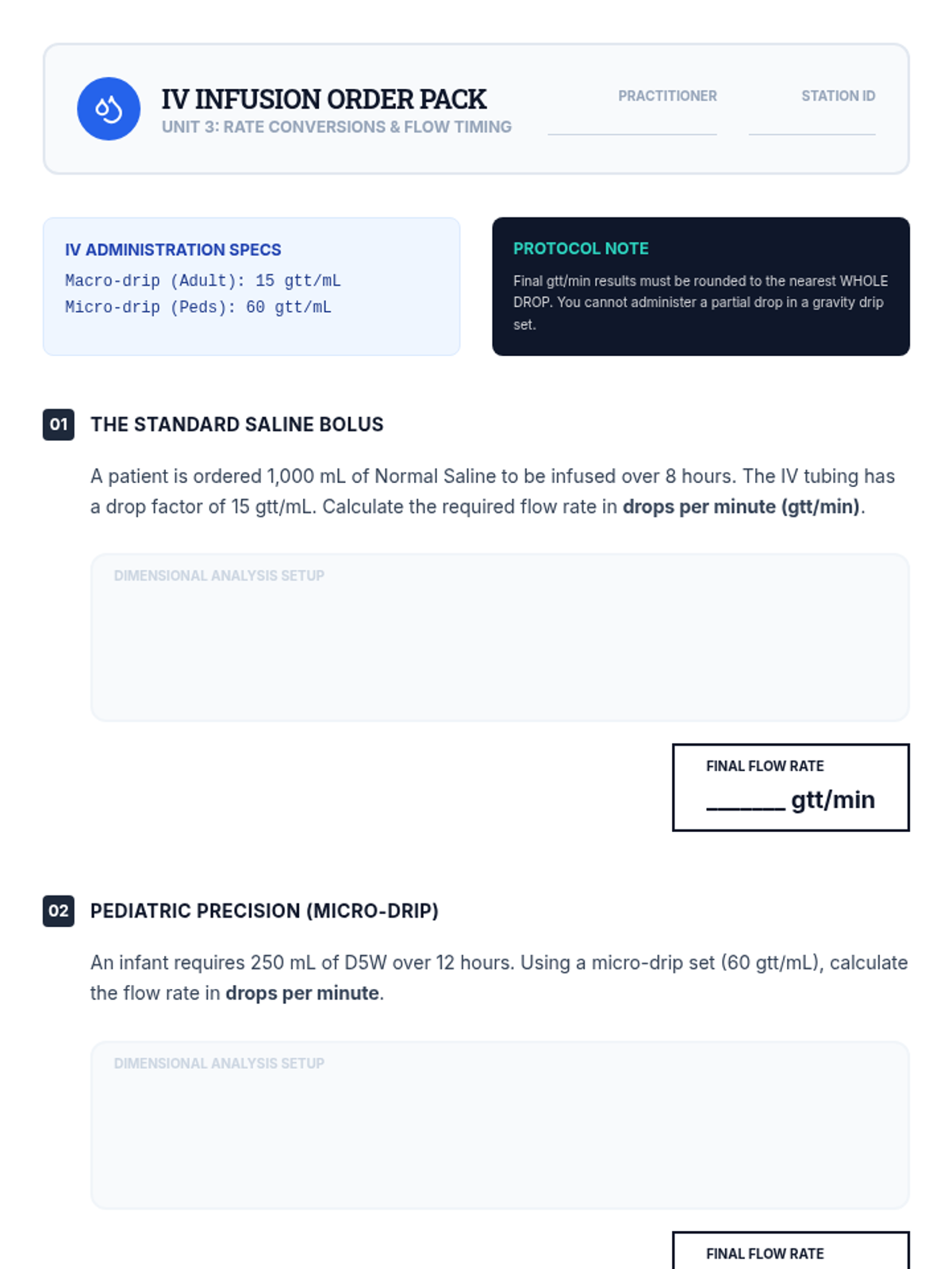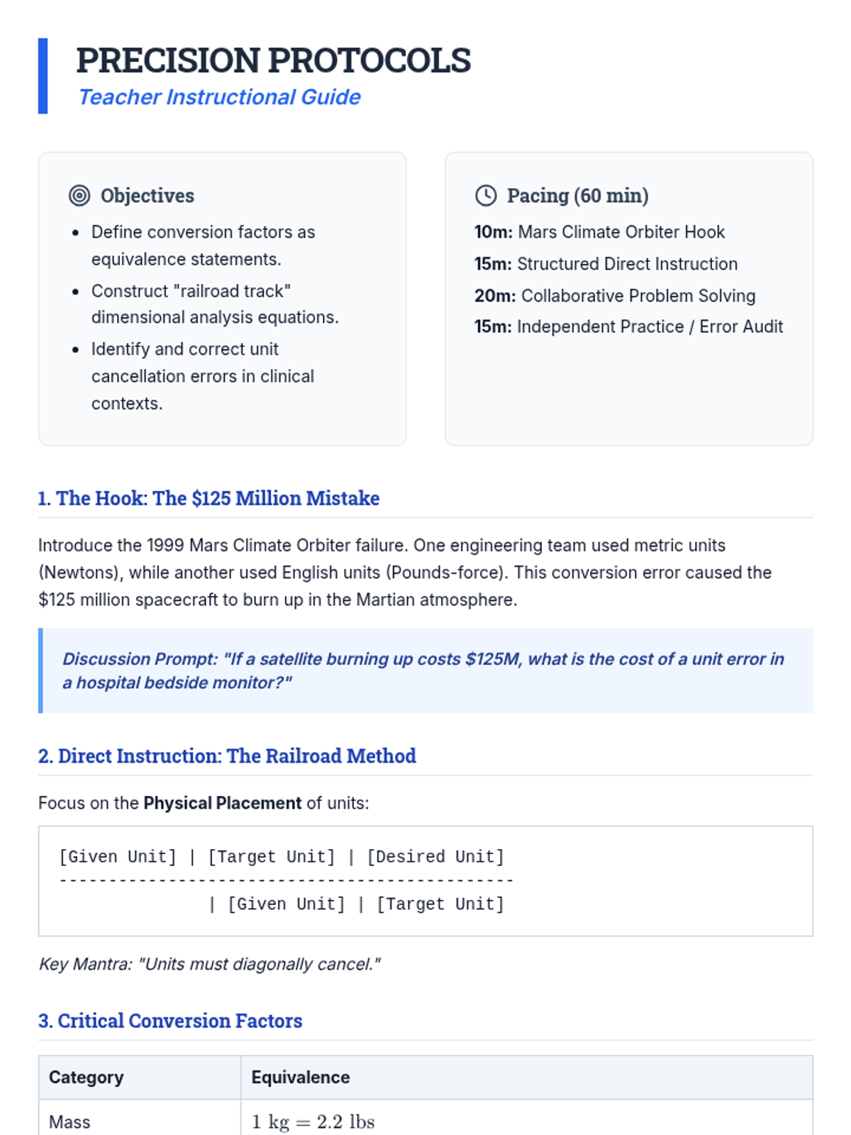A career-focused sequence for 12th-grade students exploring the critical role of dimensional analysis in healthcare. Students master unit conversions, weight-based dosing, and IV flow rates through the lens of medical professionals to prevent clinical errors.