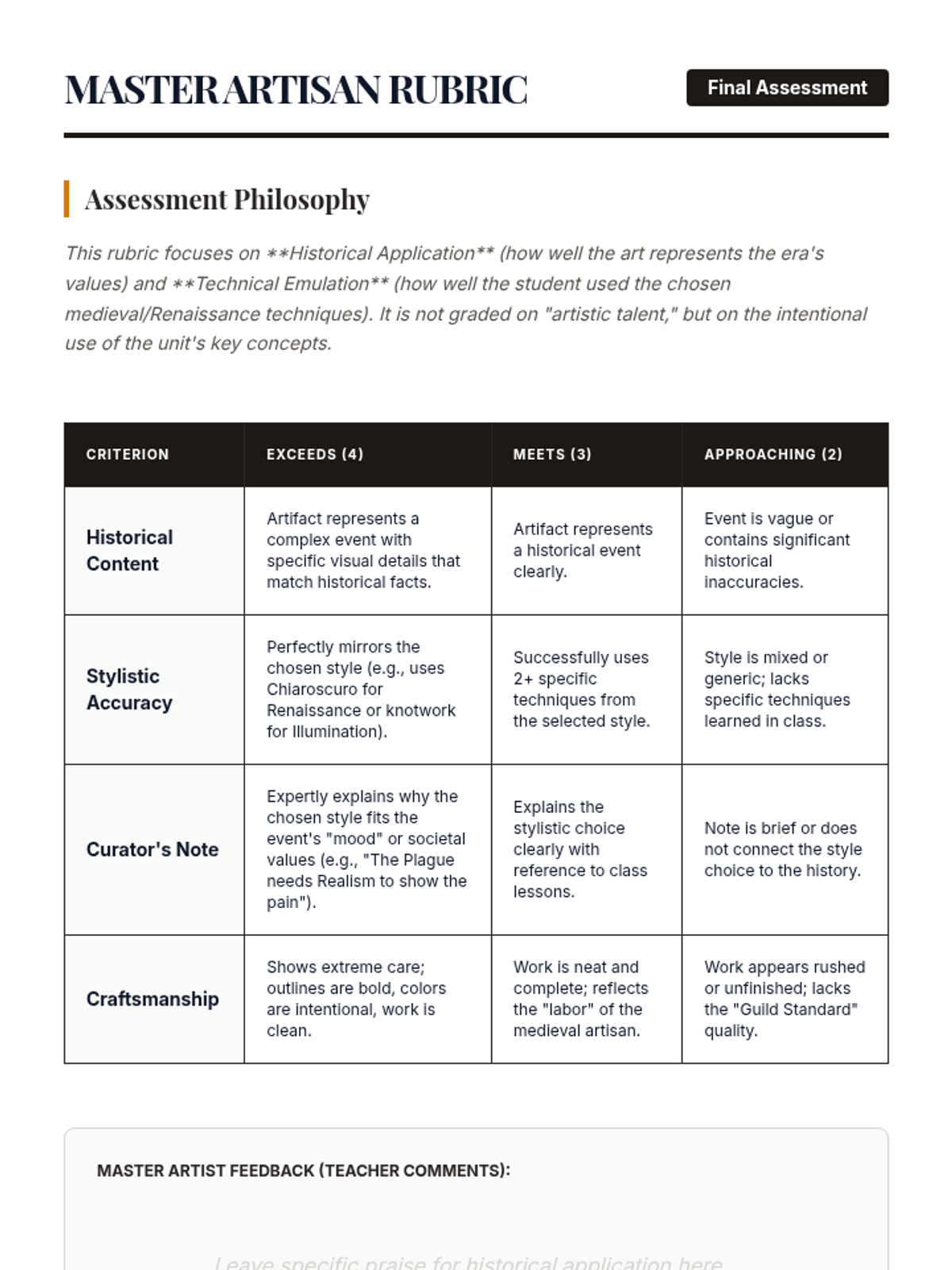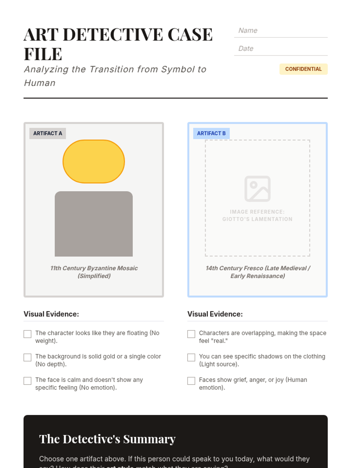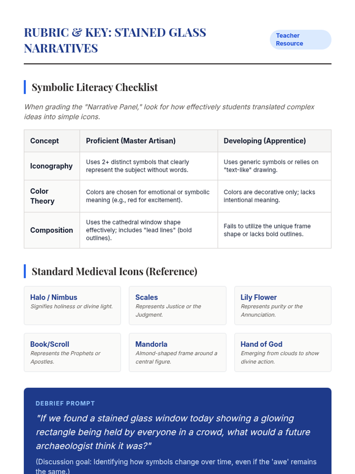 A 5th-grade history and art sequence exploring medieval society through illuminated manuscripts, stained glass, and the shift toward Renaissance realism. Students analyze visual culture to understand the preservation of literacy, the guild system, and the evolution of human expression.