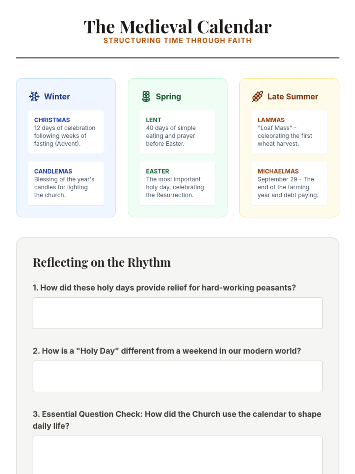 This sequence explores the central role of the Catholic Church in Medieval Europe, examining how it shaped culture, education, art, and daily life through monasteries, cathedrals, and religious authority.