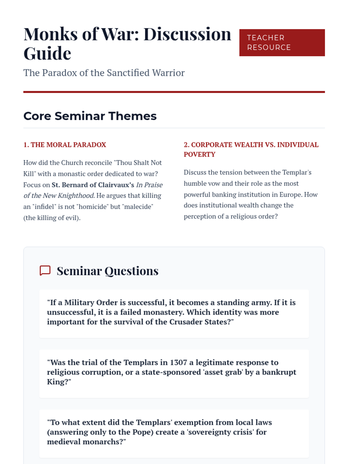This undergraduate-level history sequence explores the intersection of theology, politics, and military technology during the Crusades and the Reconquista. Students will analyze the ideological justifications for holy war, the logistical challenges of medieval power projection, and the technological evolution of siege warfare.