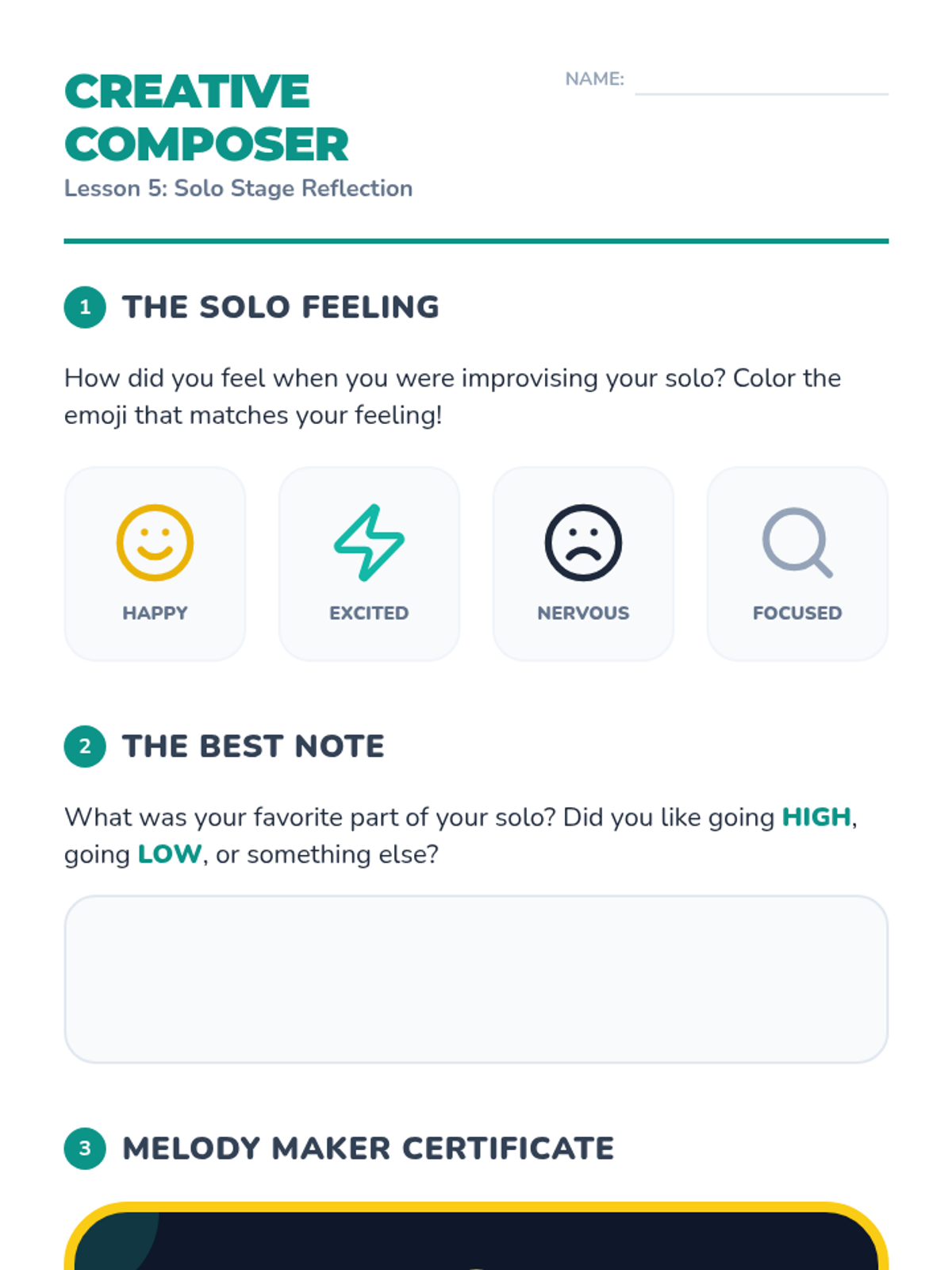 An immersive workshop-style sequence for 2nd graders exploring the roots of Jazz, Blues, and Folk music through call-and-response, syncopation, and improvisation. Students trace American musical history from work songs to the Swing era through active music-making.