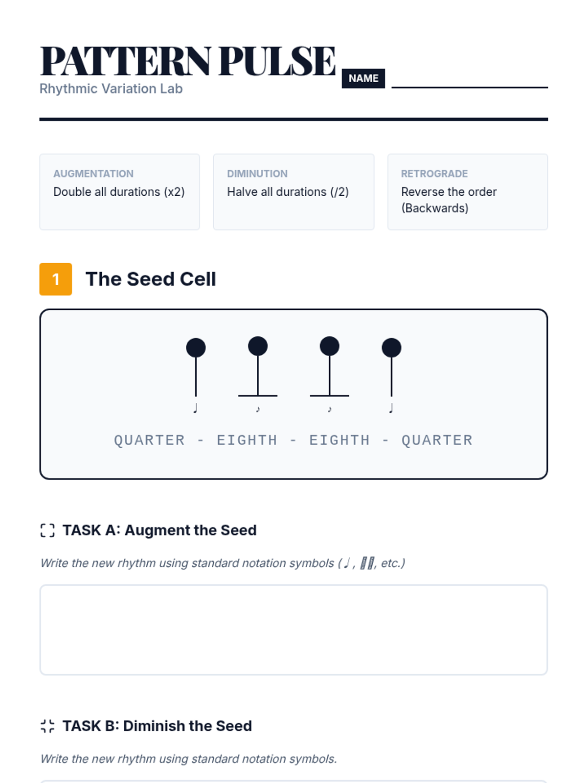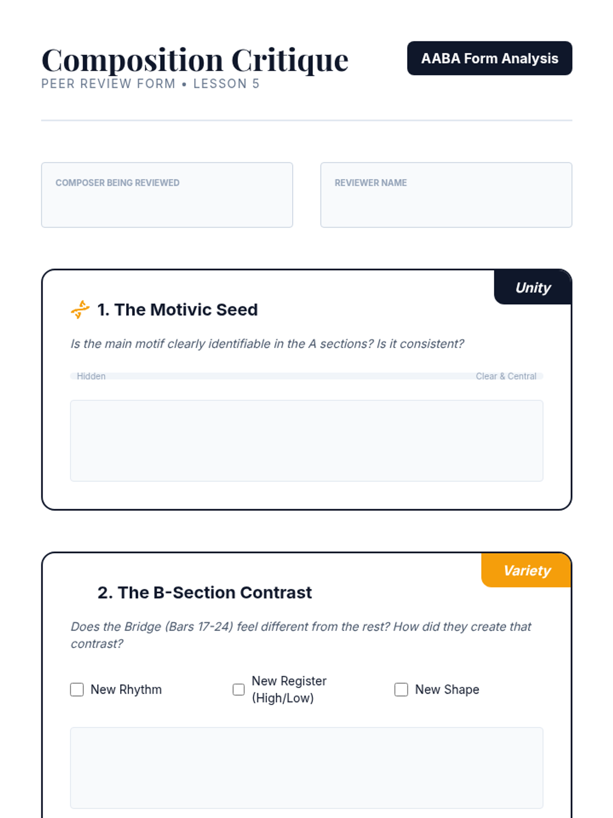 A comprehensive sequence for 10th-grade music students focusing on the creation and development of melodic motifs and structured phrasing, culminating in a 32-bar composition.