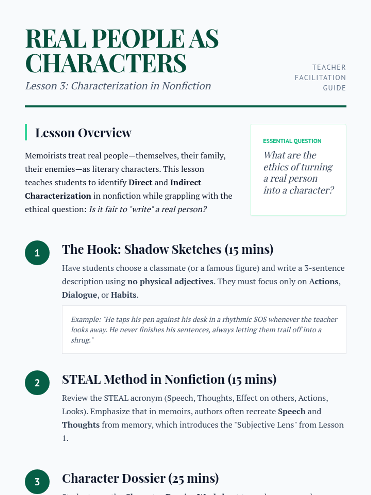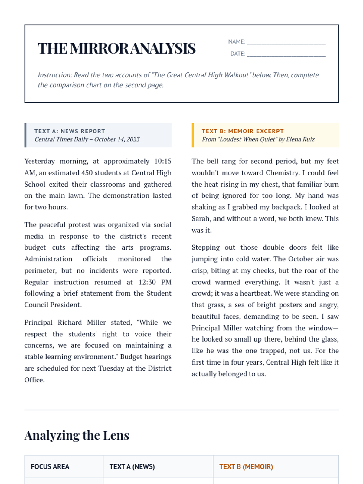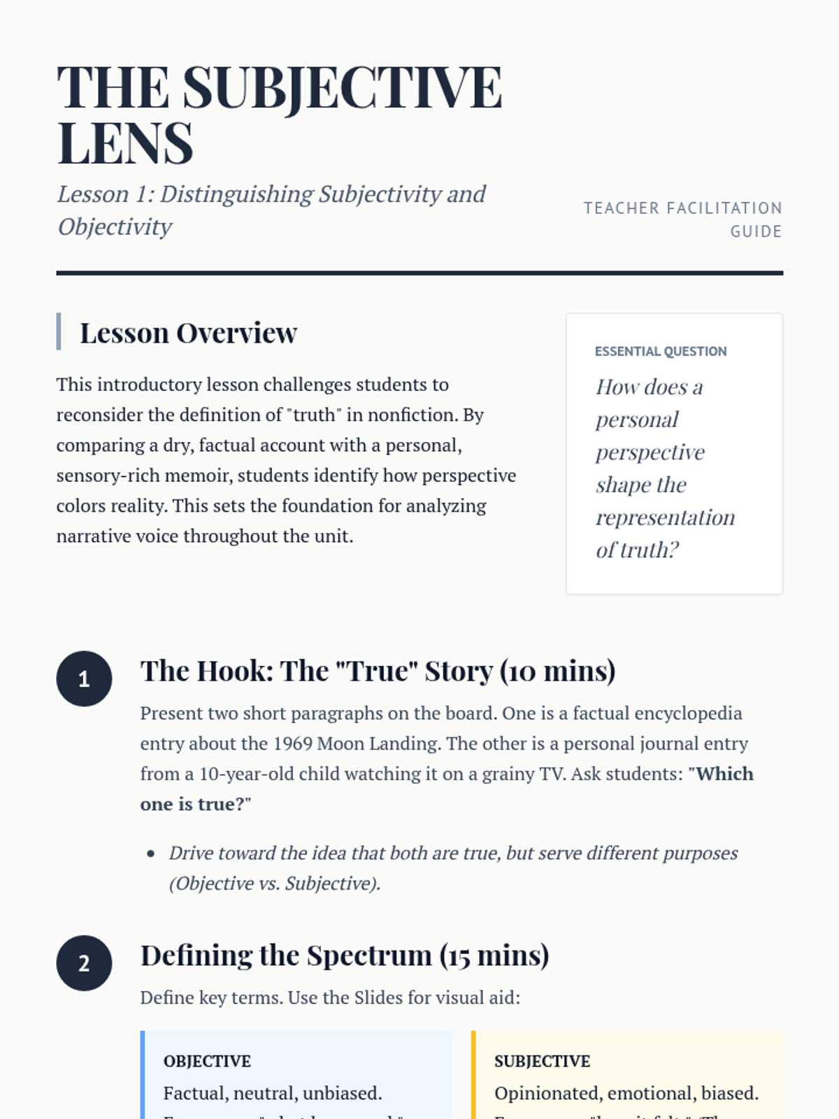 A 9th-grade sequence exploring the intersection of personal memory and objective reality in memoirs. Students analyze voice, tone, characterization, and structure to evaluate how authors represent 'truth' in narrative nonfiction.