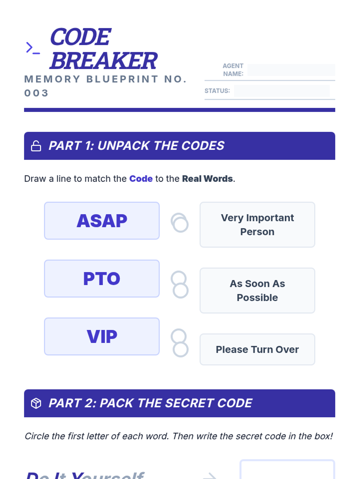 A comprehensive instructional unit focused on the foundational skill of following a multi-step task to completion. This unit provides two distinct tracks: a secret agent-themed track for older students (7-8) and a Danny Go! themed track for Pre-K students, ensuring developmental appropriateness while maintaining high engagement.