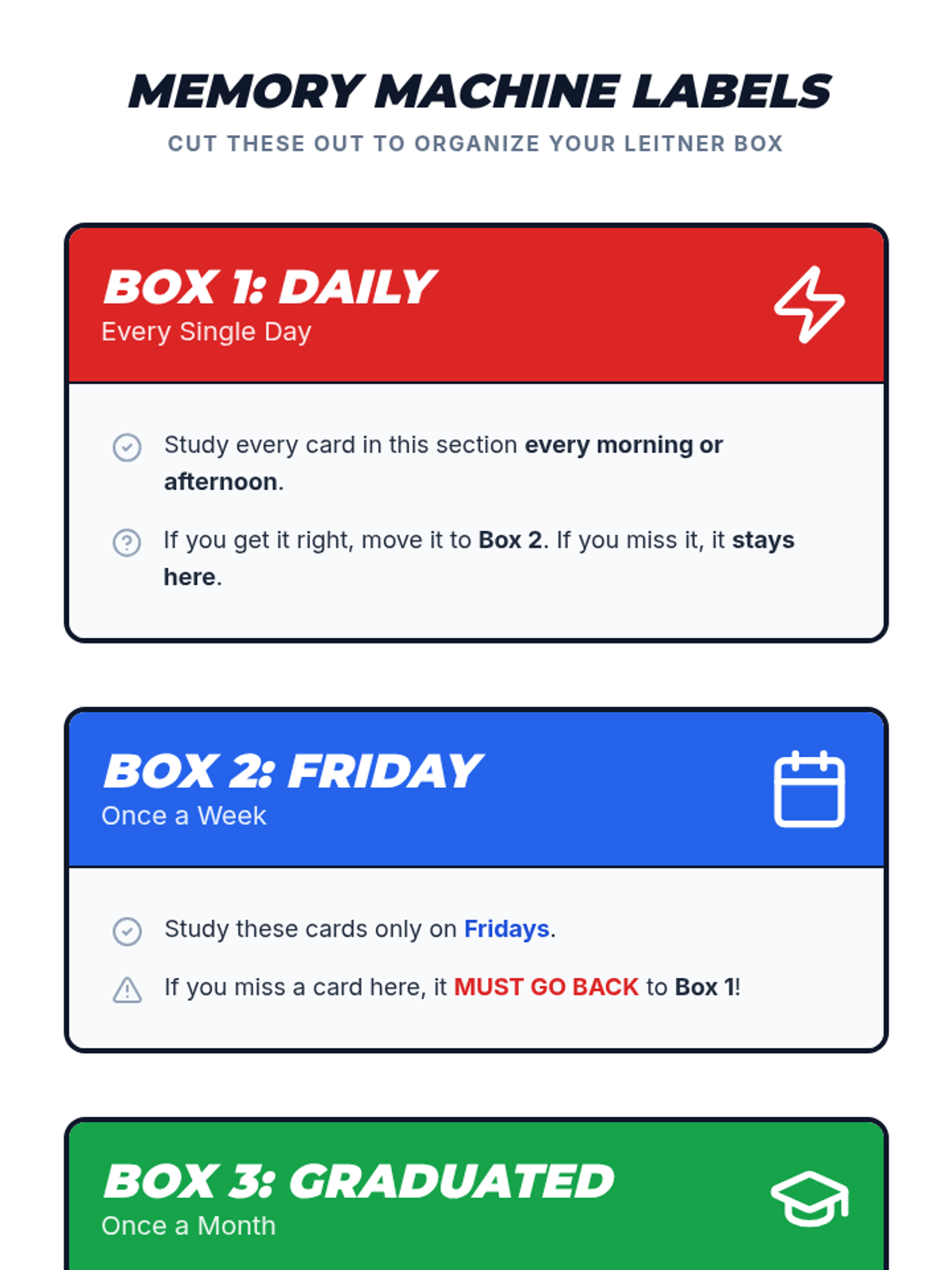 A 4th-grade sequence introducing the Leitner System for spaced repetition, helping students understand memory, build physical study tools, and develop effective long-term retention habits.