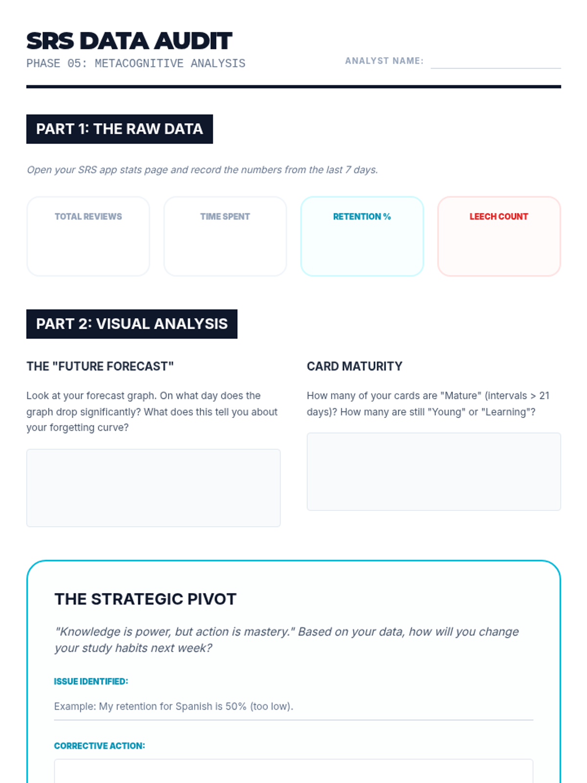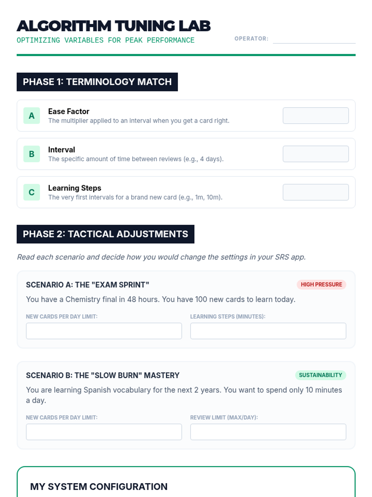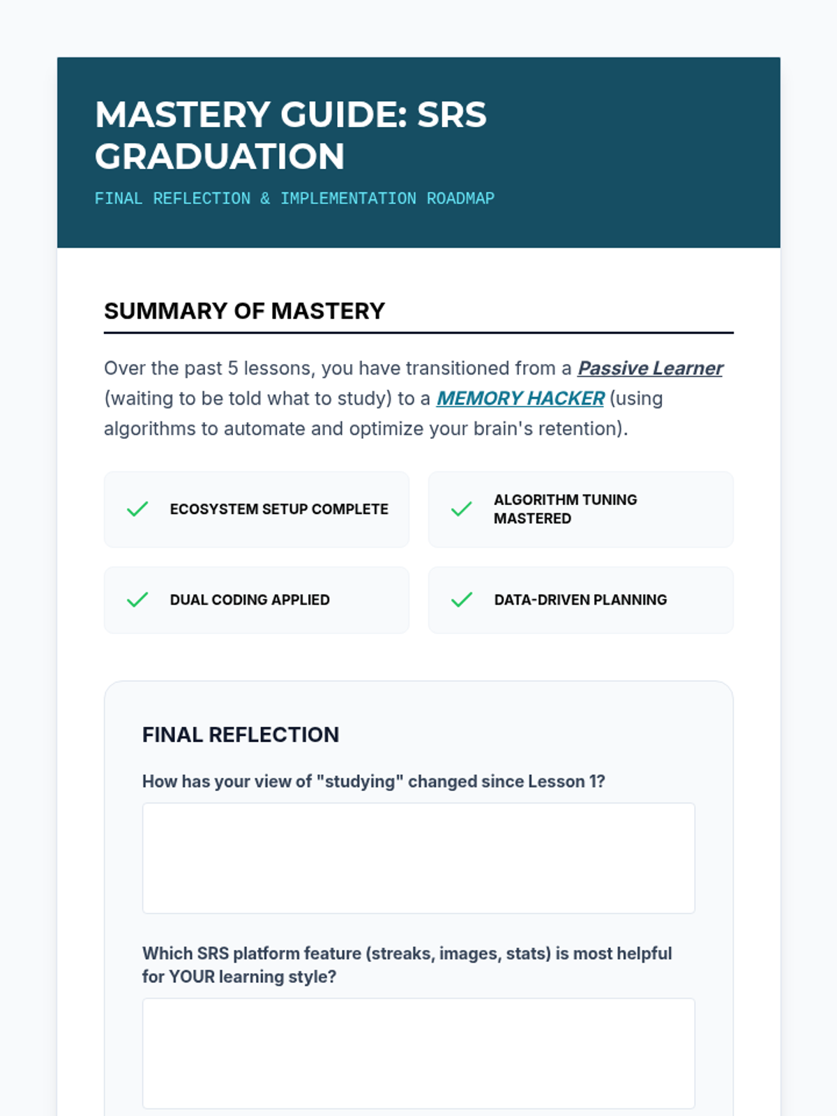 A 5-lesson unit for 10th-grade academic support focused on leveraging digital spaced repetition software (SRS) to automate memory retention and track learning progress through data.