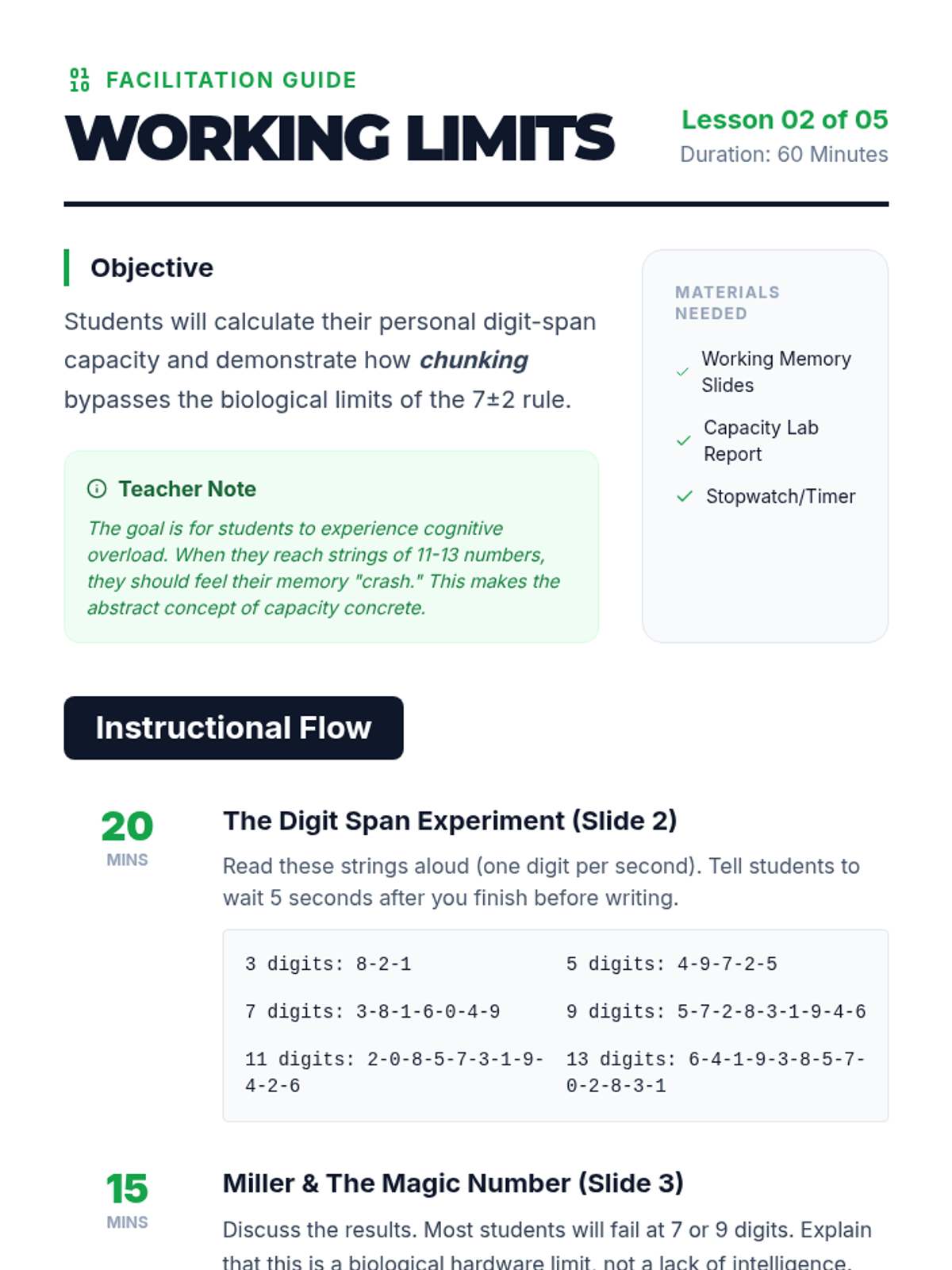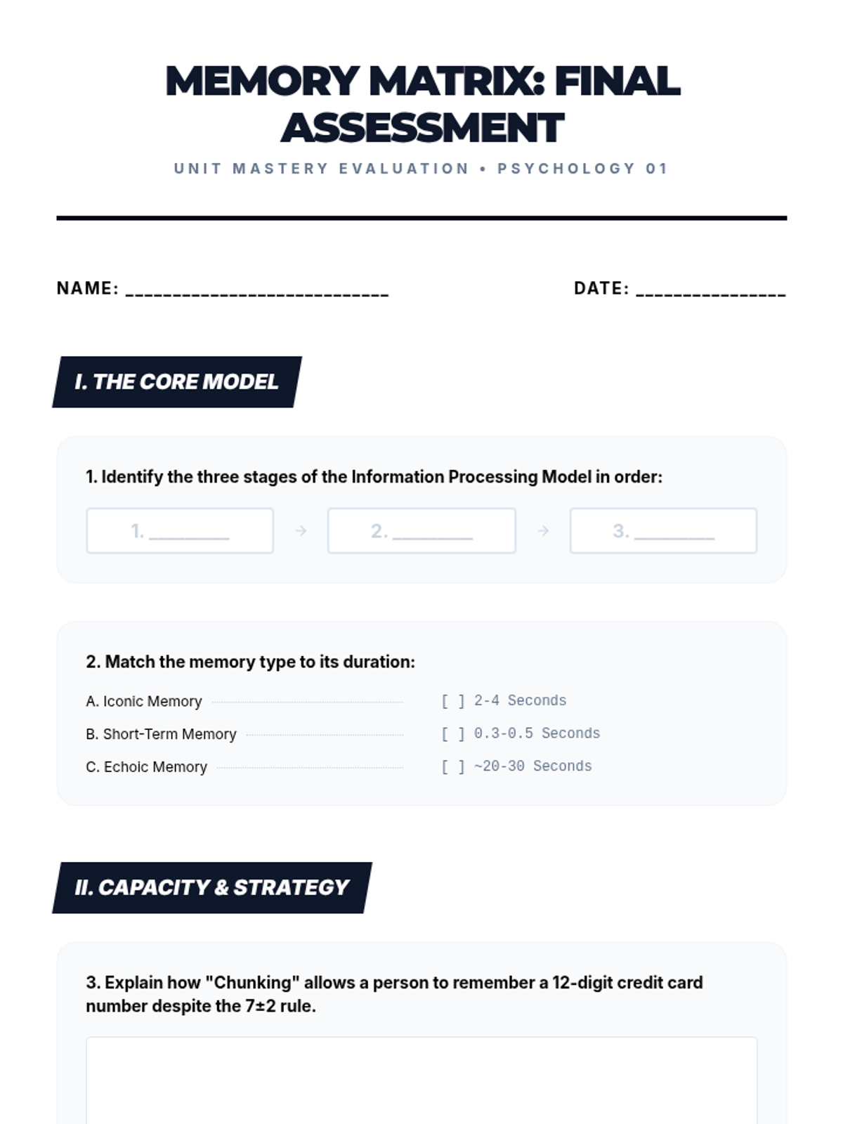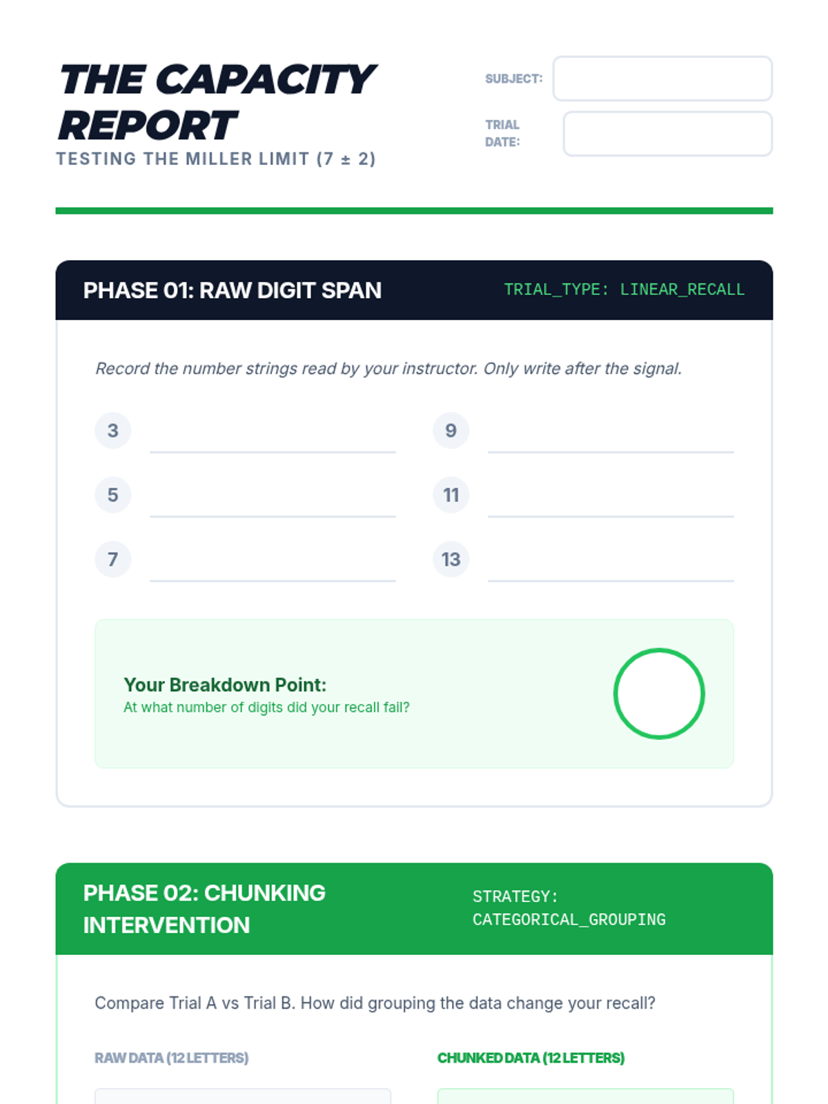 This sequence explores the Information Processing Model of memory through interactive experiments and simulations. Students journey from the fleeting snapshots of sensory memory to the complex webs of long-term storage and retrieval.