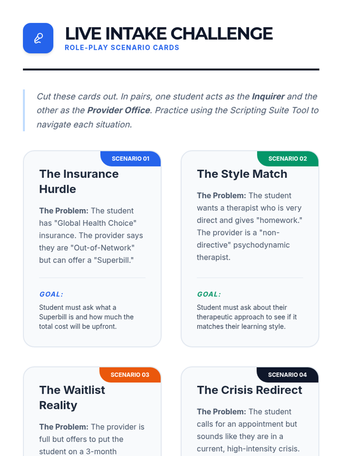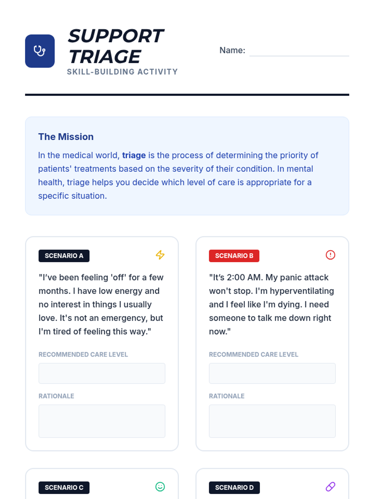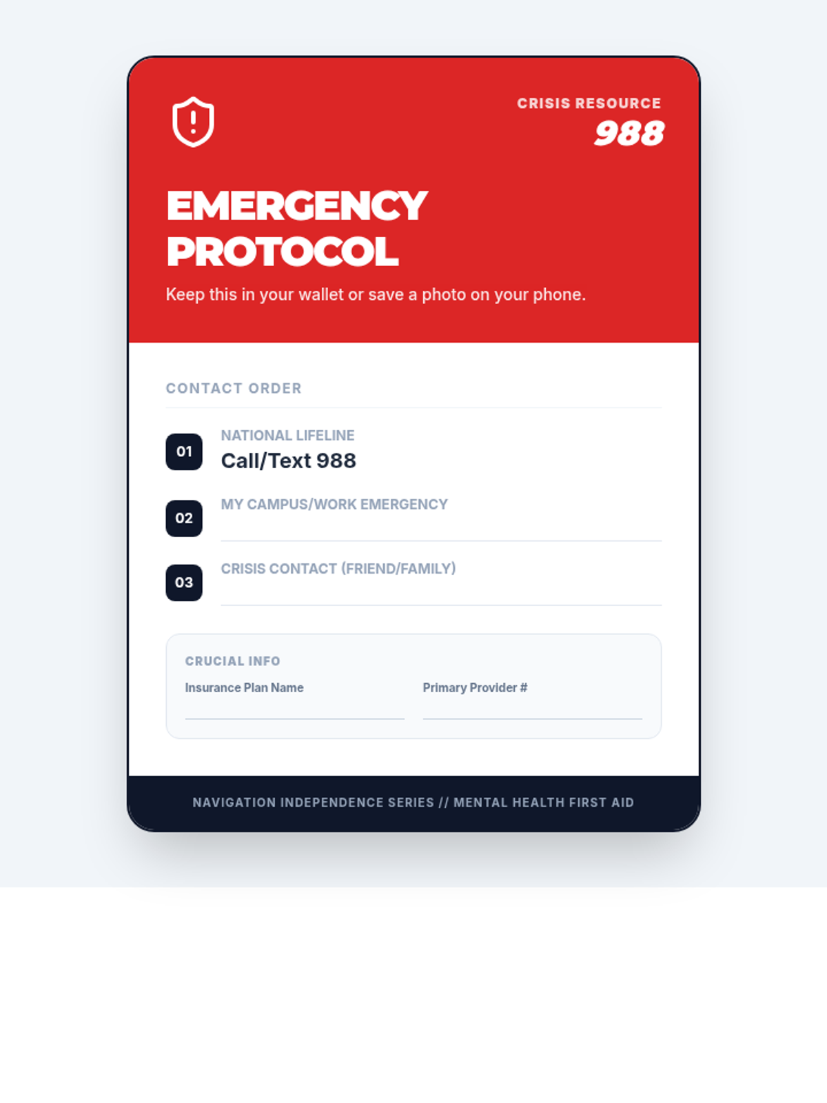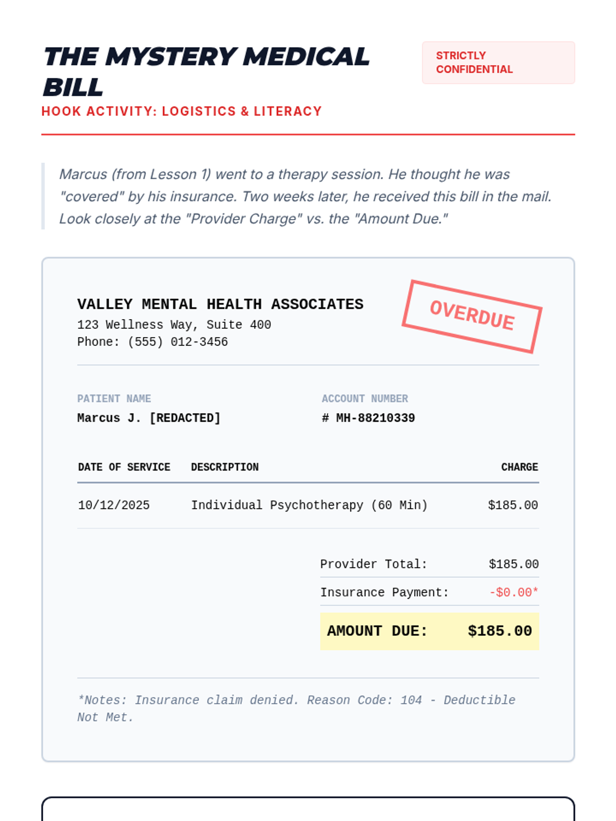 This sequence prepares seniors for the transition to independent living by demystifying the process of accessing mental healthcare without parental intervention. Students analyze systemic and psychological barriers to help-seeking, map out community and digital resources, and develop practical health literacy skills including insurance navigation and professional communication.