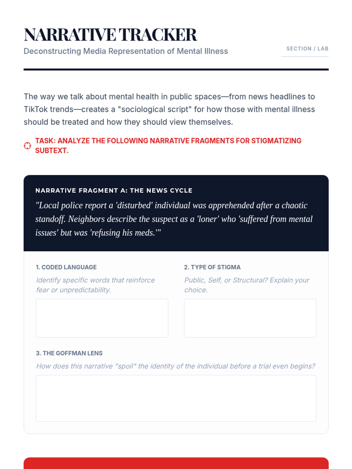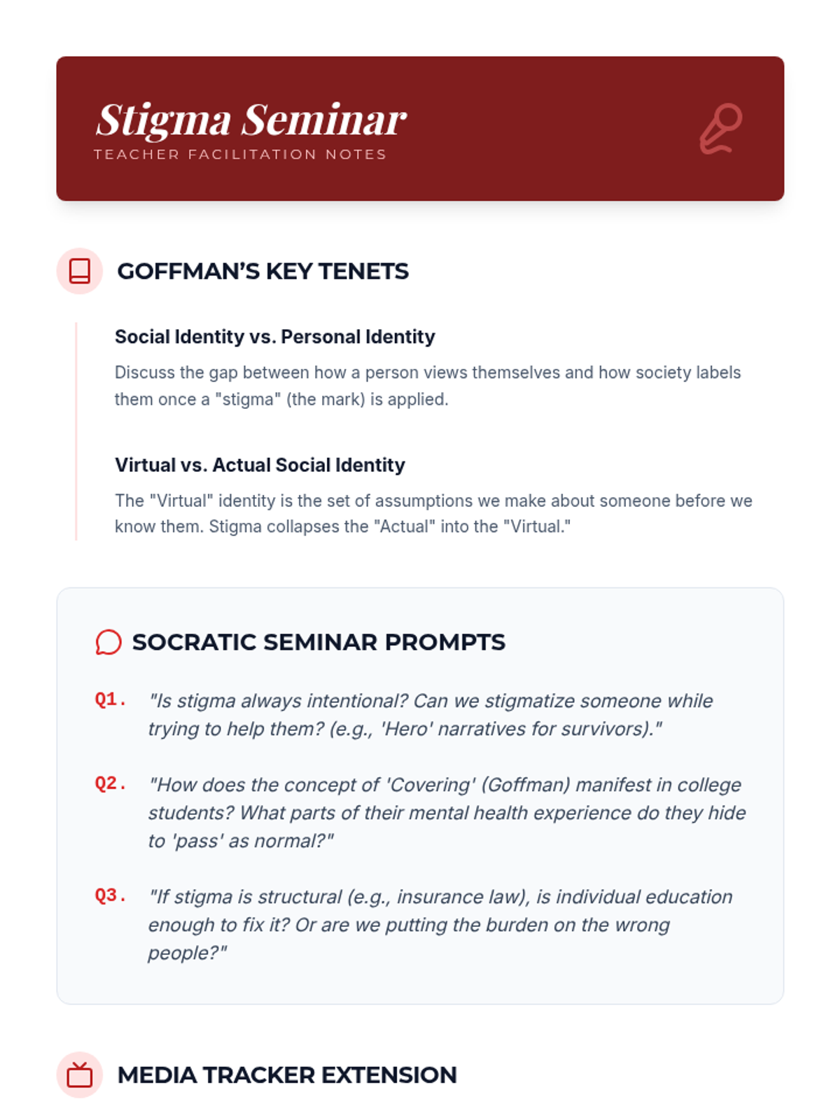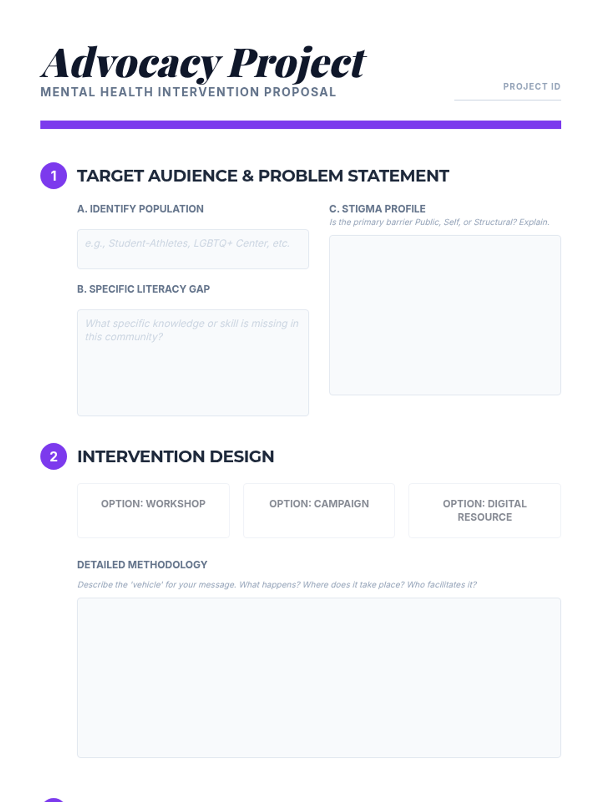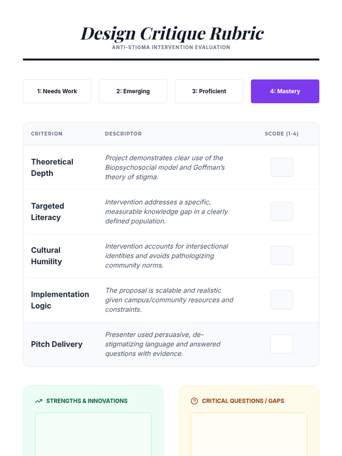 This sequence engages undergraduate students in a critical examination of mental health literacy and the sociological mechanisms of stigma. Students will progress from theoretical frameworks to practical application, culminating in the design of a targeted educational intervention for their community.