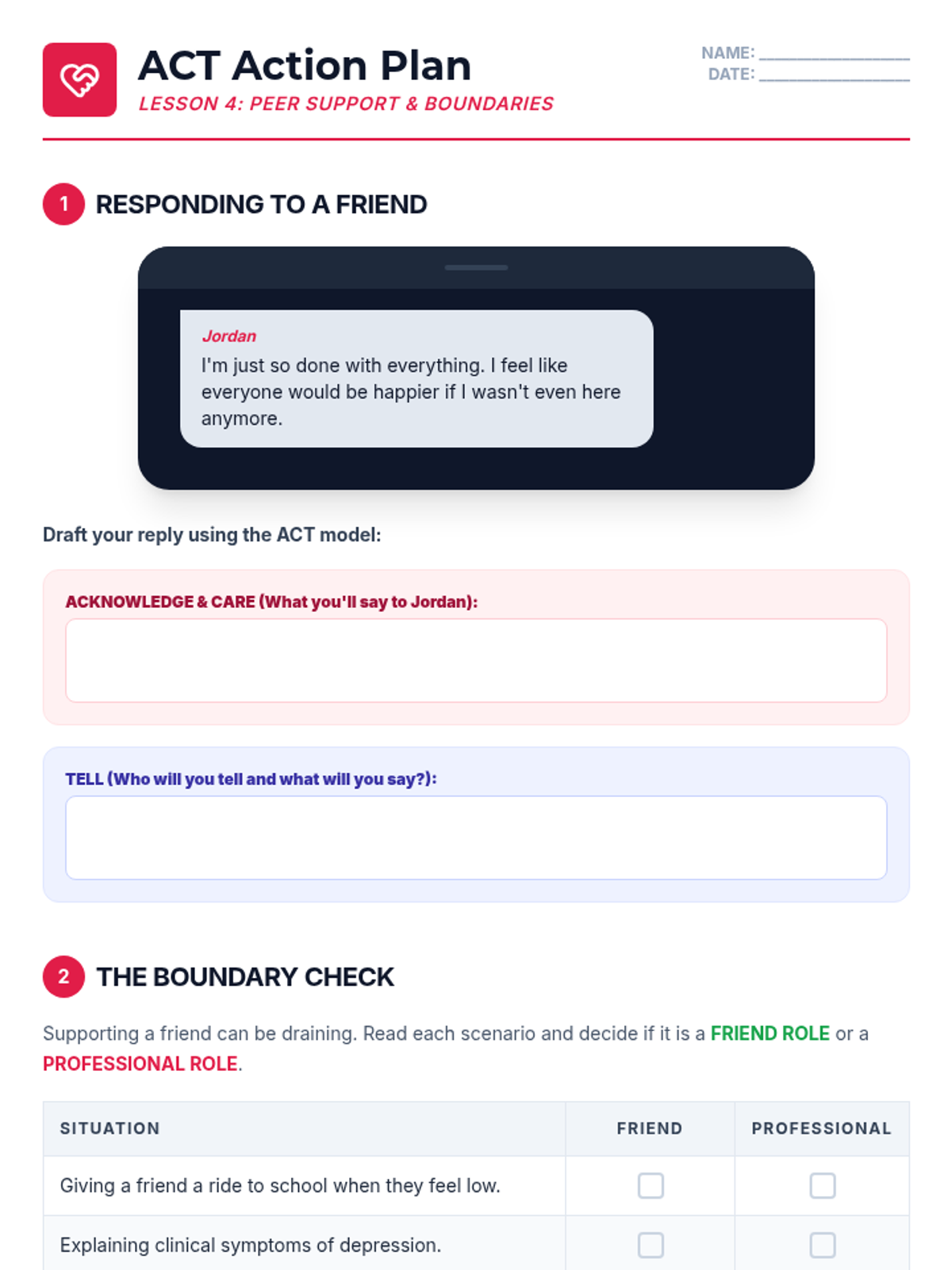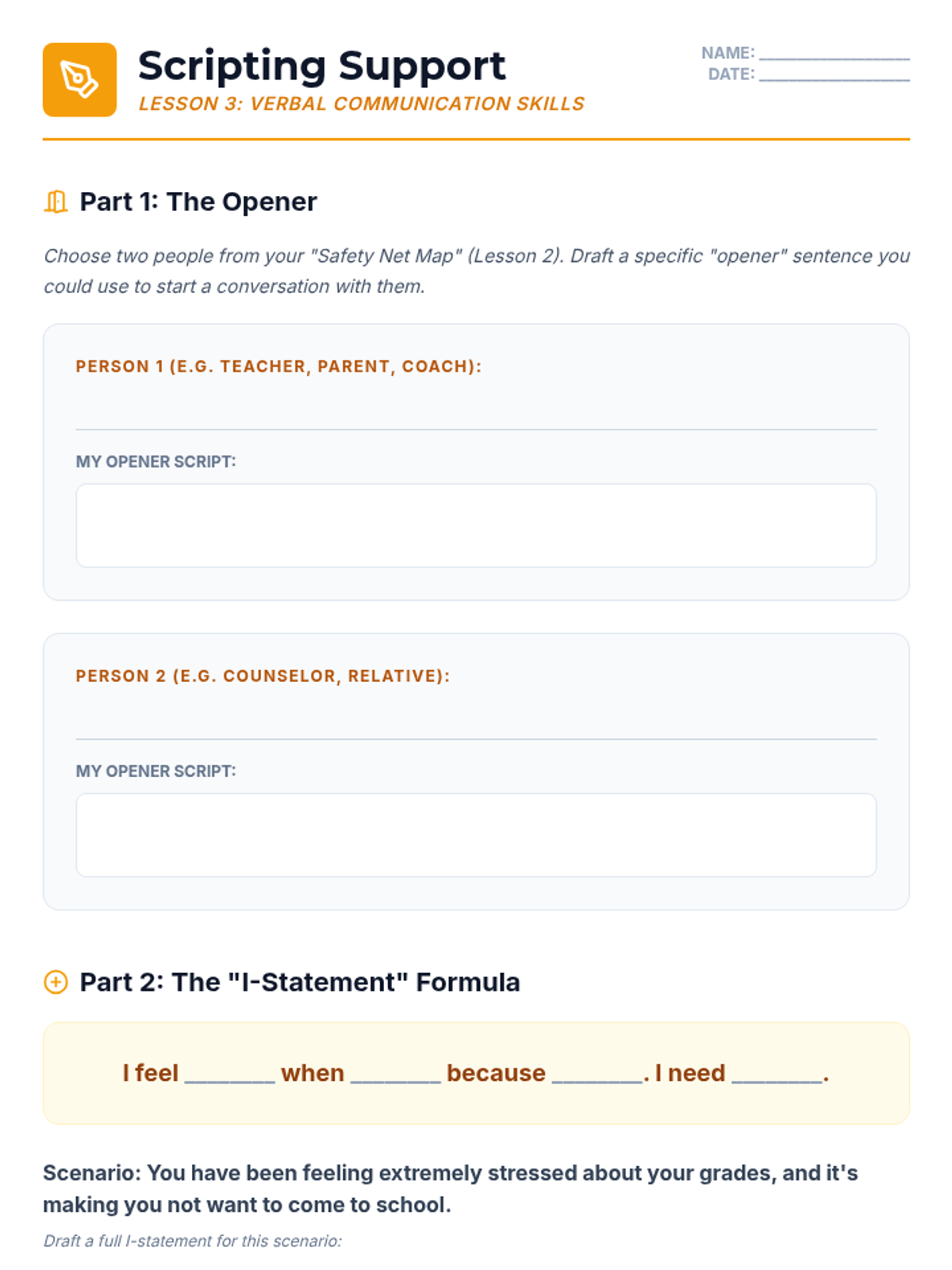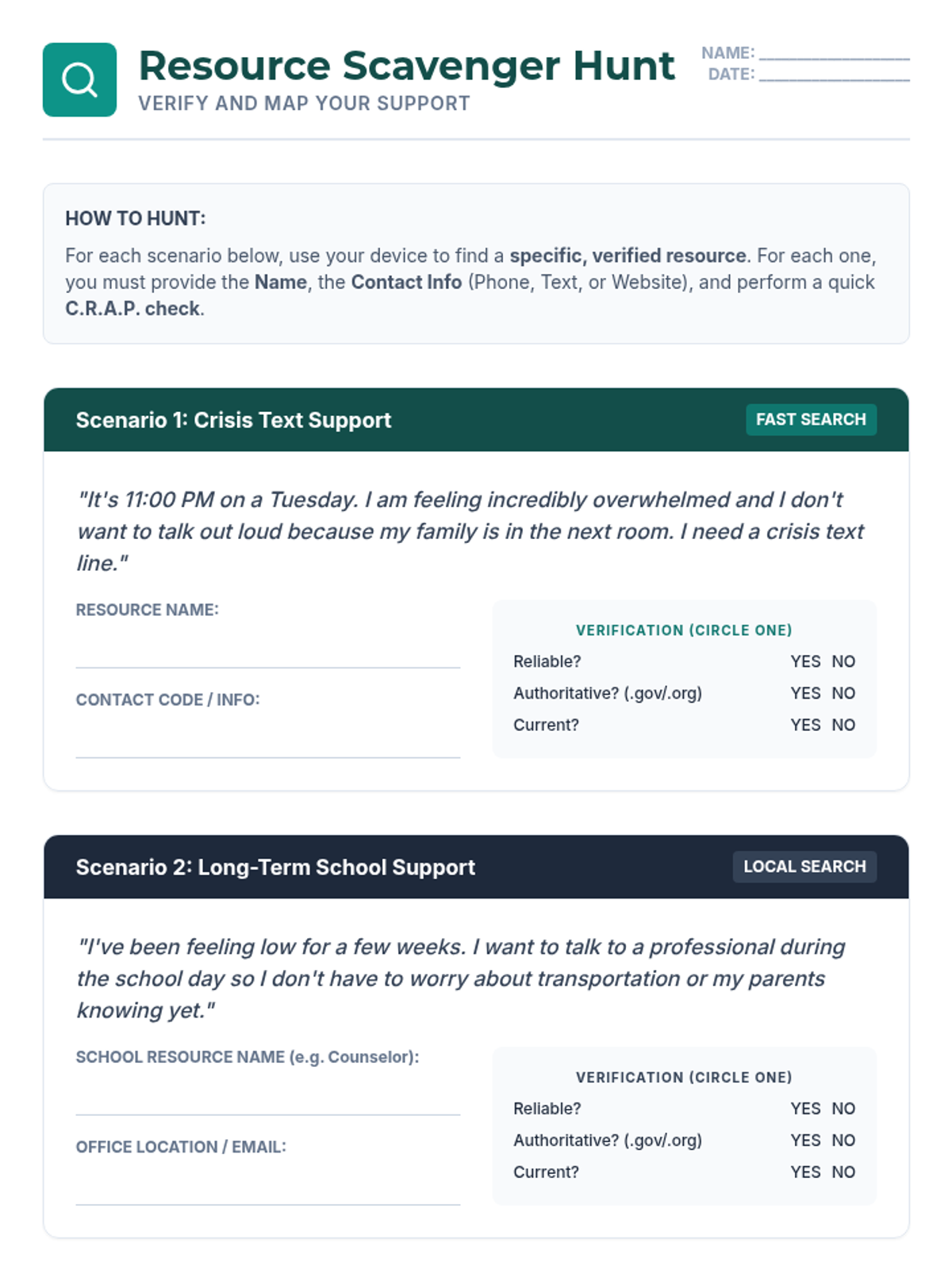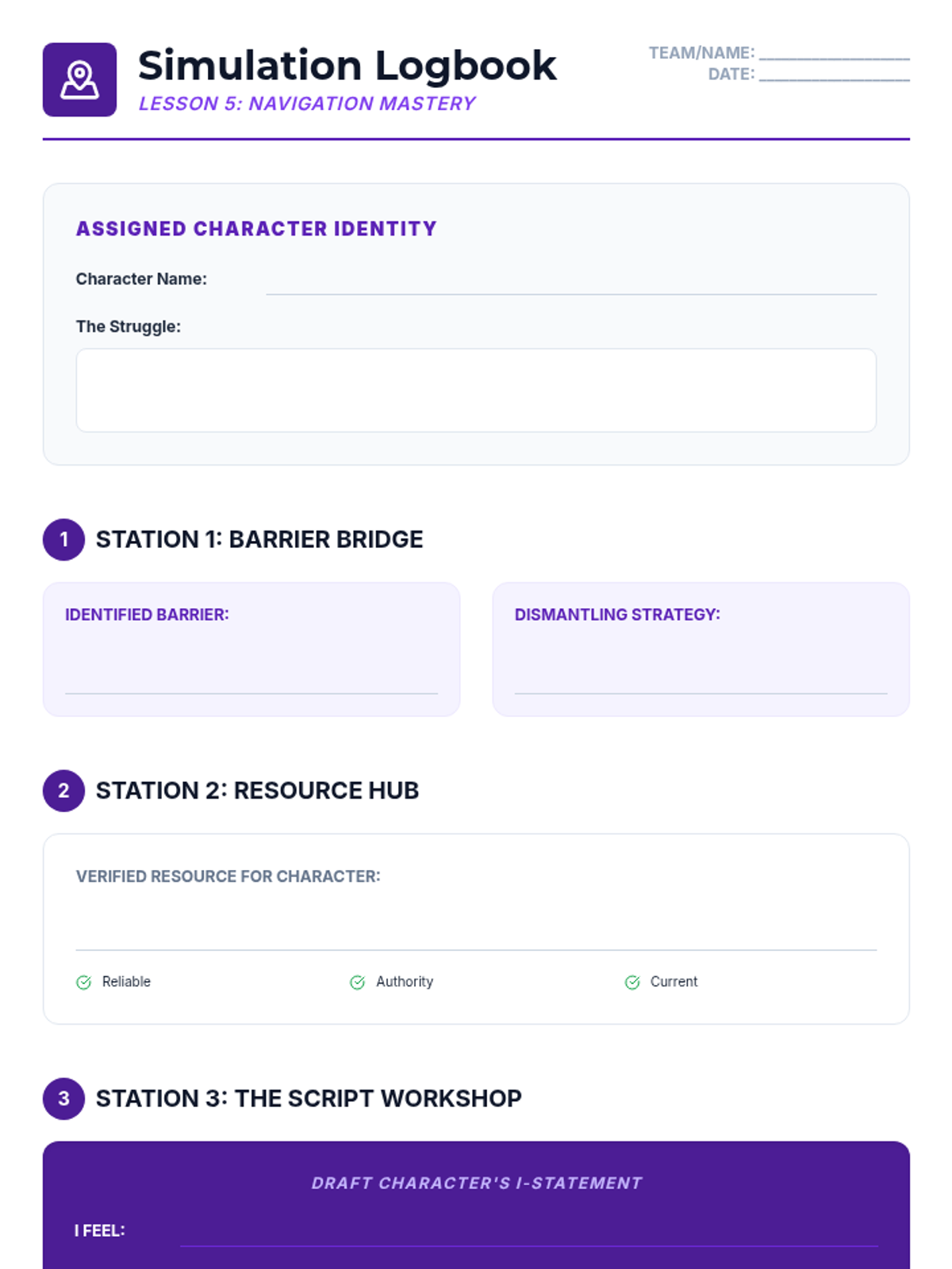 This 8th-grade sequence empowers students to overcome the psychological and logistical hurdles of seeking mental health help. Through barrier analysis, resource mapping, and verbal script practice, students build the literacy and confidence needed to advocate for themselves and their peers.