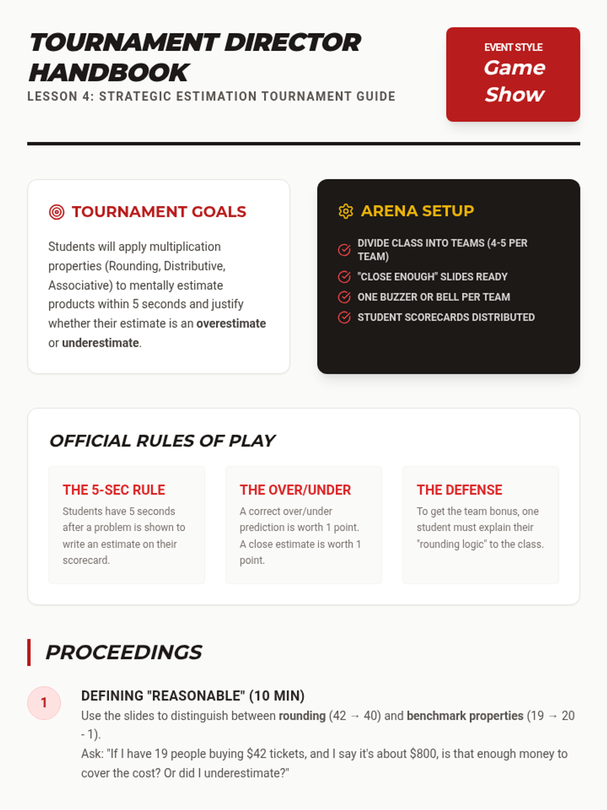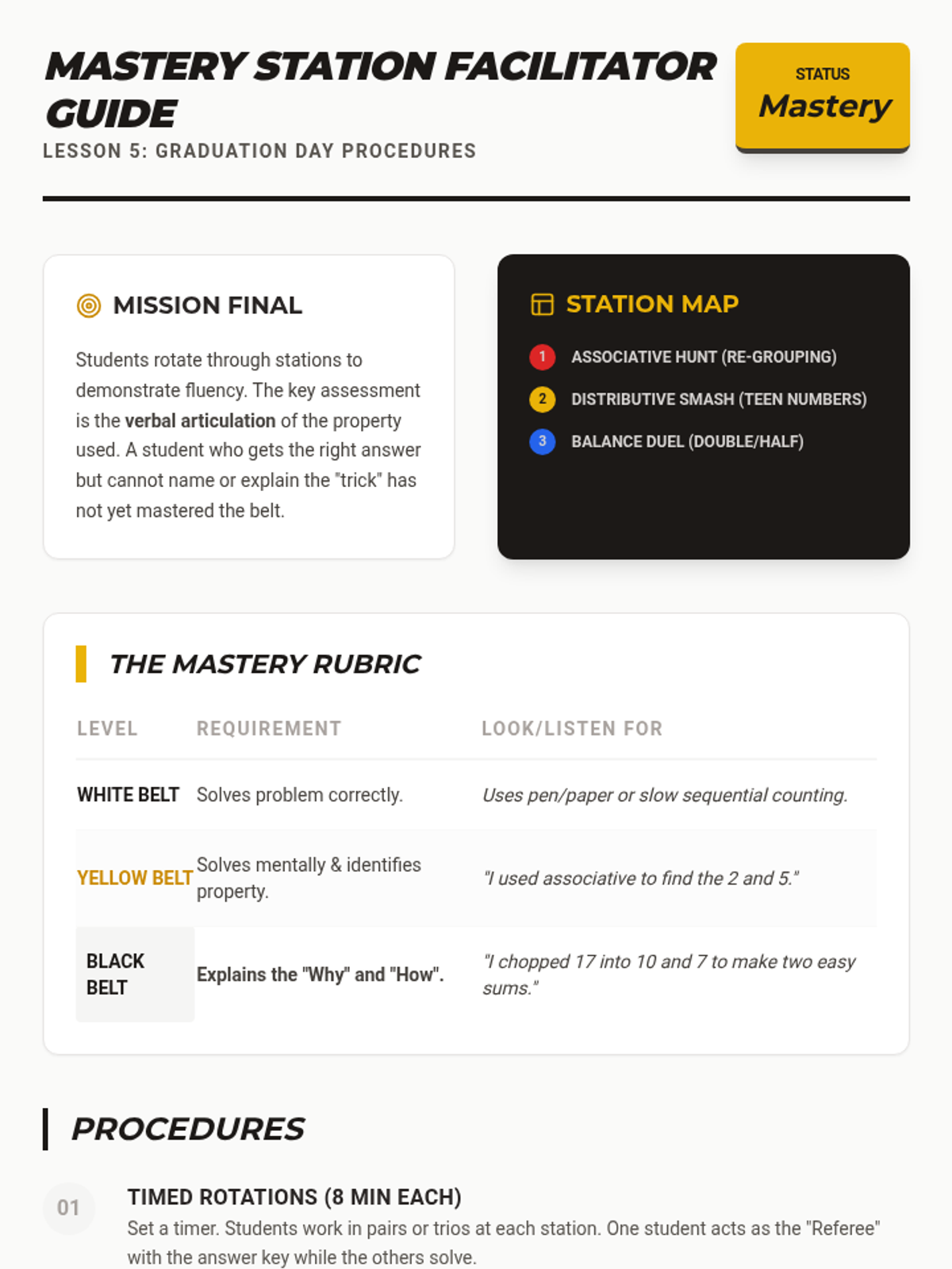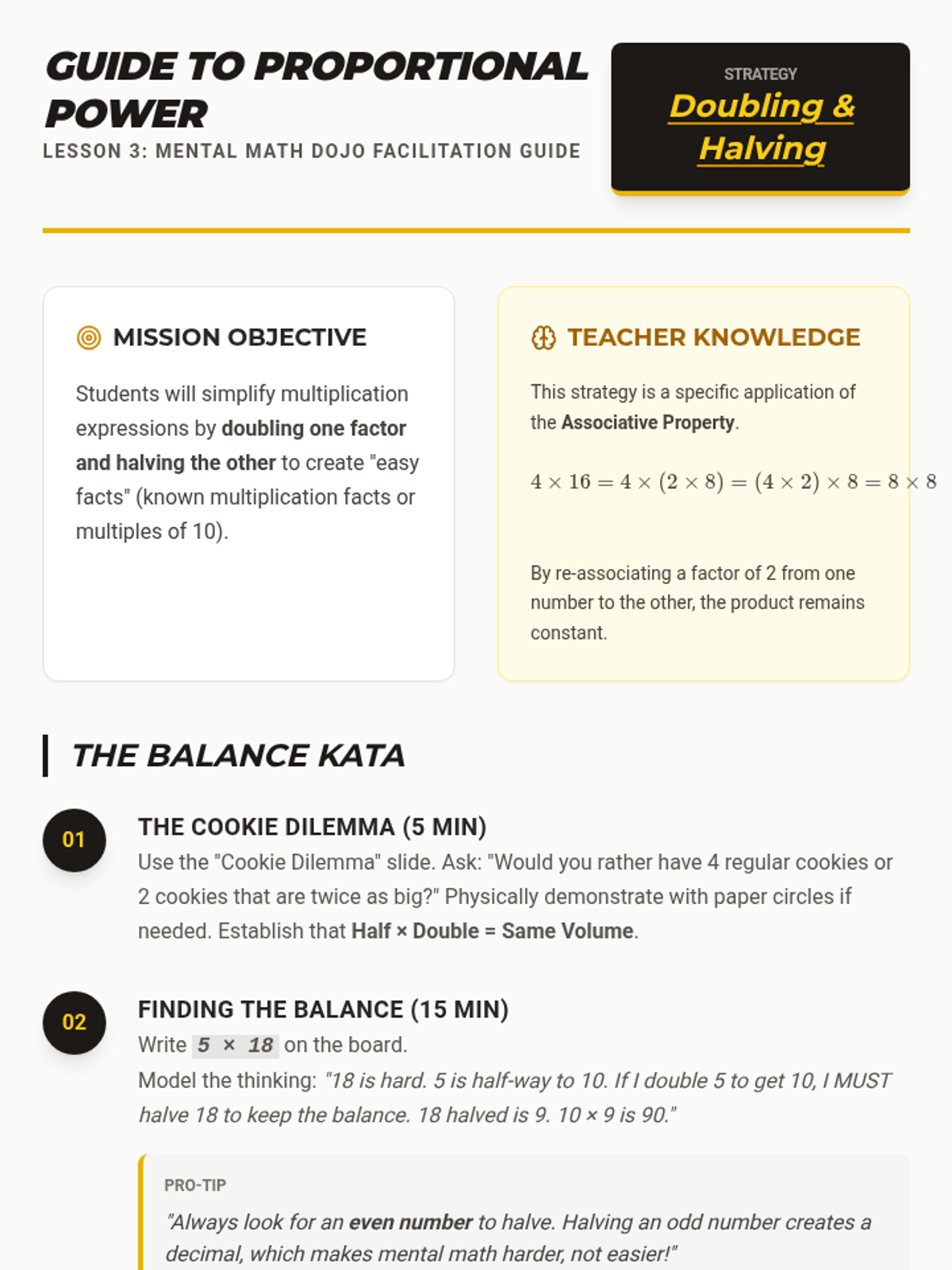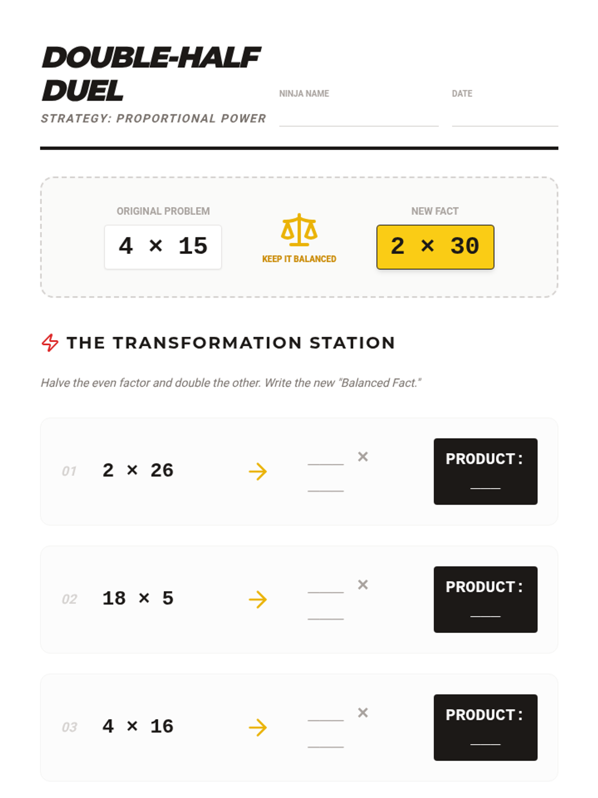 A 4th-grade math sequence focused on developing mental math fluency through the strategic application of multiplication properties, featuring game-based learning and 'Number Ninja' themes.