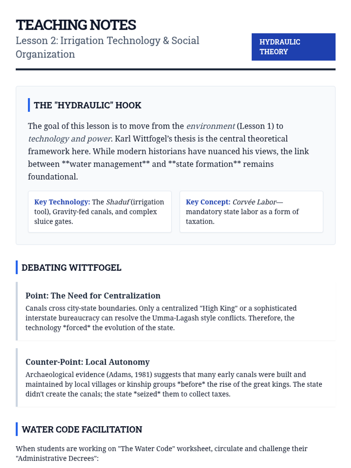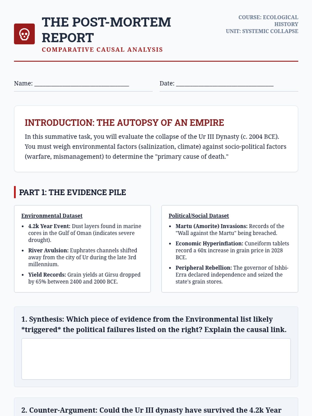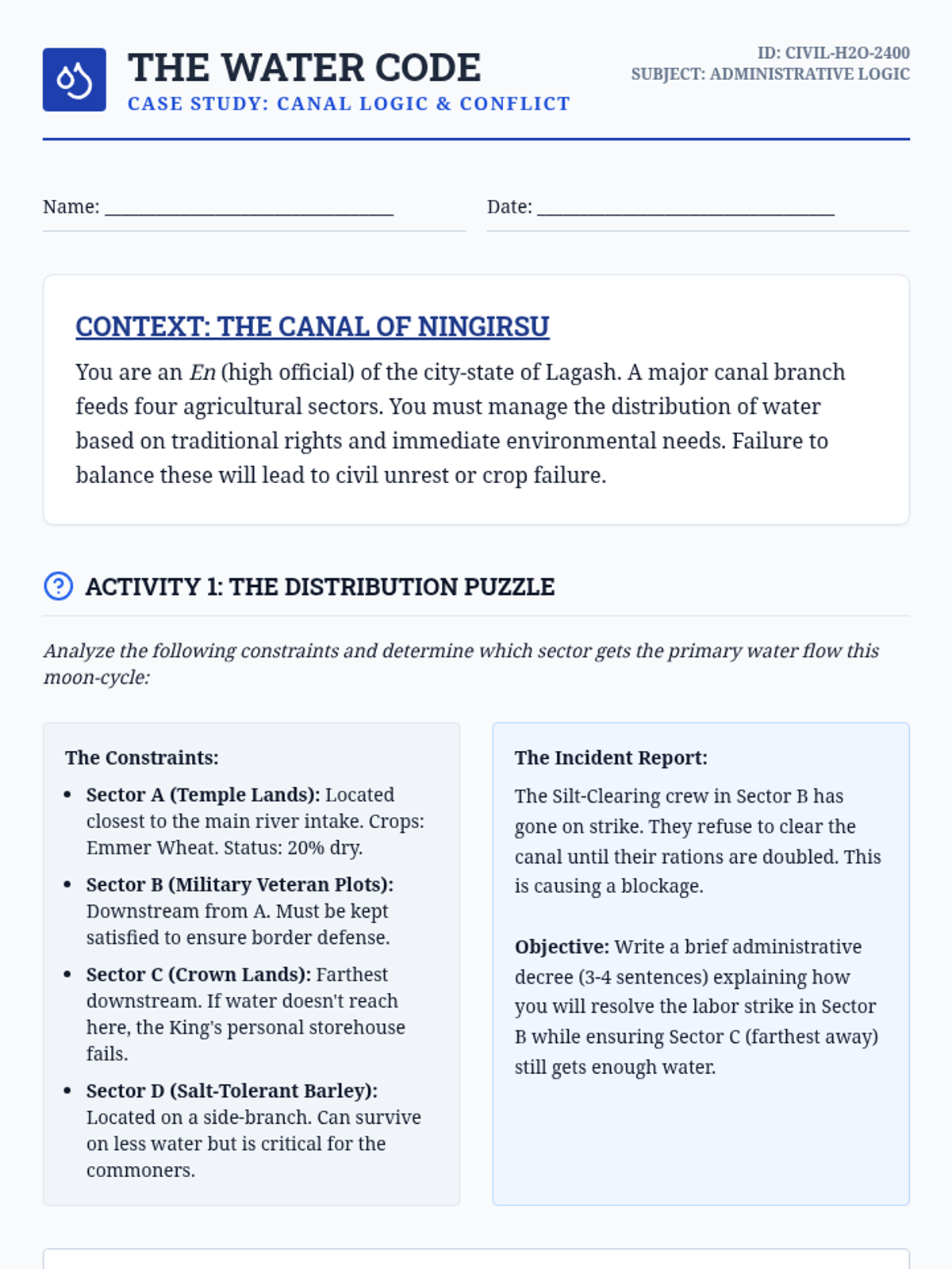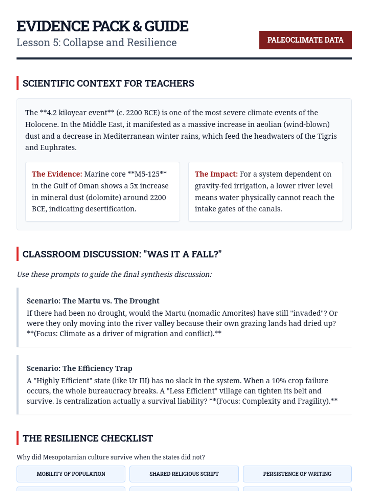 An environmental history sequence examining how the Tigris-Euphrates hydrology shaped Mesopotamian social structures, technology, and eventual ecological decline. Students will analyze the relationship between irrigation, political centralization, and ecological sustainability.