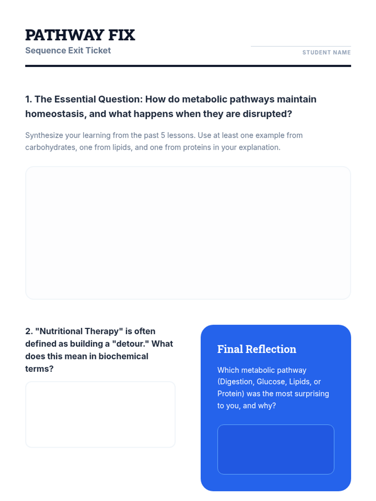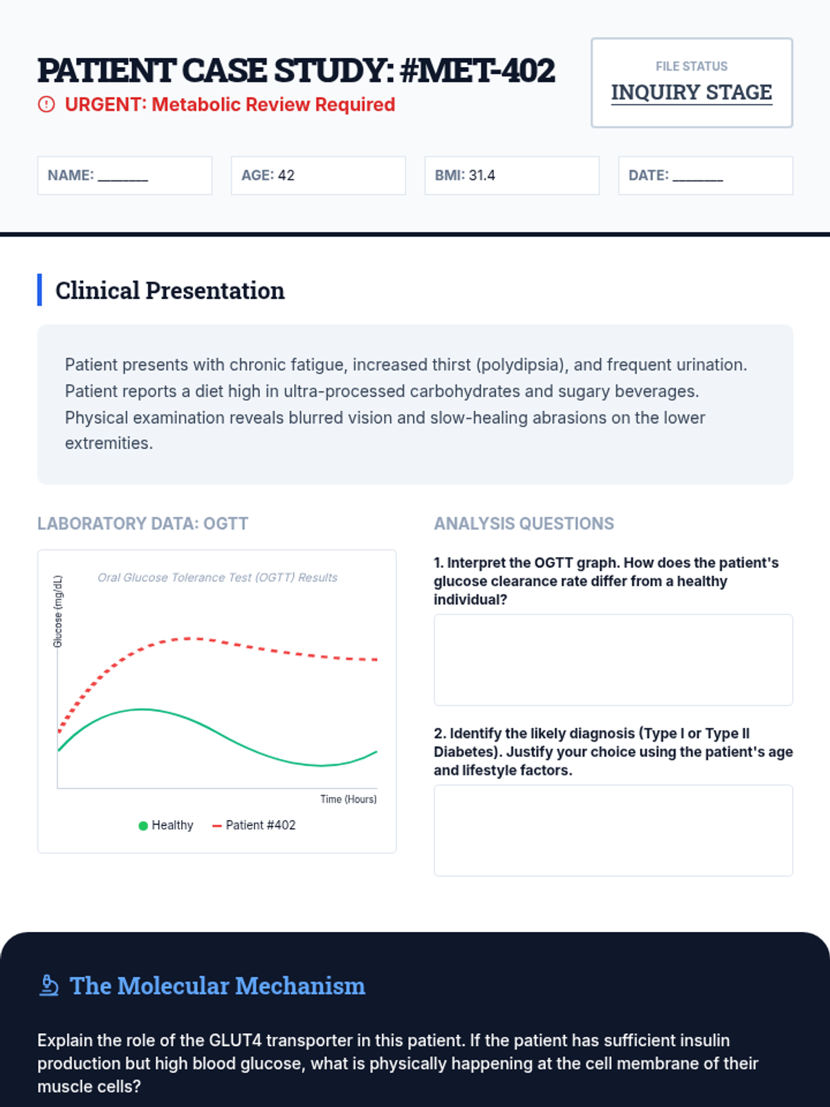 A 12th-grade biology unit exploring the metabolic pathways of carbohydrates, lipids, and proteins, connecting molecular structure to human health, nutrition, and disease management through case studies and biochemical analysis.