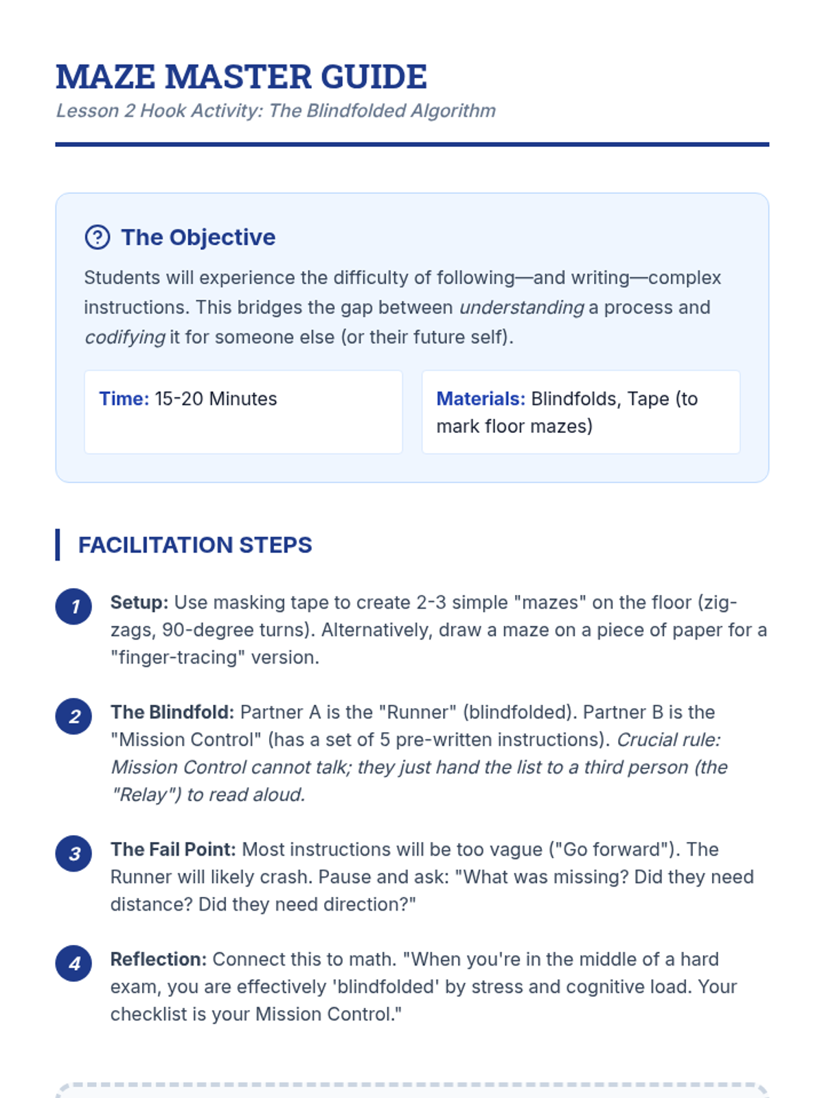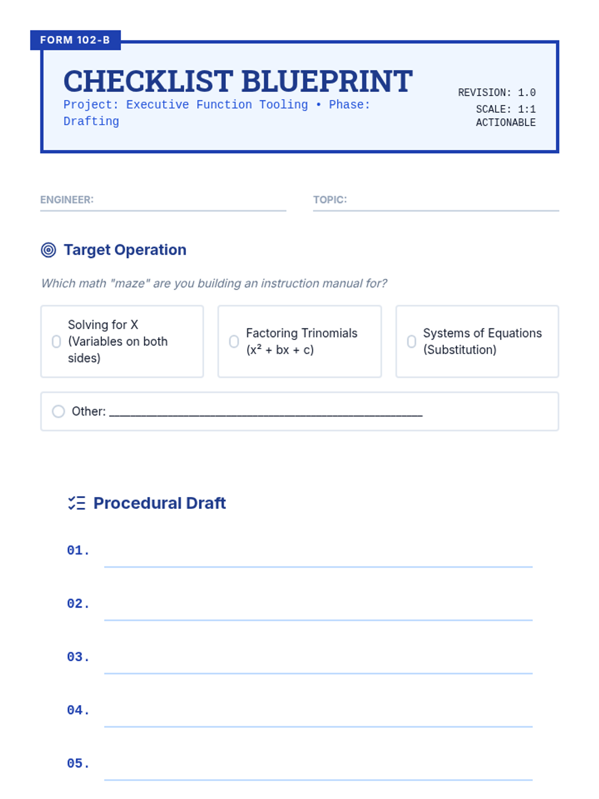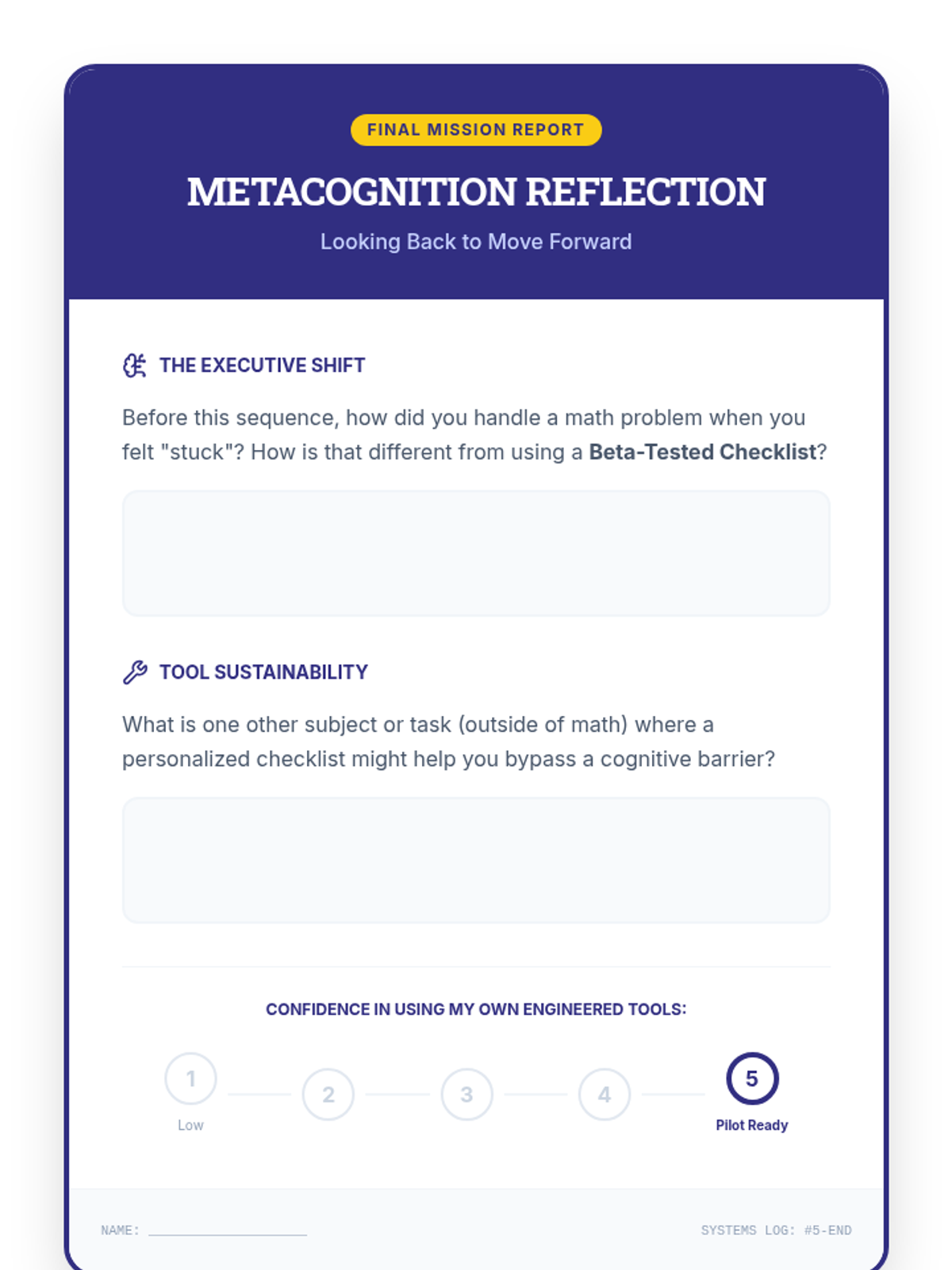 This sequence empowers students to create personalized, metacognitive checklists for multi-step math problems. Students move from reverse-engineering solved problems to drafting, testing, and digitizing their own 'cheat sheets' to overcome executive function barriers.