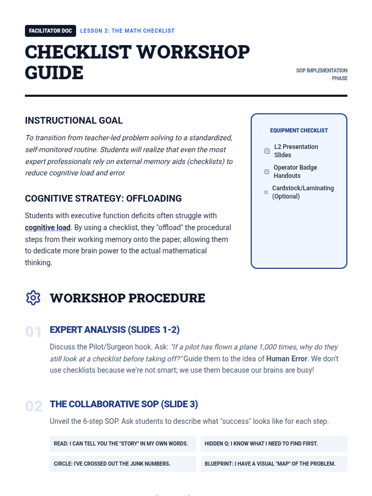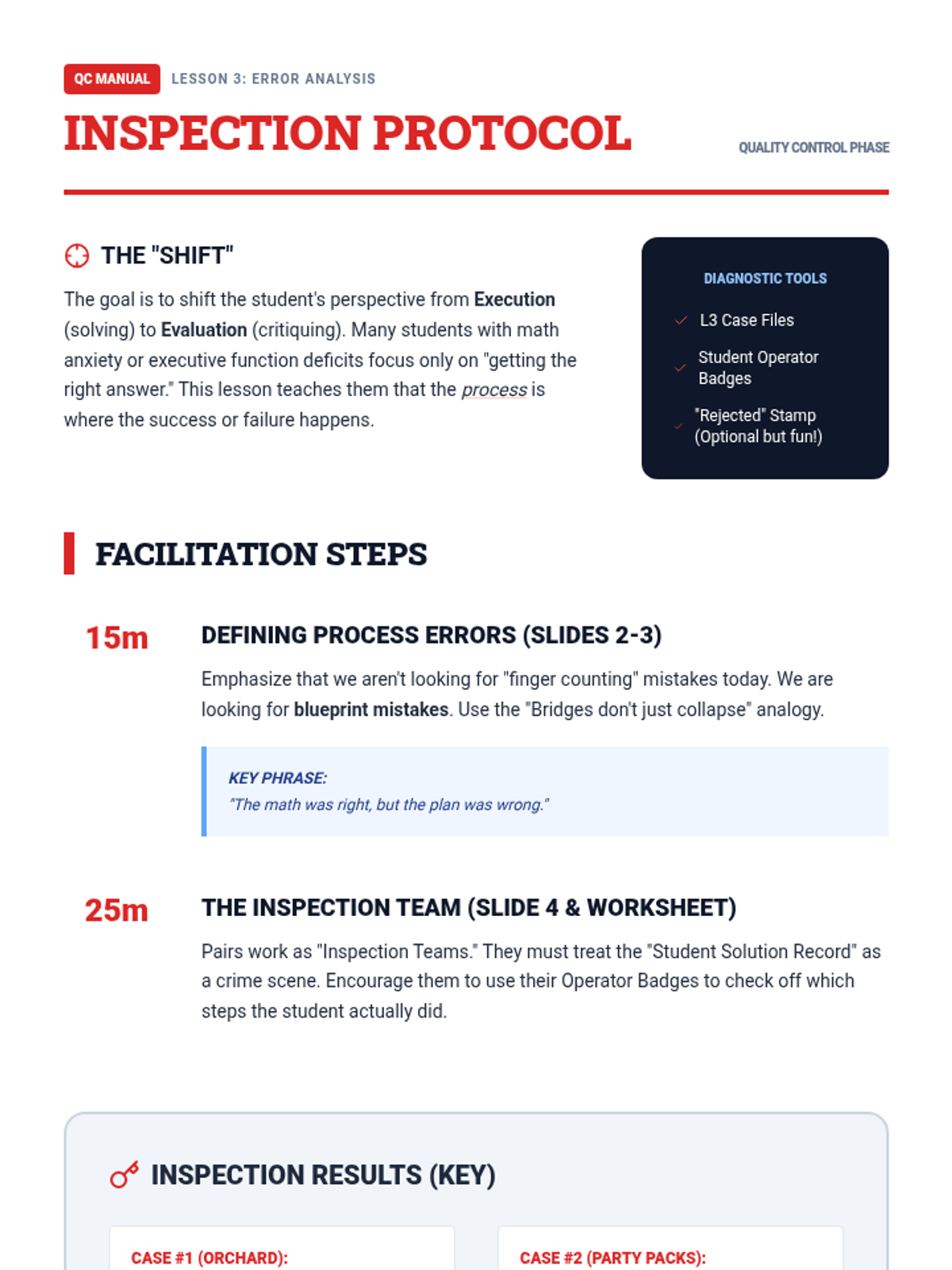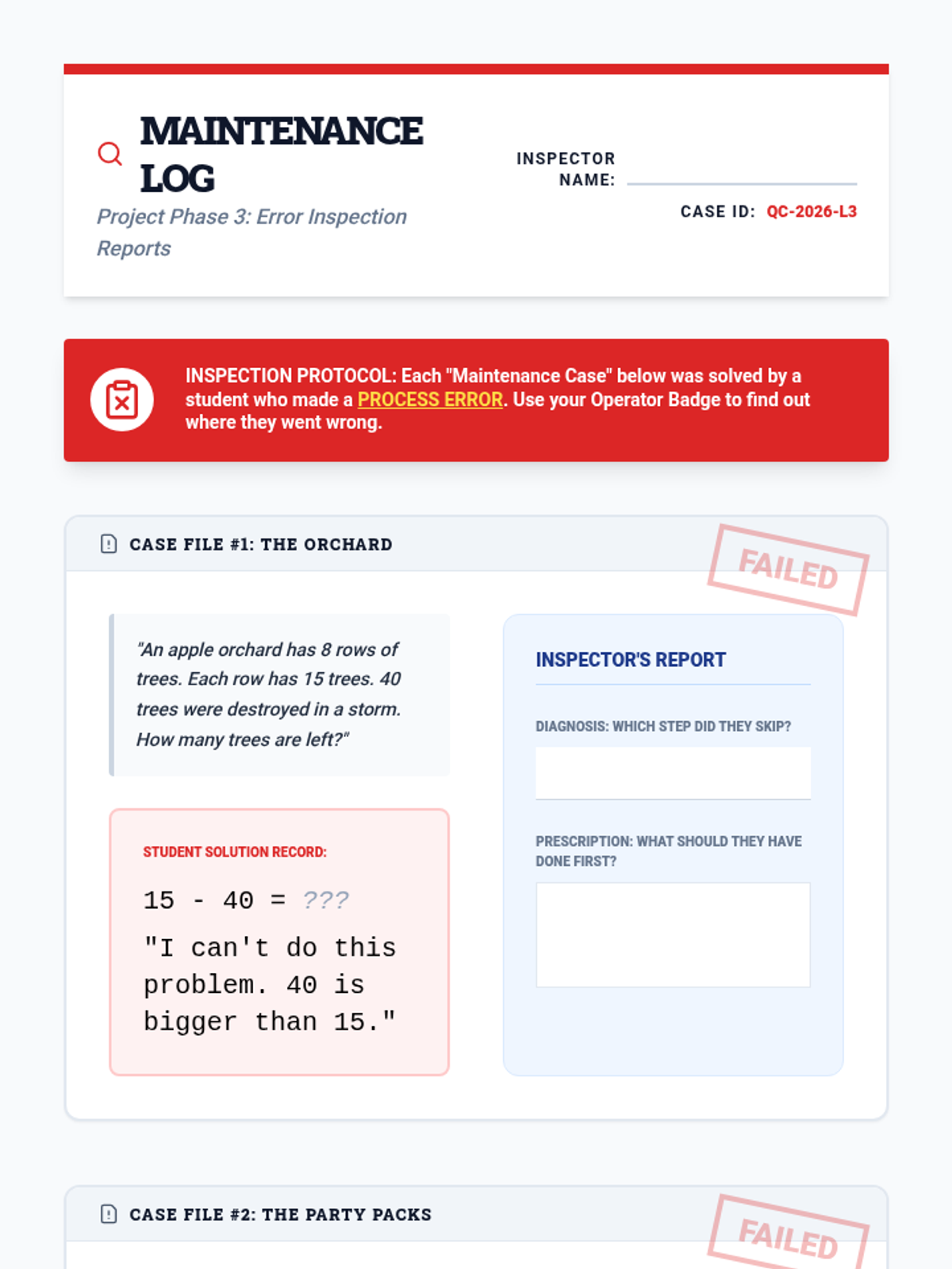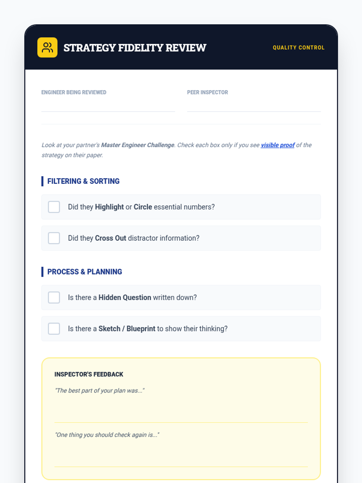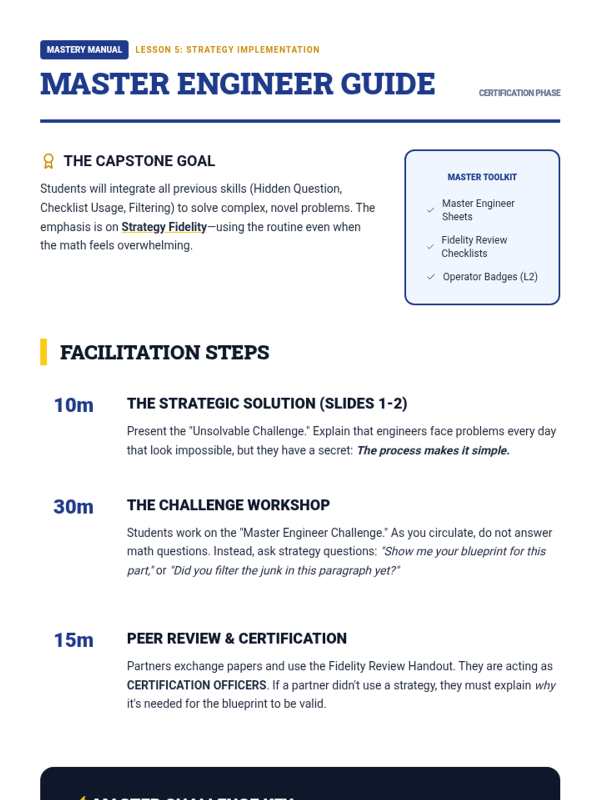 A sequence for 4th-grade students focusing on metacognitive strategies for breaking down multi-step math problems. Students learn to identify hidden questions, create procedural checklists, conduct error analysis, and filter out irrelevant information using an 'Engineer's Blueprint' theme.