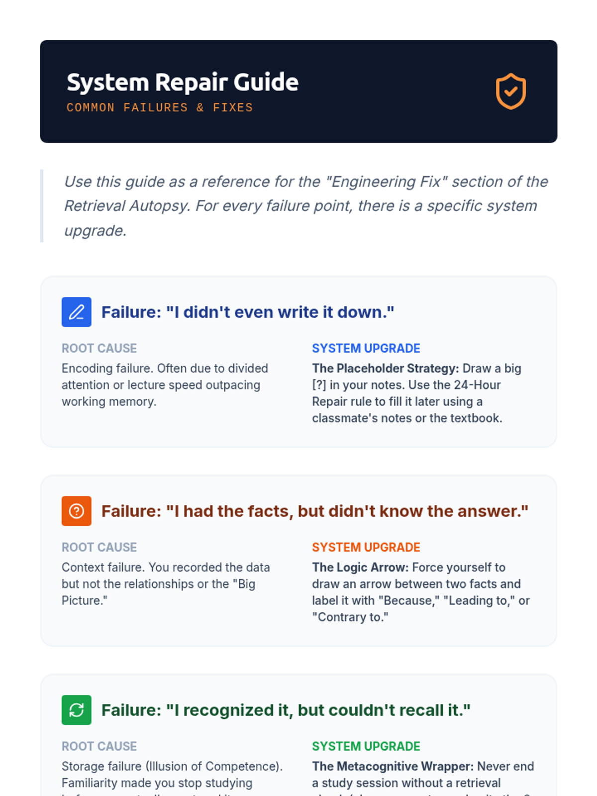 A metacognitive sequence for 11th-grade students focusing on auditing, repairing, and refining note-taking systems to support working memory. Students move from peer analysis to root-cause failure analysis to build a robust personal information management system.