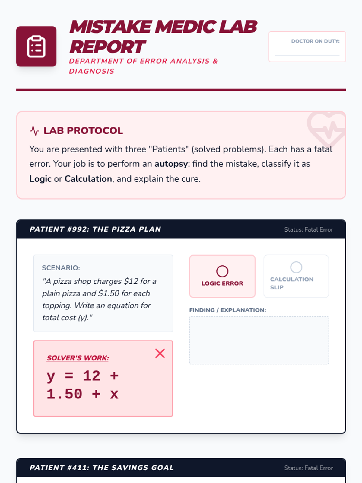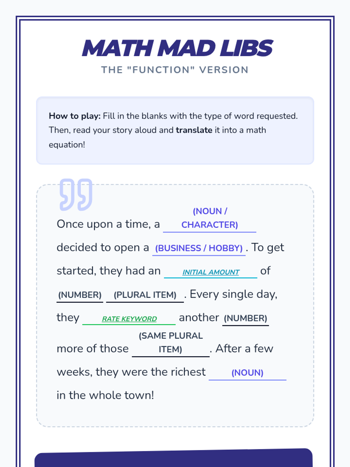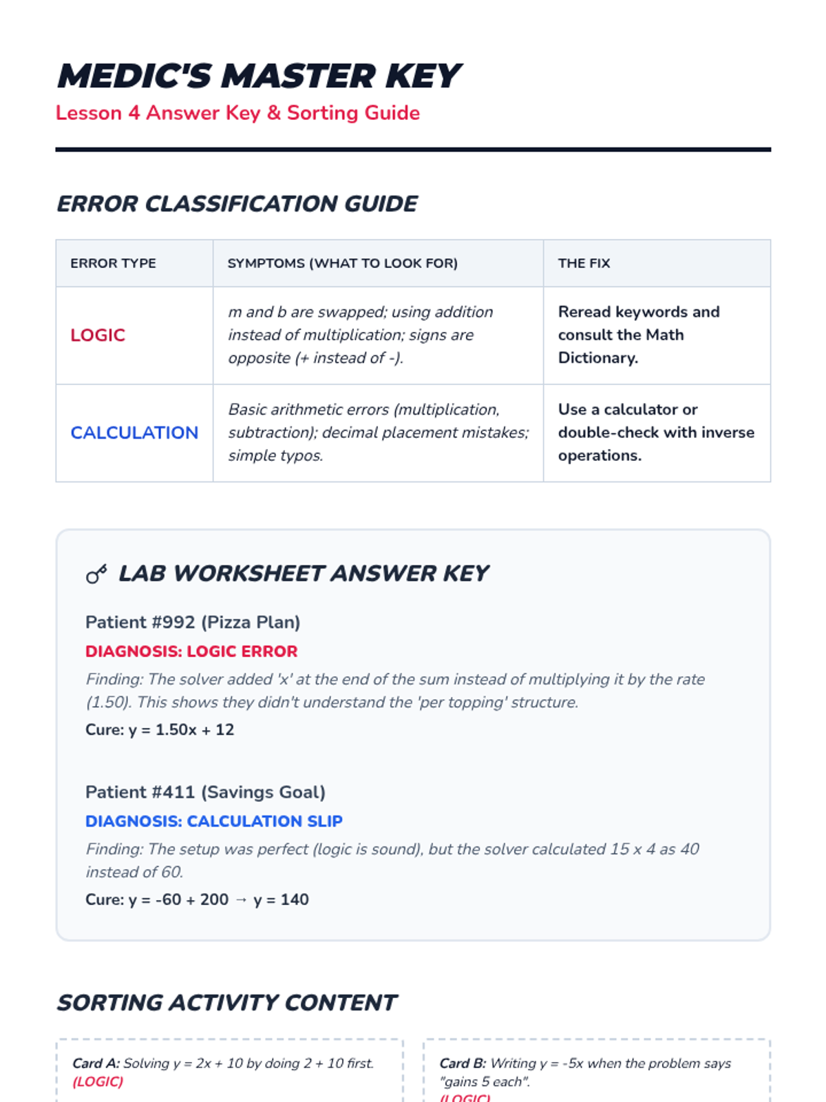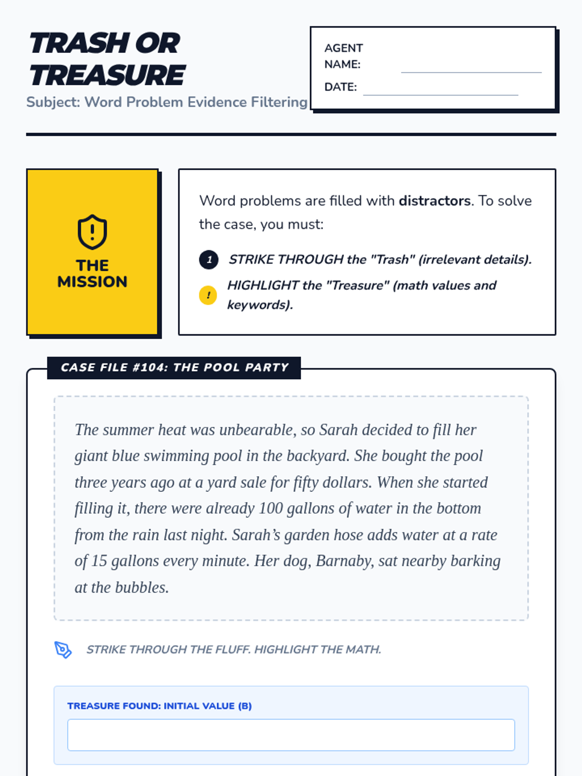 A 5-lesson sequence for 8th-grade special education students focused on metacognitive strategies for breaking down complex function word problems. Students learn to filter information, translate keywords, use think-alouds, and categorize errors to build a personalized troubleshooting guide.