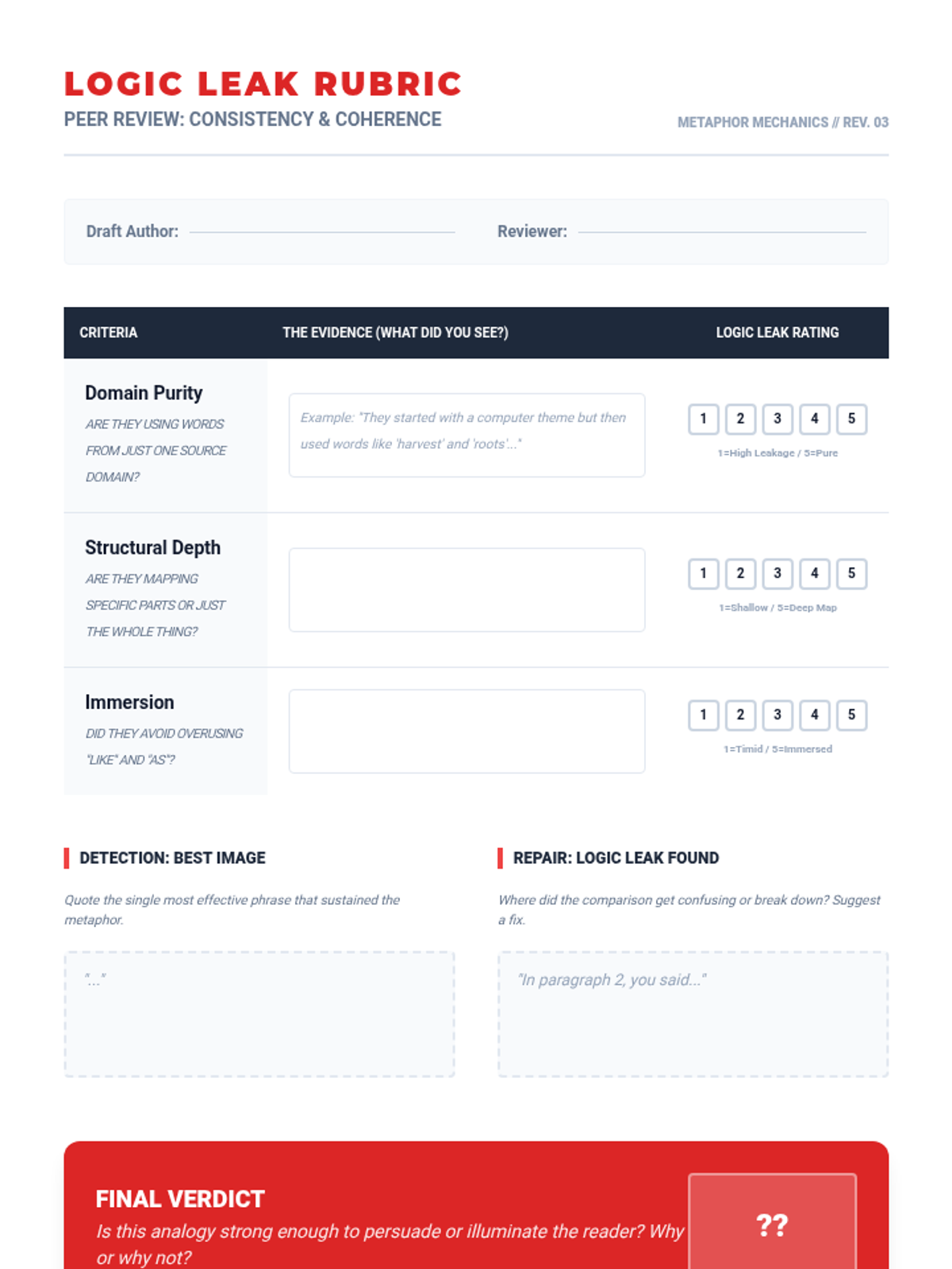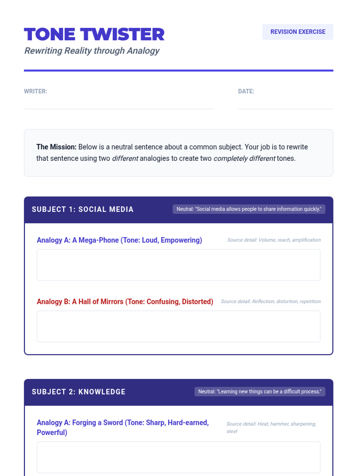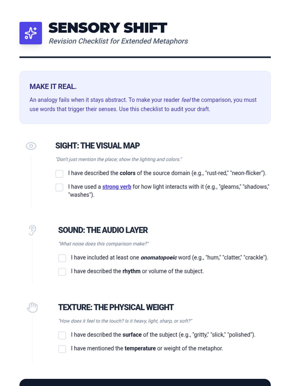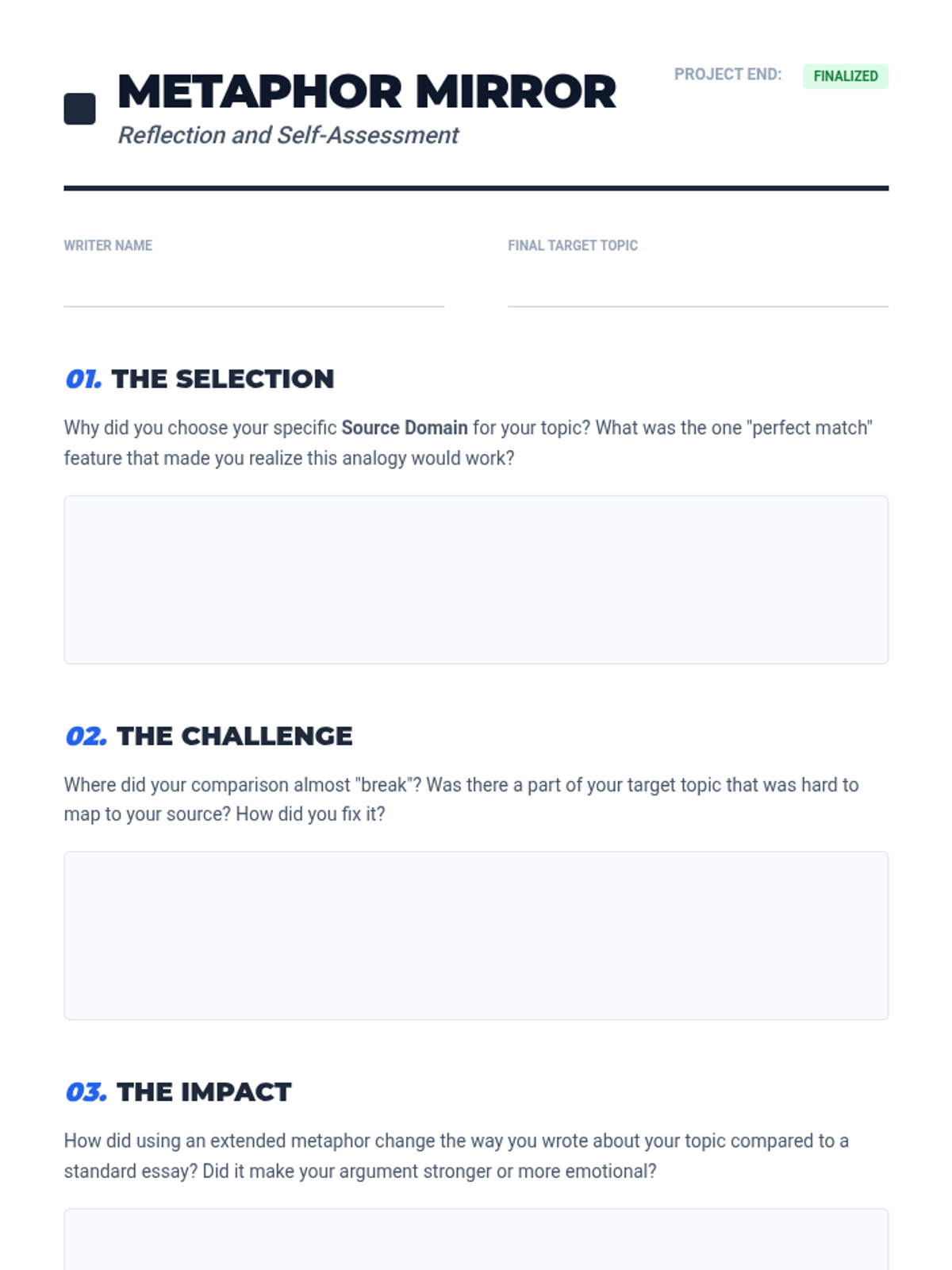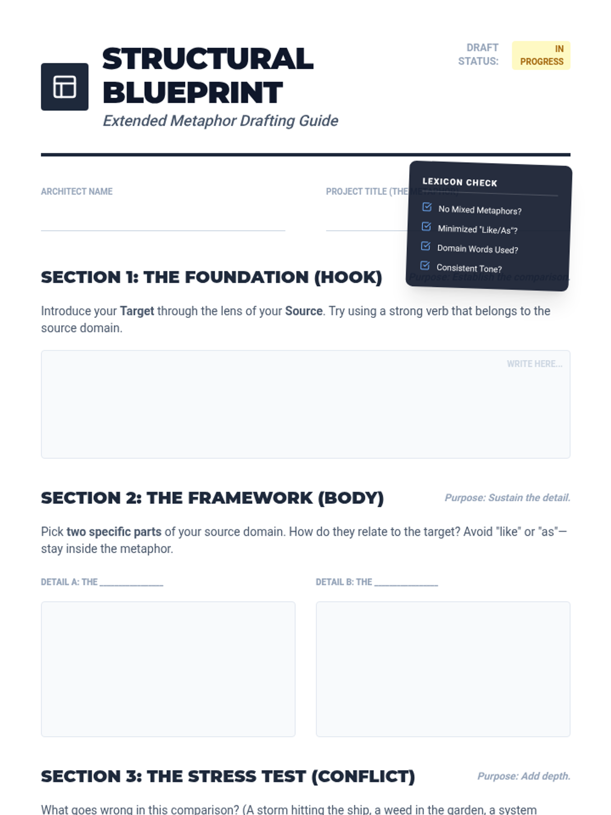 A project-based writing sequence where students master analogies and extended metaphors. They transition from simple comparisons to sustaining complex mappings across entire pieces of literature and their own writing.