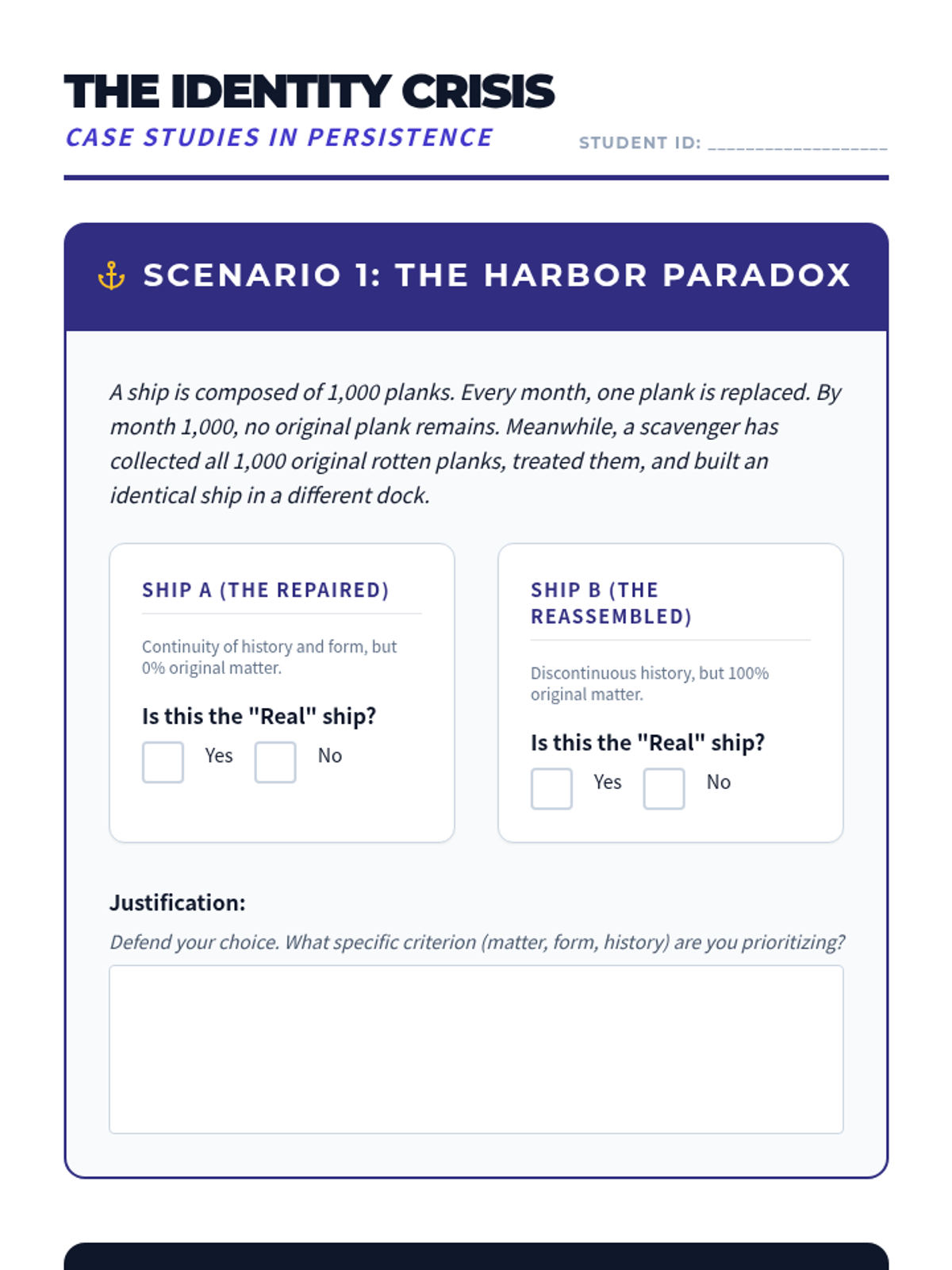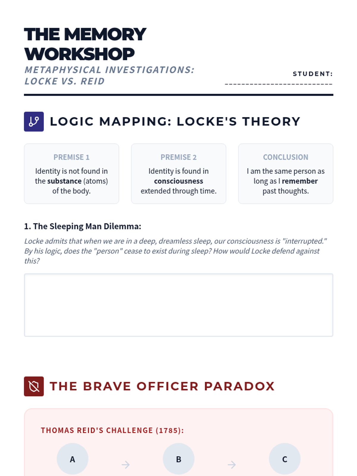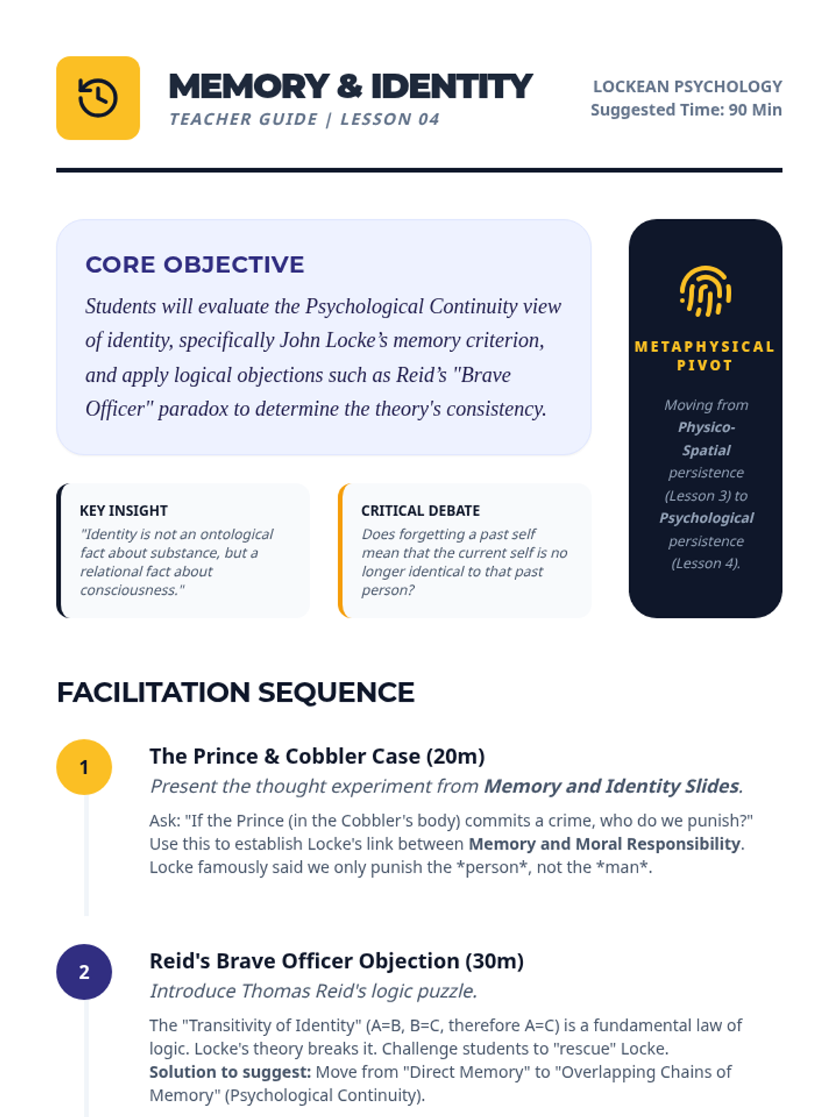 A rigorous undergraduate exploration into the metaphysical foundations of mind and identity. This sequence covers the mind-body problem, the nature of consciousness, and the persistent question of what constitutes personal identity over time.