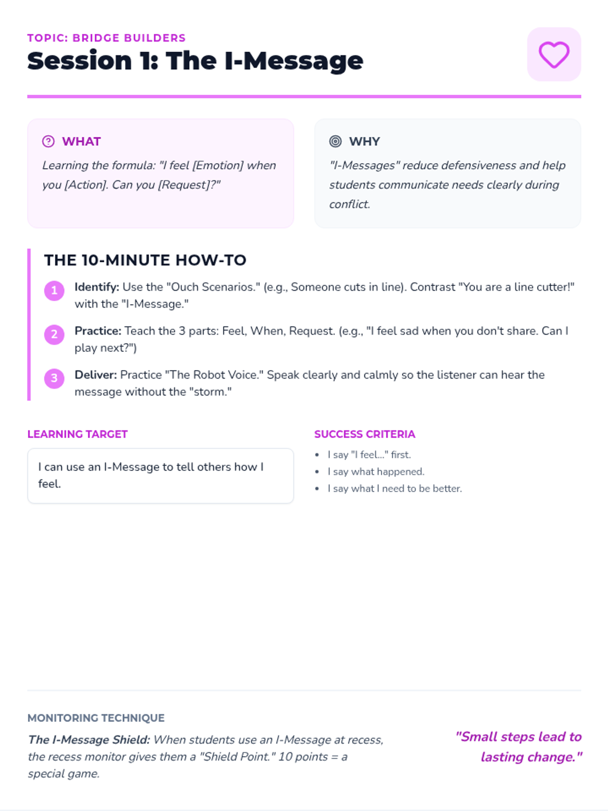 A 6-week social-emotional learning curriculum for 1st graders focused on boundaries, self-control, friendship, and following rules.