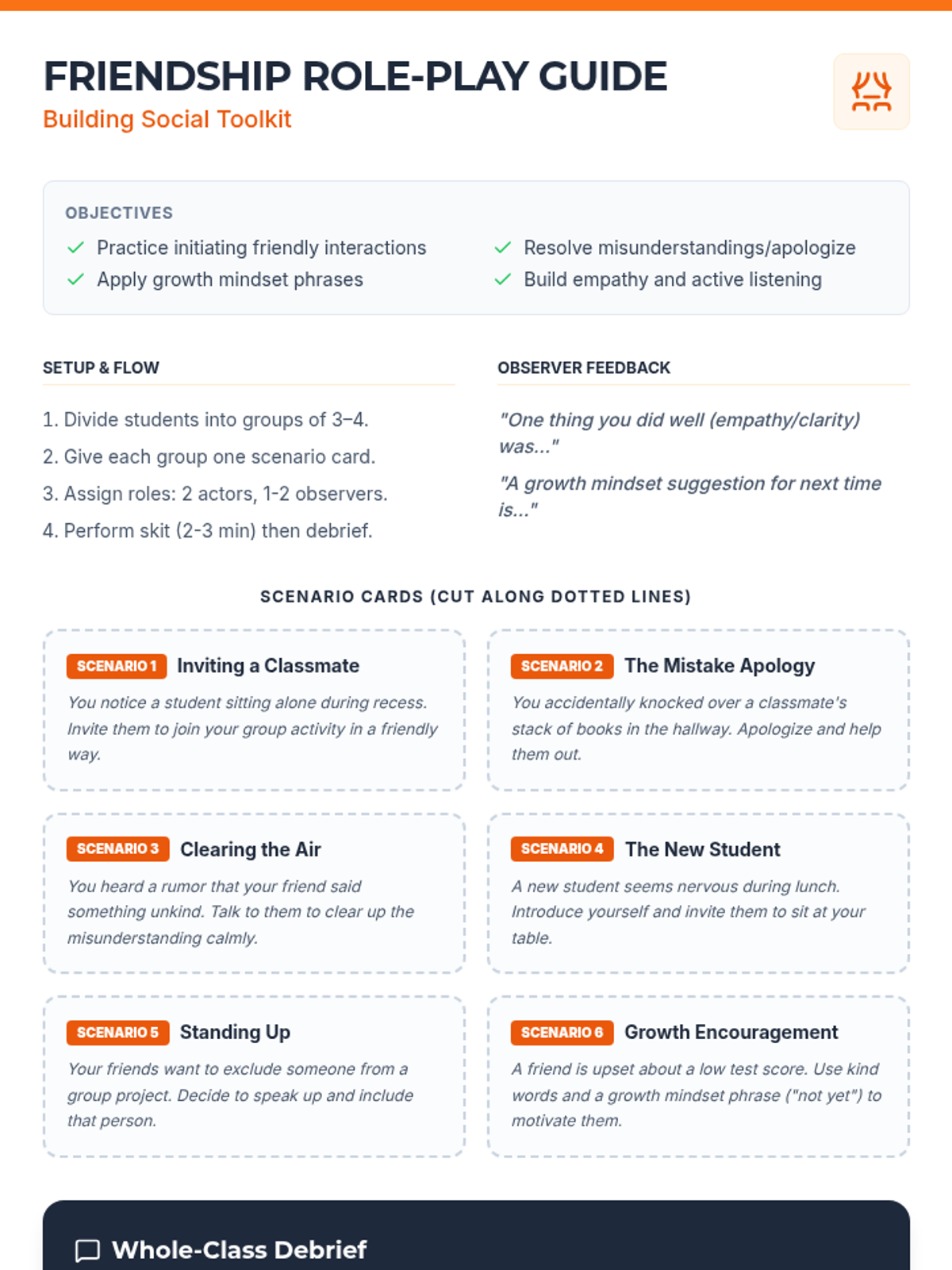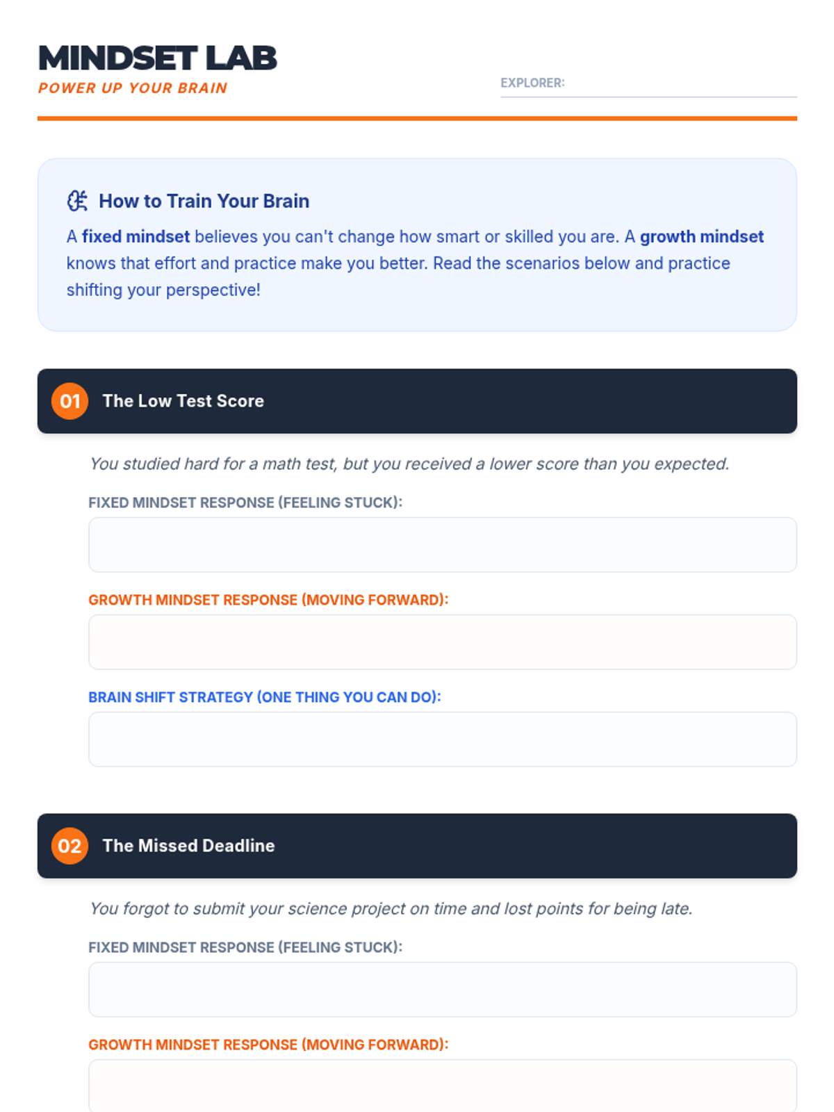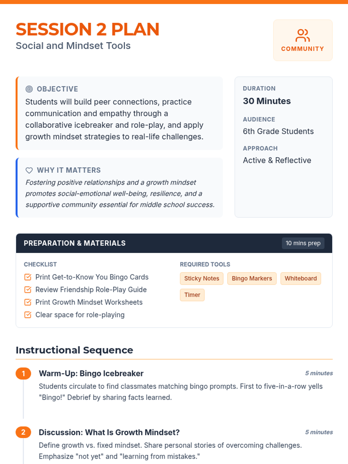 A 12-lesson social-emotional learning sequence themed around 'Mind Mechanics,' where students become 'mechanics' of their own minds to develop self-awareness, growth mindset, and social reasoning. Each lesson includes a facilitator script, student workbook pages, and visual anchor charts.
