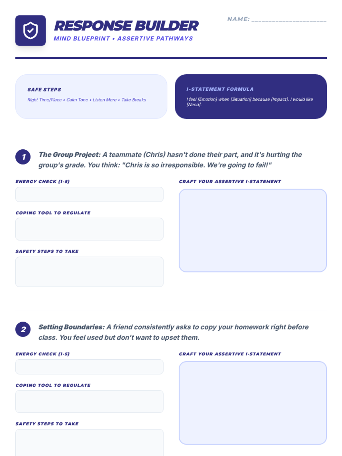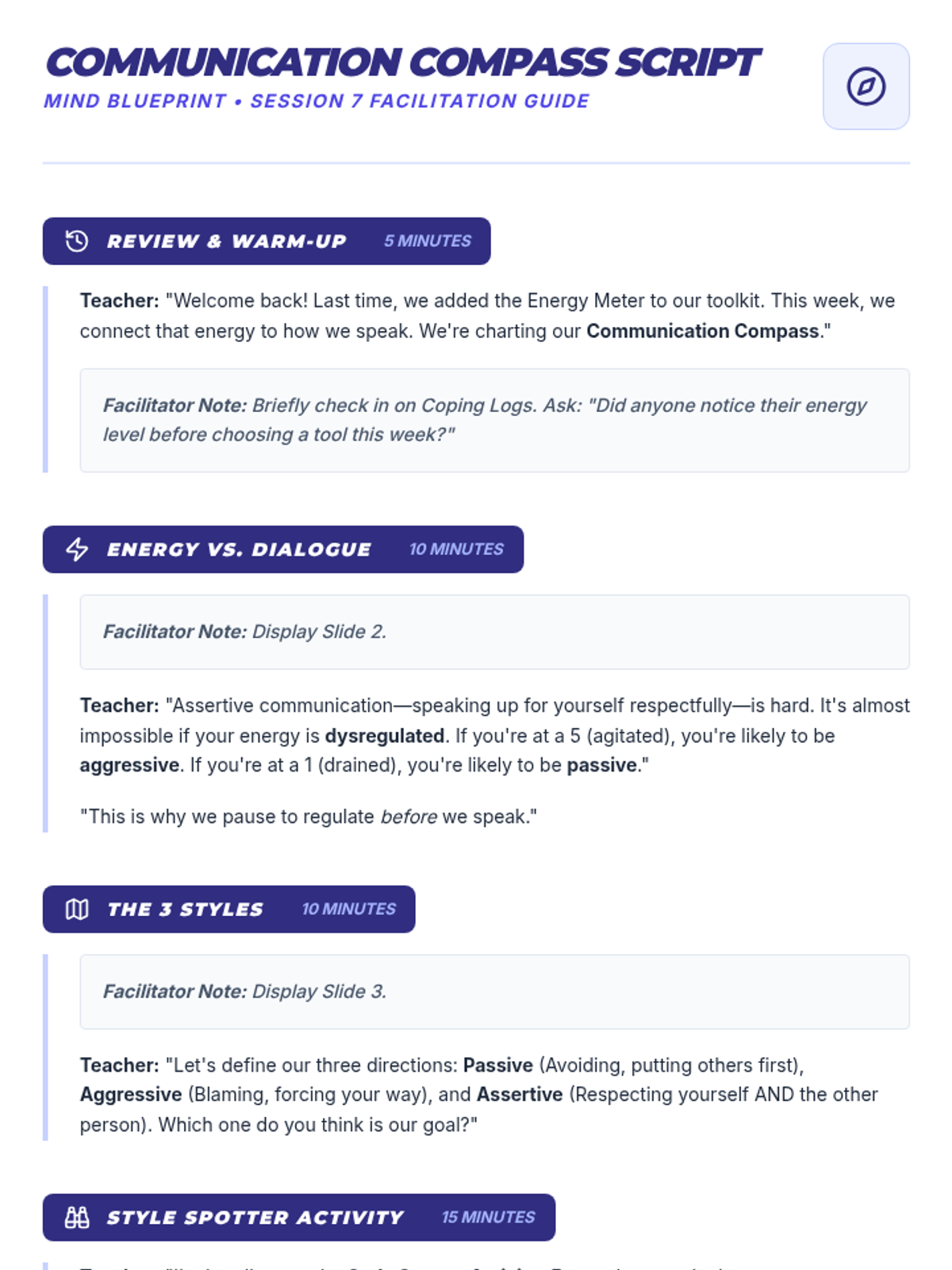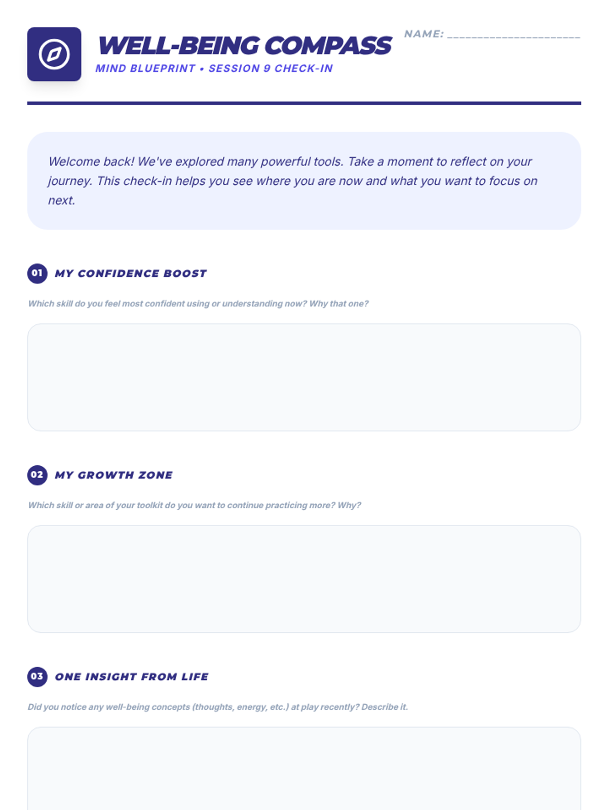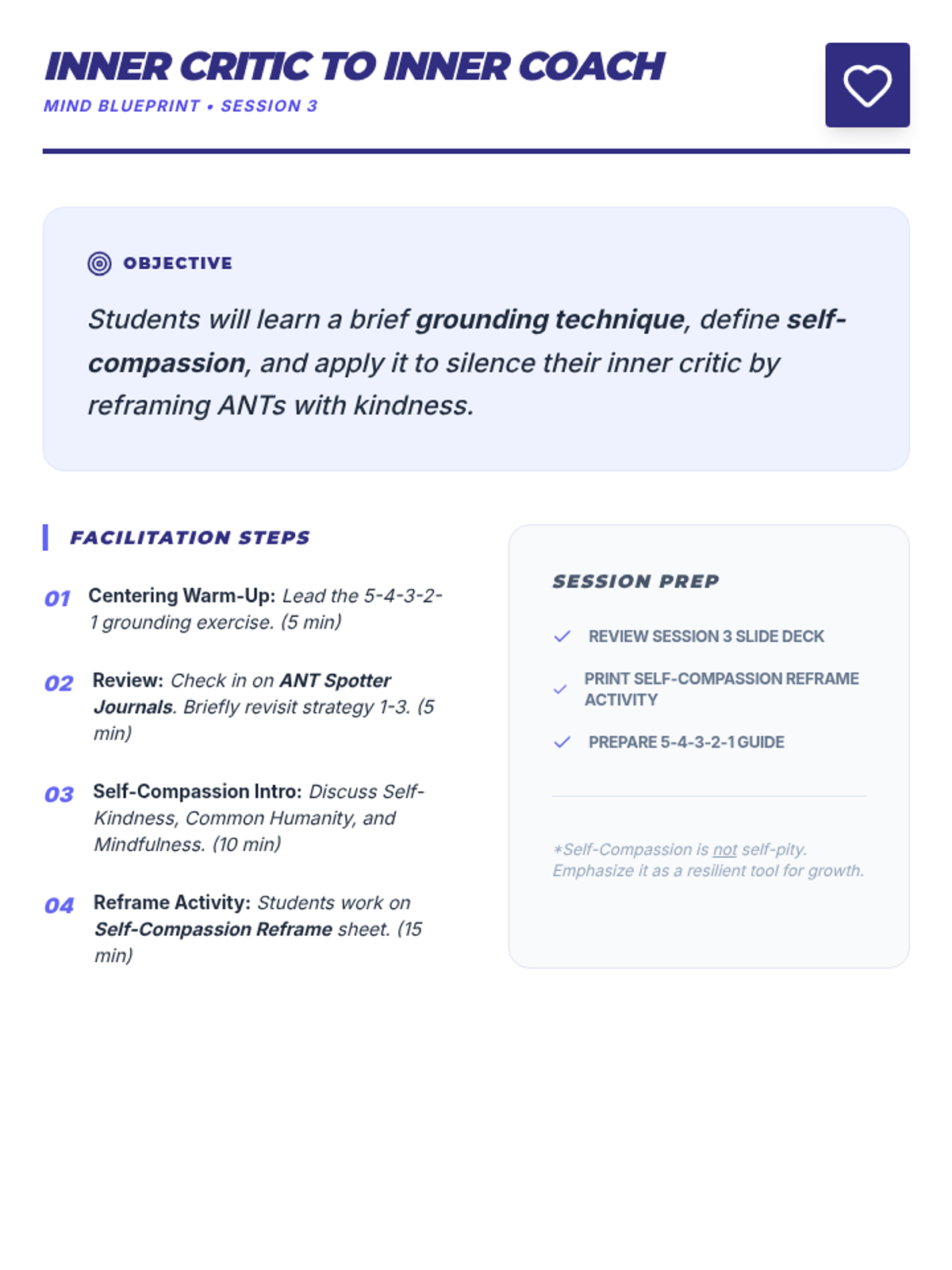 A comprehensive 9-session Tier 2 small group intervention for 10th-grade students, focusing on Cognitive Behavioral Therapy (CBT) principles, emotional regulation, coping strategies, and assertive communication. Students build a "Well-being Toolkit" to navigate life's challenges with resilience.