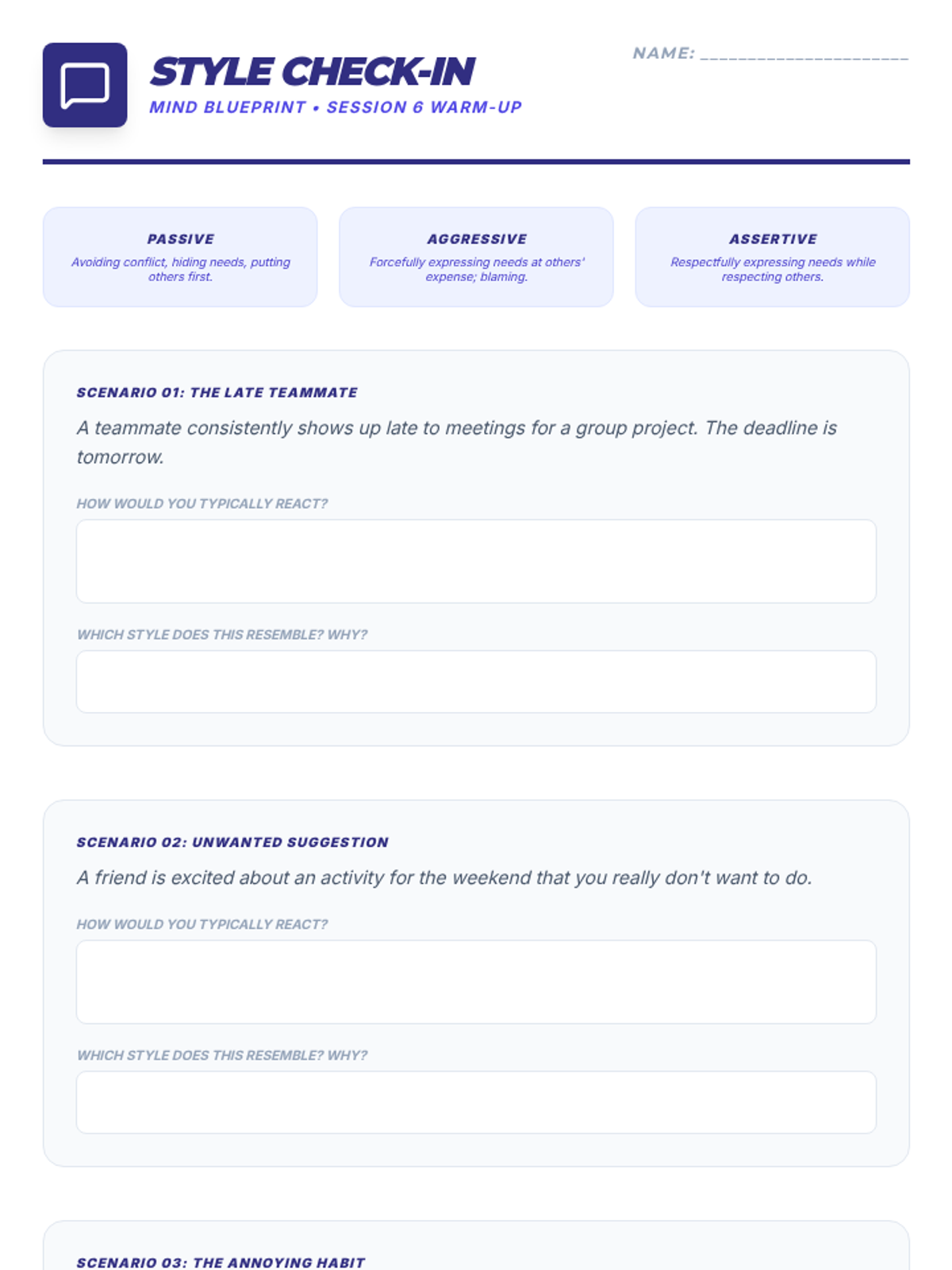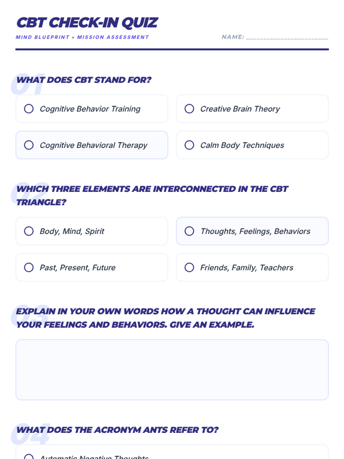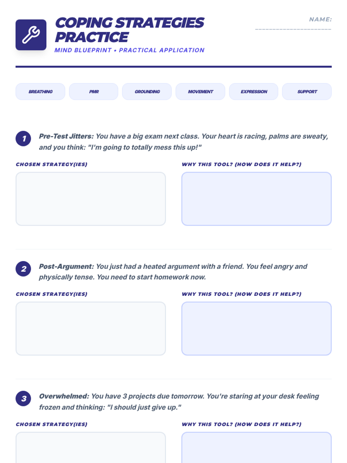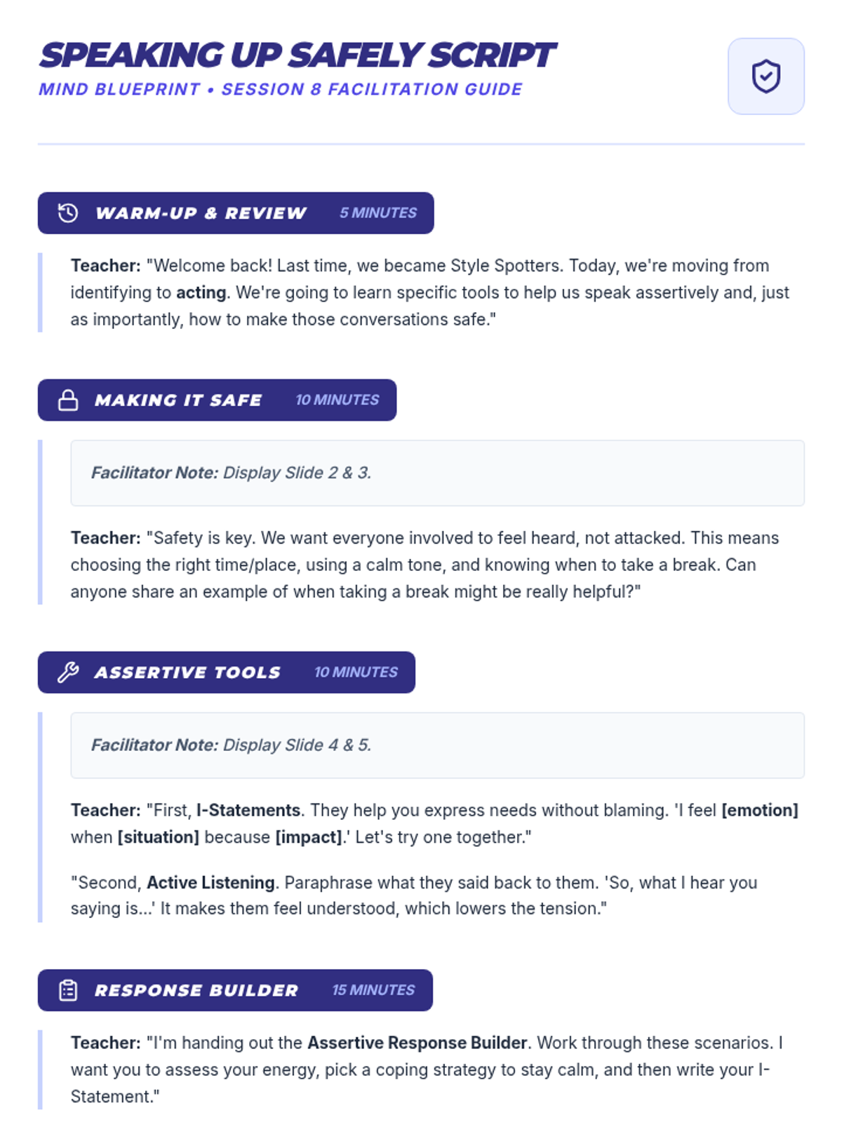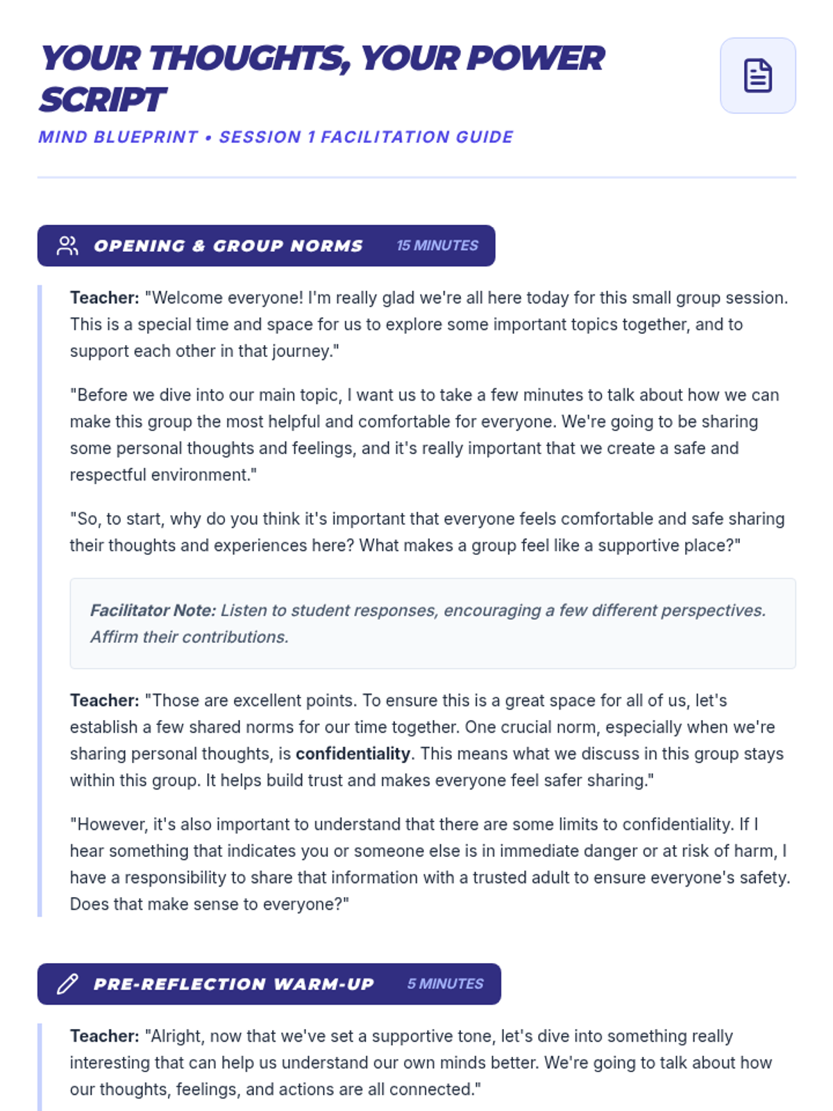 A comprehensive 9-session Tier 2 small group intervention for 10th-grade students, focusing on Cognitive Behavioral Therapy (CBT) principles, emotional regulation, coping strategies, and assertive communication. Students build a "Well-being Toolkit" to navigate life's challenges with resilience.