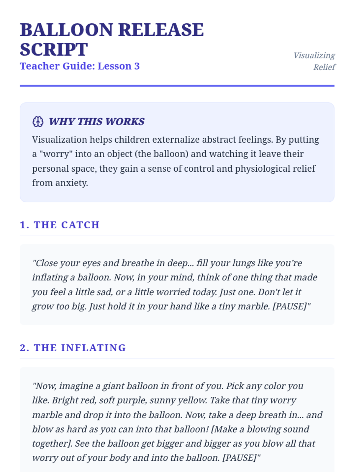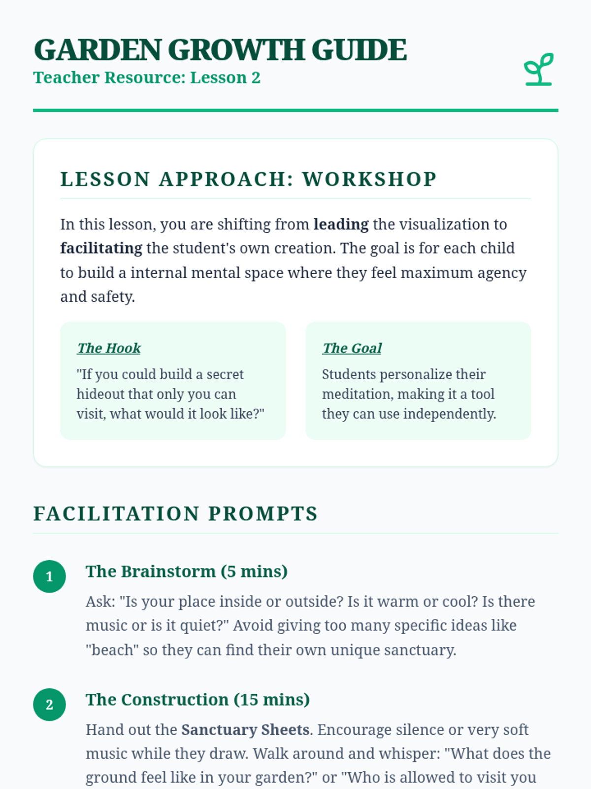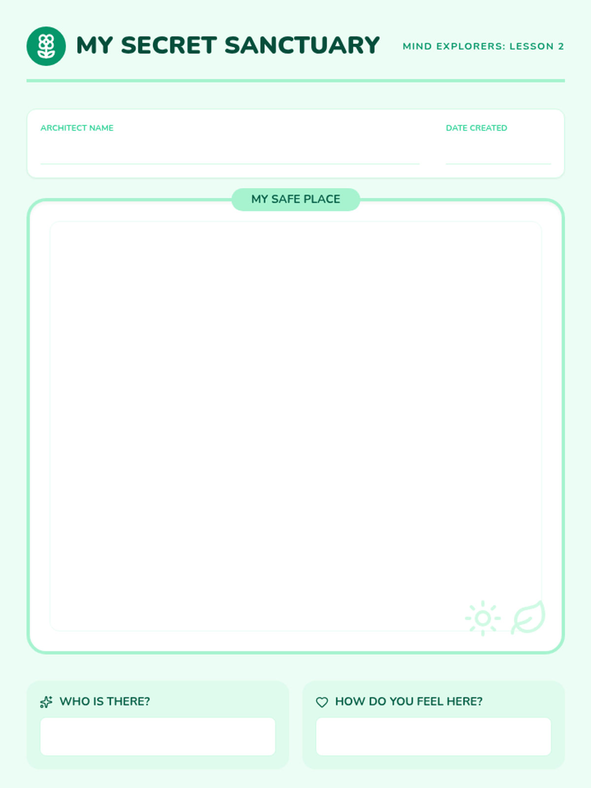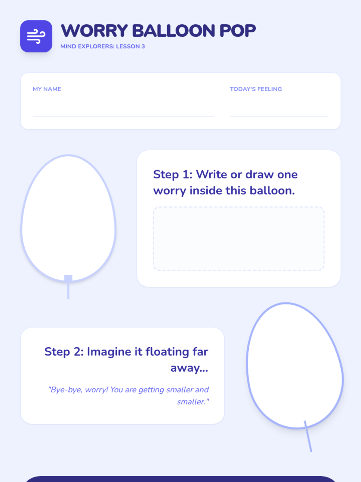 A series of 5 lessons for 1st graders focused on guided imagery and visualization. Students explore their imaginations to build mental safe spaces, release worries, and connect with their inner sense of calm.
