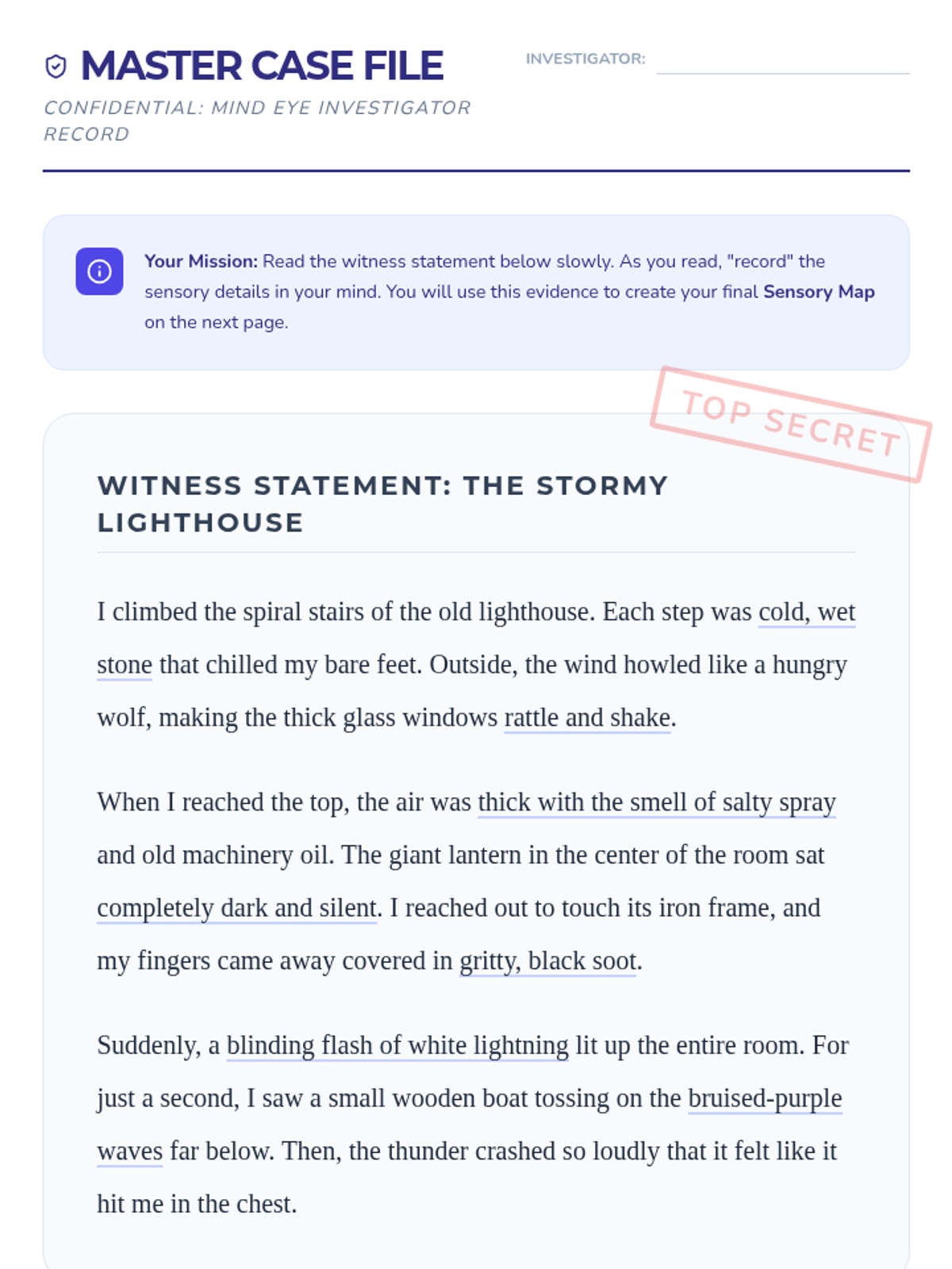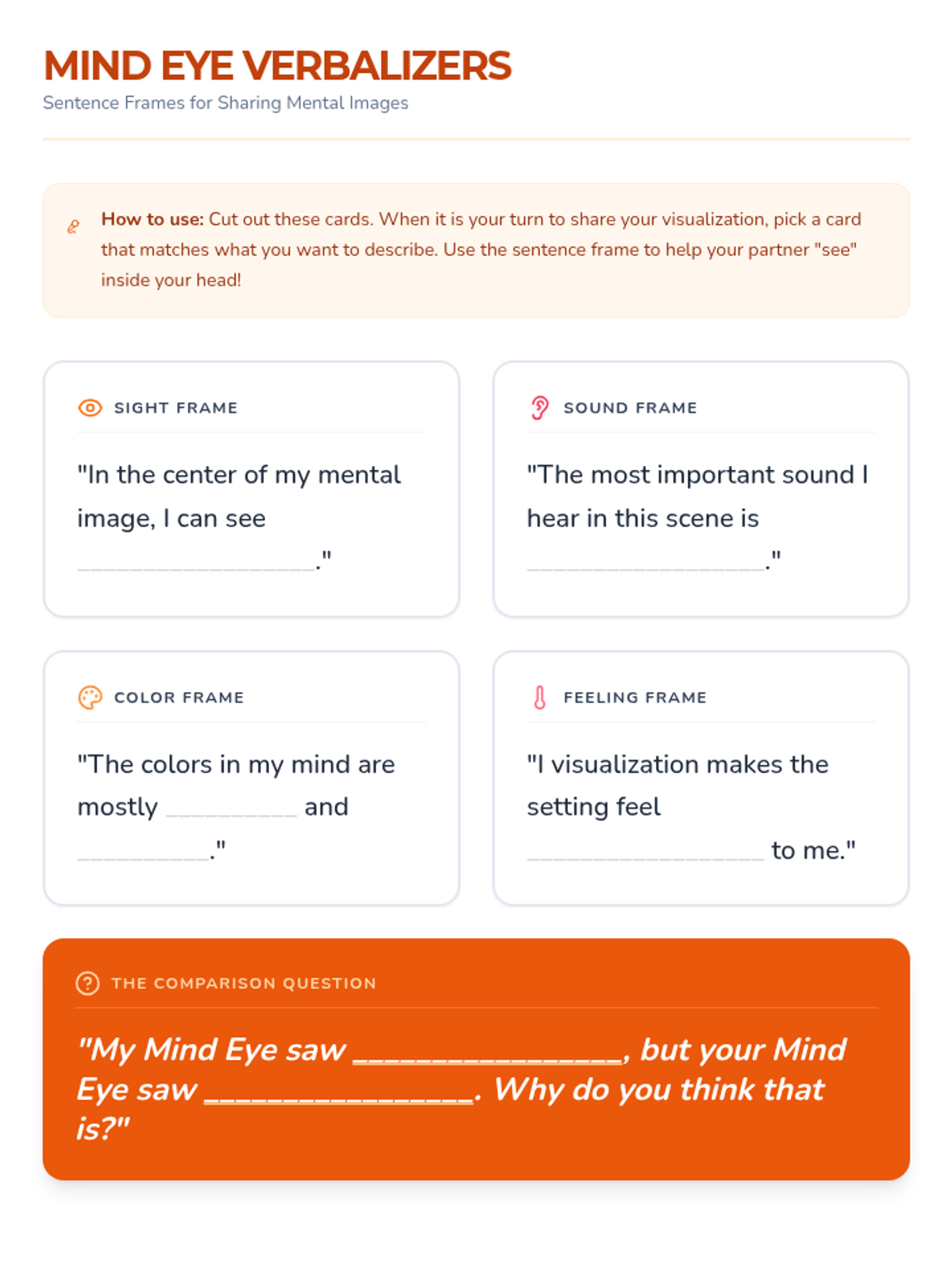 A 5-lesson sequence for 6th-grade students to master visualization skills. Students progress from identifying sensory language to synthesizing multiple sensory inputs to enhance reading comprehension.