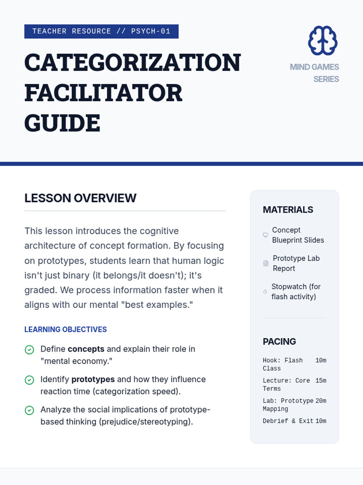 This sequence explores the mechanics of human thought, from how we categorize the world using concepts and prototypes to the mental shortcuts (heuristics) and systematic errors (biases) that define our decision-making. Students will engage in simulations and case studies to understand the tension between efficient thinking and logical accuracy.