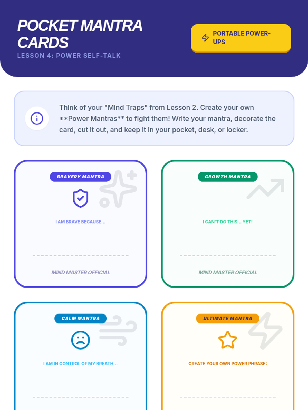 A 6-week small group curriculum for 4th-grade girls focused on developing positive self-talk, building self-esteem, and mastering growth mindset through creative activities and group discussion.