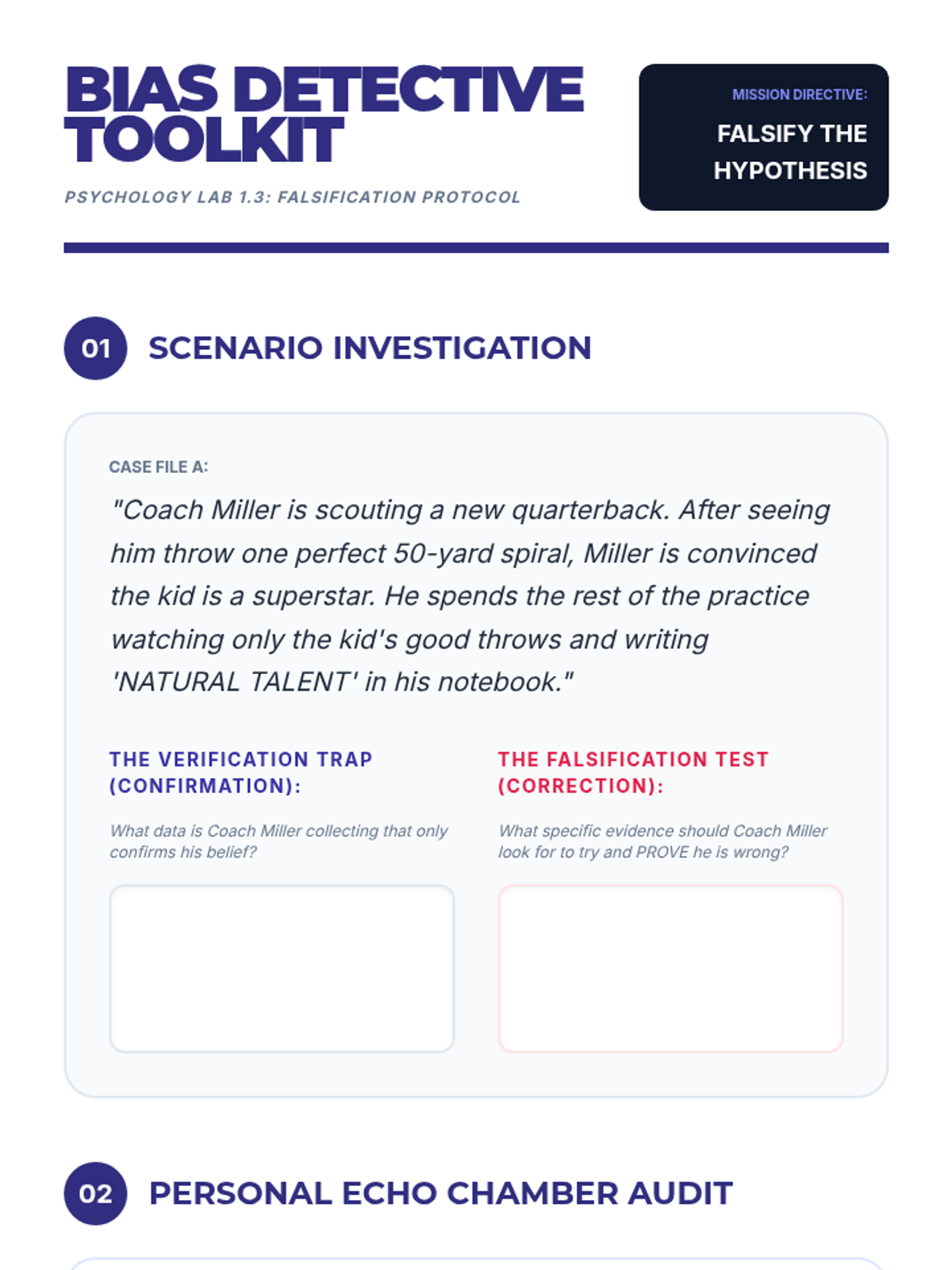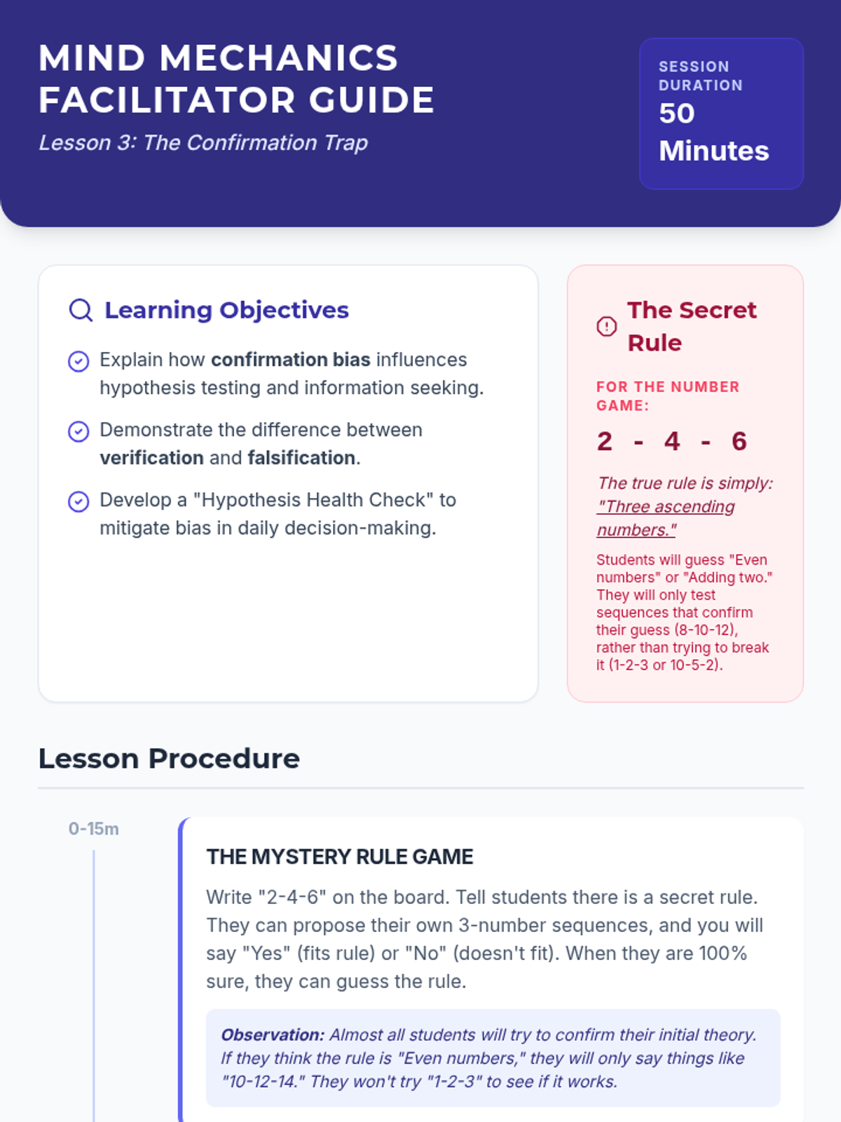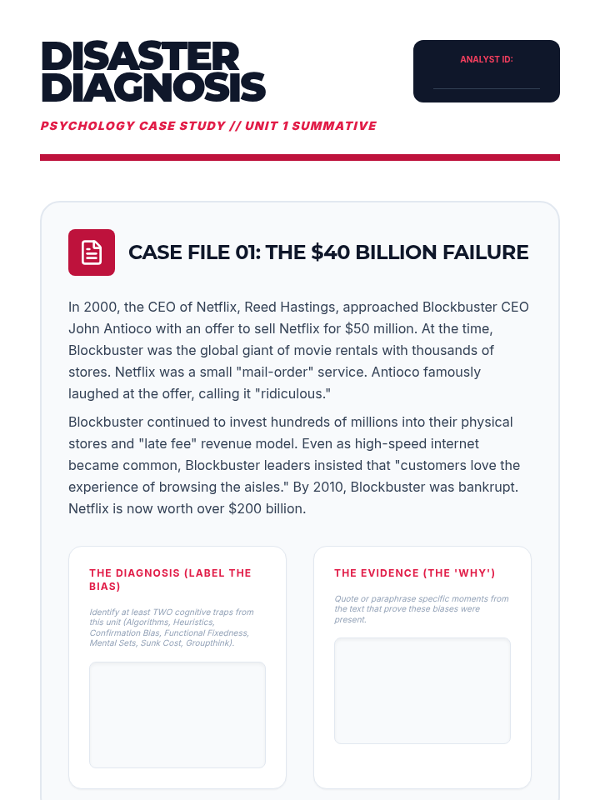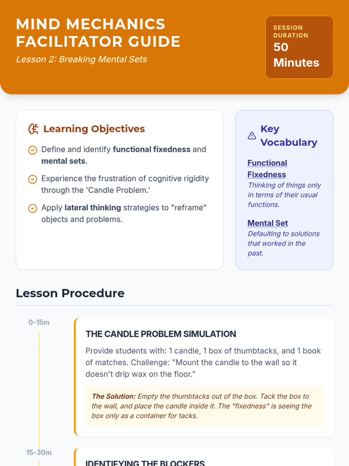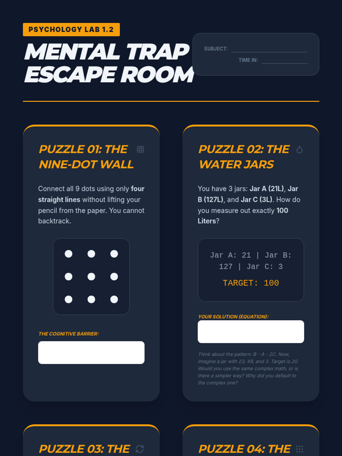 A 5-lesson unit for 9th-grade psychology exploring the mechanics of human thought, focusing on the differences between systematic problem-solving (algorithms) and mental shortcuts (heuristics), as well as identifying and overcoming cognitive biases and mental sets.