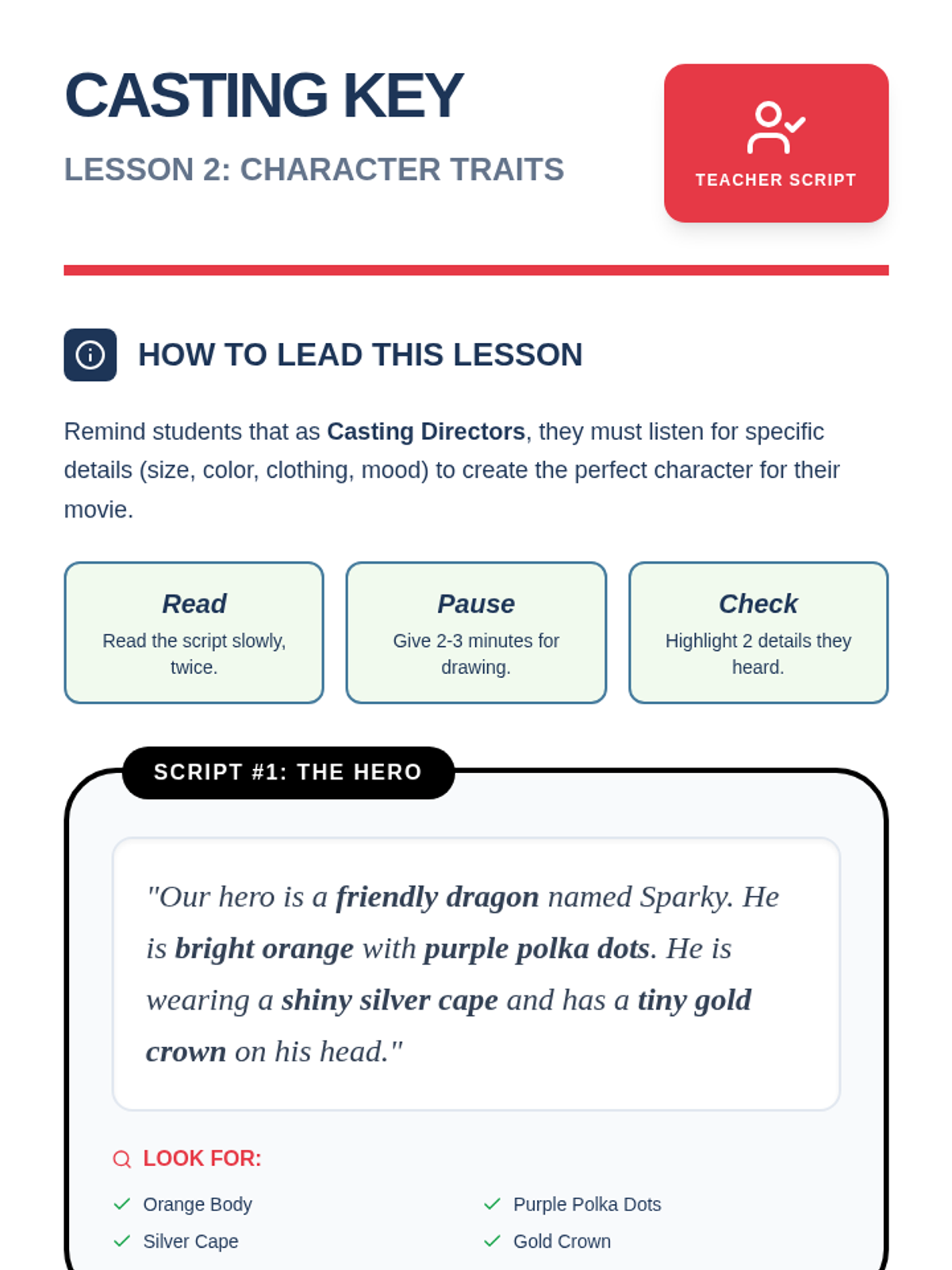 This sequence focuses on character analysis, helping students infer internal traits, motivations, and emotions based on external dialogue and actions. It moves from identifying temporary emotions to predicting long-term behavior based on established character traits.