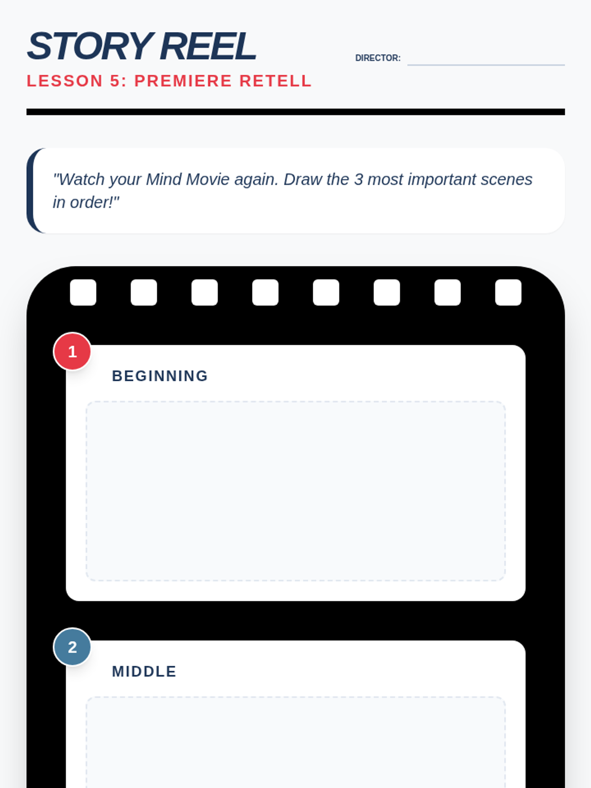 This sequence introduces 1st-grade students to narrative structure using a visual 'Beginning, Middle, End' framework. It uses a 'Story Builders' theme to help students segment storytelling into manageable chunks, moving from identification to oral rehearsal and finally to written production.