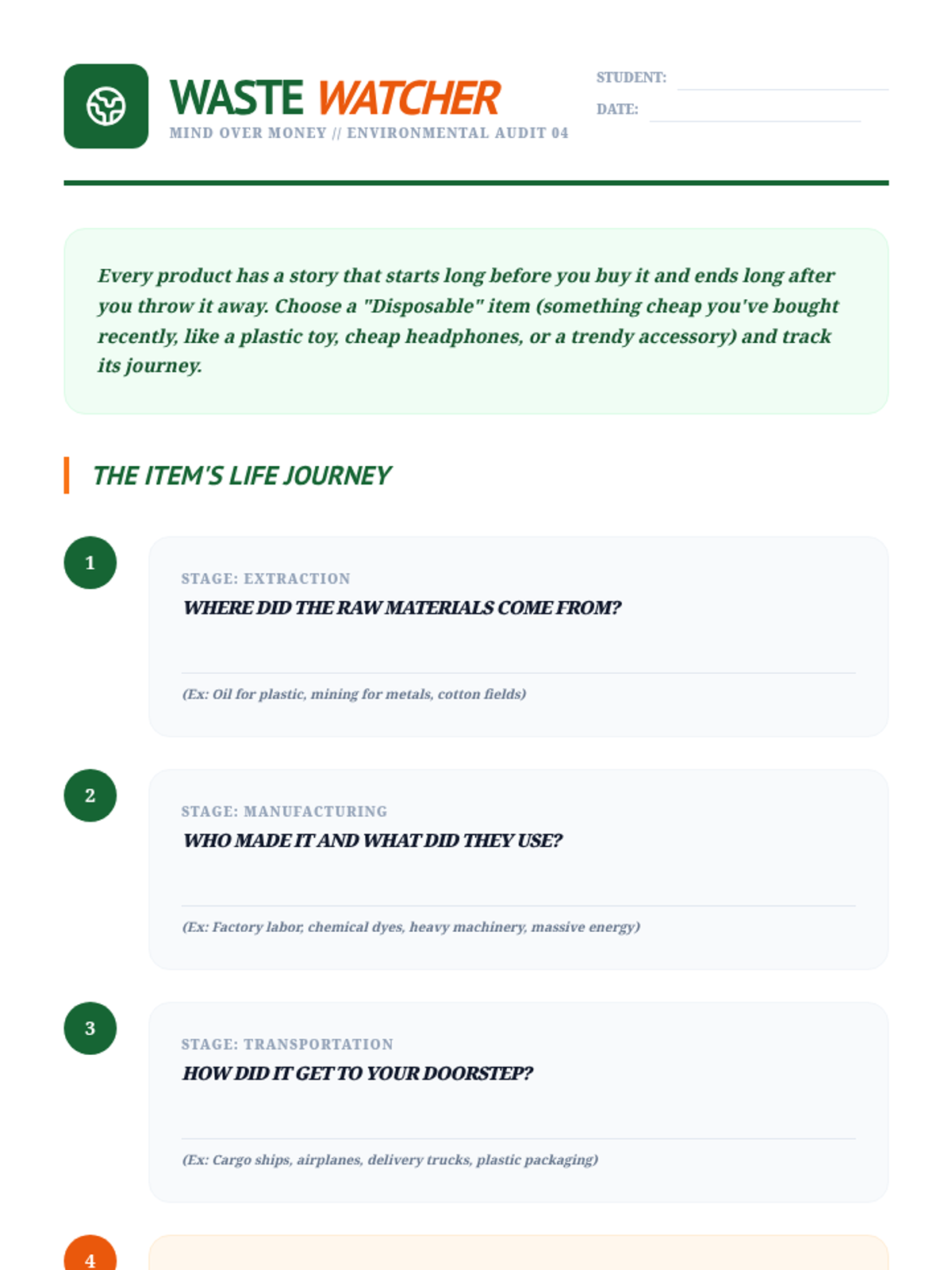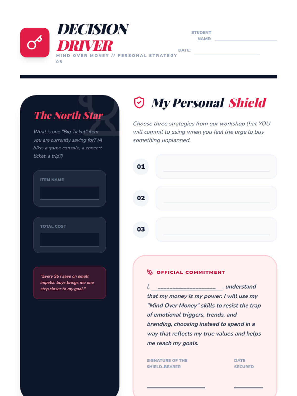 A comprehensive workshop-style sequence exploring the psychology behind consumer habits, focusing on emotional triggers, peer pressure, branding, and environmental impact to help 6th graders develop healthy spending habits.