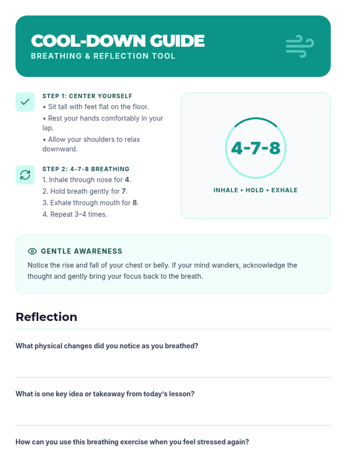A 4-session small group counseling program for high school girls focused on identifying anxiety triggers, practicing mindfulness, and developing a personalized toolkit of coping strategies. The sequence emphasizes peer support, empowerment, and practical application within the school environment.