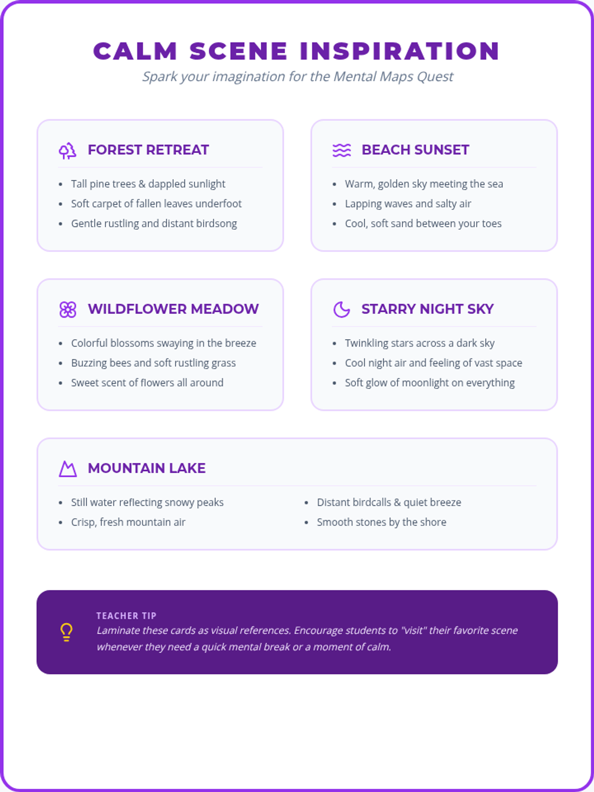 A series of mindfulness lessons for children designed to introduce core concepts like breath awareness, sensory grounding, and emotional regulation through engaging, slide-based activities.