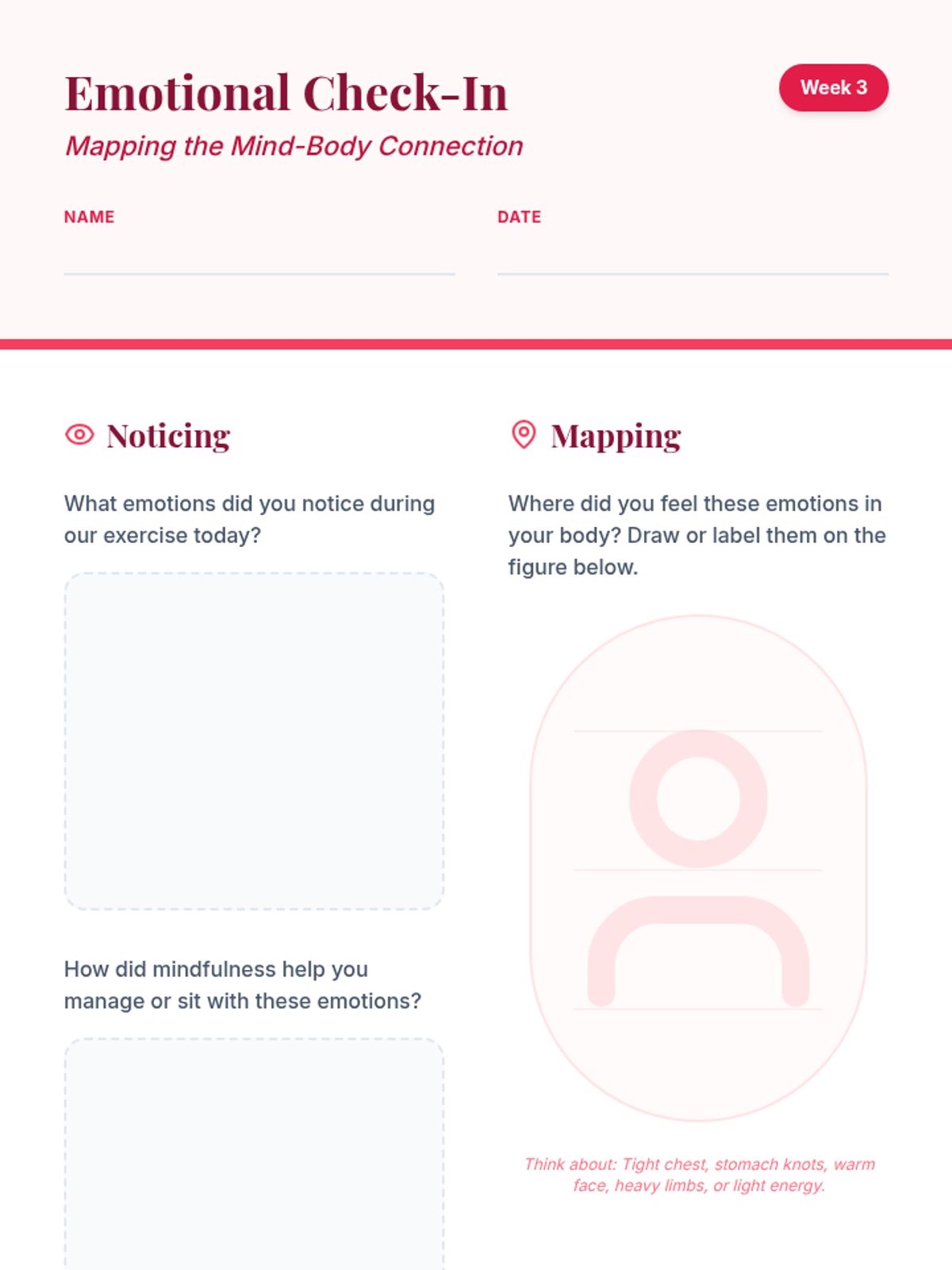 A 5-week mindfulness series for high school students focusing on self-awareness, emotional regulation, and stress management through experiential activities.